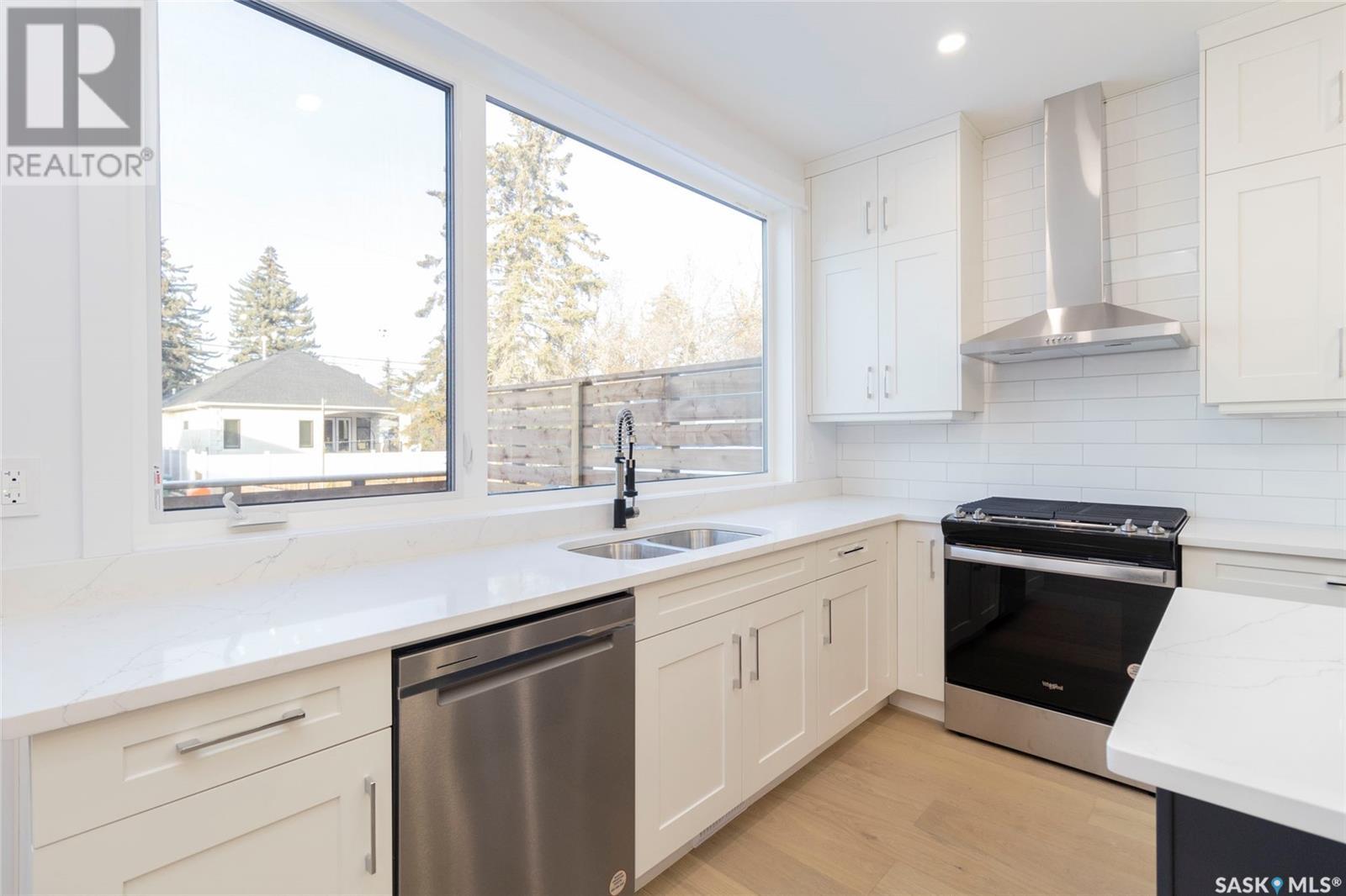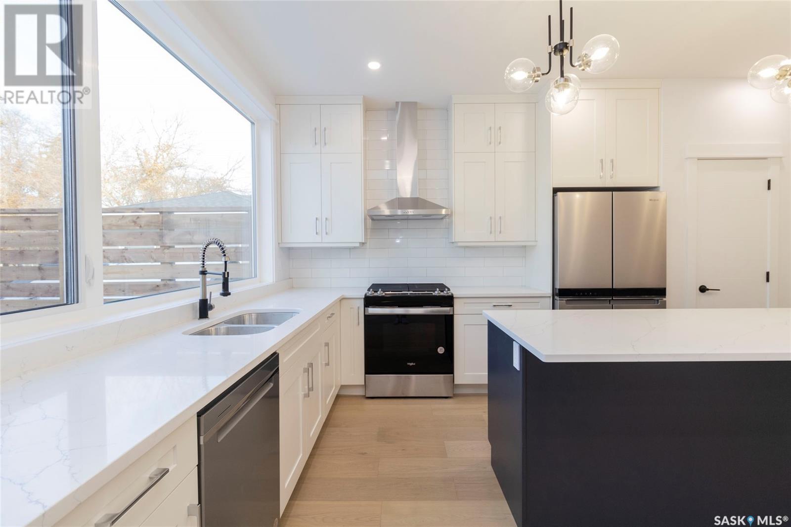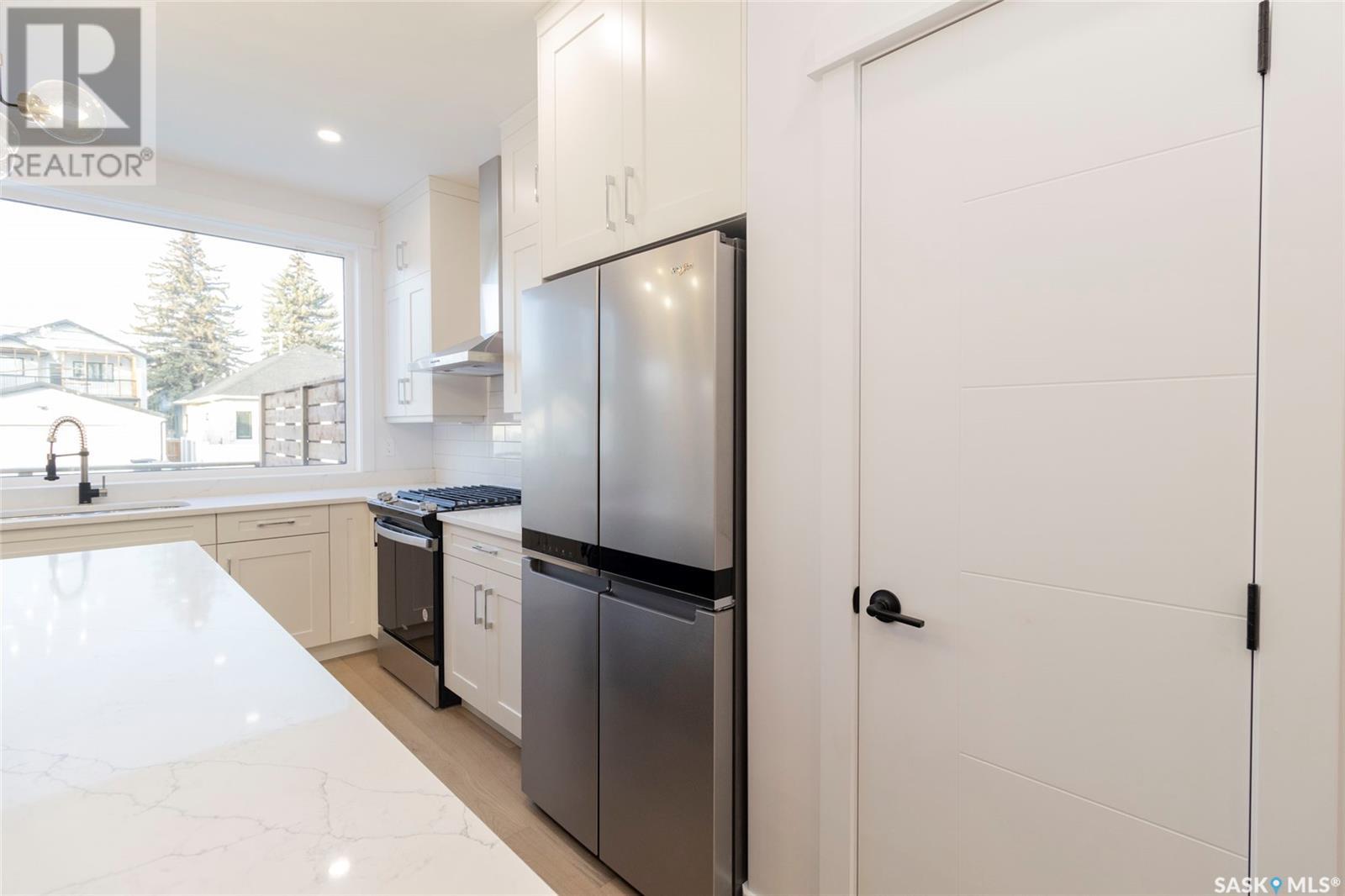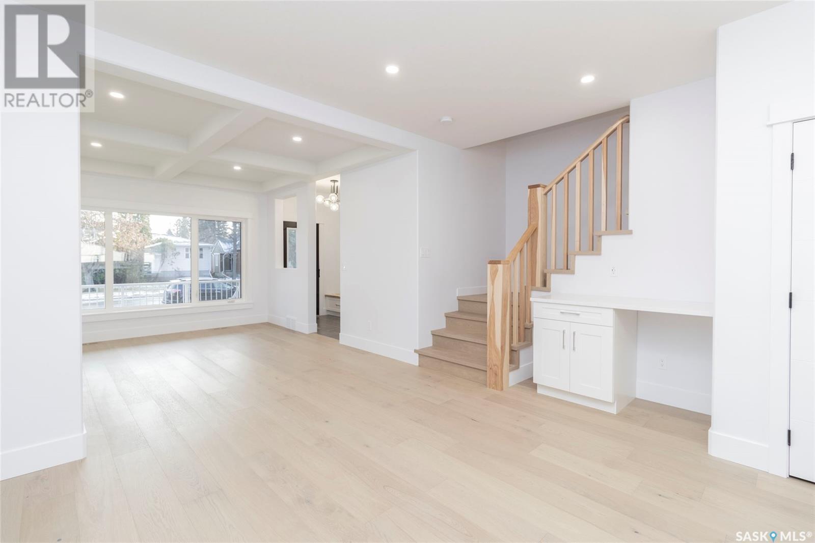 Welcome to 1329 13th St, in one of Saskatoon’s most desirable neighbourhoods Varsity View! With Albert Oulton and Raoul Wallenberg Parks minutes away, school and grocery stores down the street, this location would make the perfect place to call home. This new home is designed to seamlessly integrate into the beautiful established neighbourhood. Generous windows allow plenty of natural light to flow all throughout the home. Main floor features an open concept with two living spaces, 2 piece washroom, and a gorgeous kitchen with gas range. The hardwood flooring continues through the 2nd level with 3 spacious bedrooms. Master bedroom has a large walk-in closet with built in storage and a great 4 piece en-suite with heated floors. 2nd floor laundry room with a generous amount of storage. Other features of this home include: Spacious 9’ main floor & basement ceilings, Classic coffers in living room, Refined white oak engineered hardwood over both levels and stairs, Custom stair posts and handrails, Convenient side entrance with direct entry to basement, Basement roughed in for bathroom and potential suite, exterior walls framed and insulated for greater energy efficiency. Timeless exterior with fibre cement siding. Front landscaping, walkways & parking pad complete. Call your favourite agent today to view this new home! (Note: Some photos were virtually staged so buyers can visualize the space furnished.) (id:22211)
