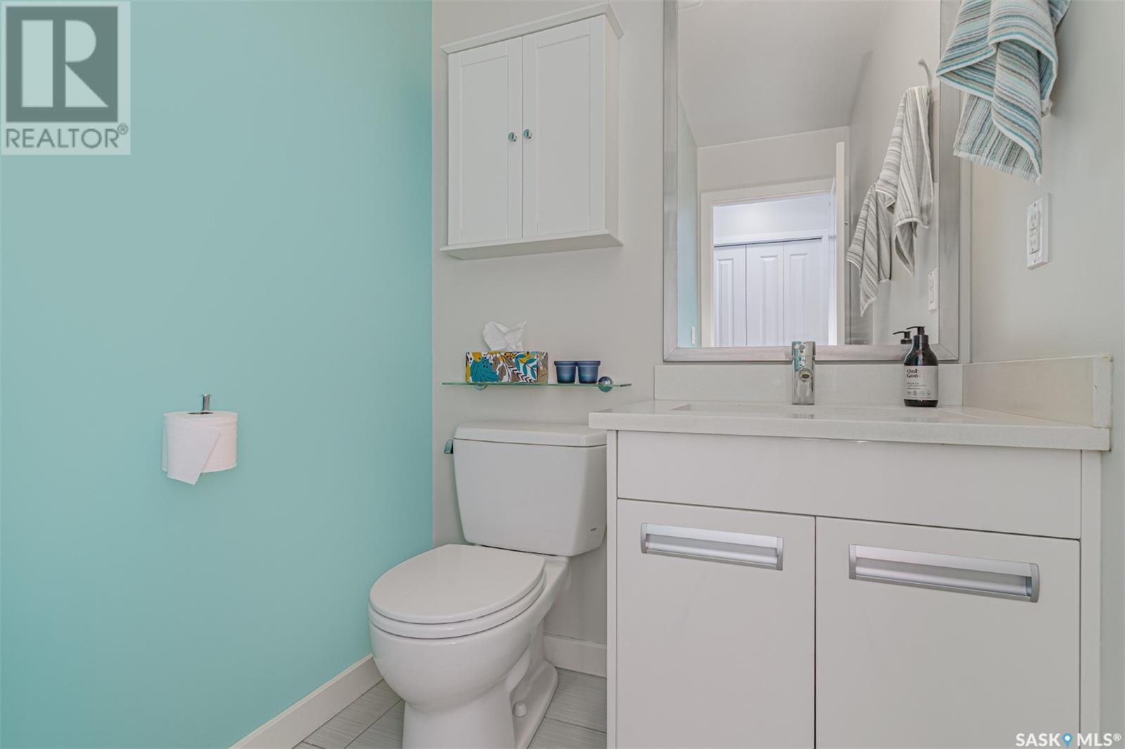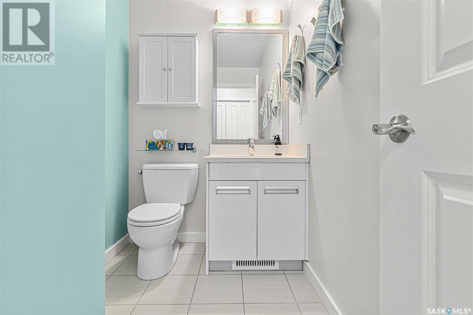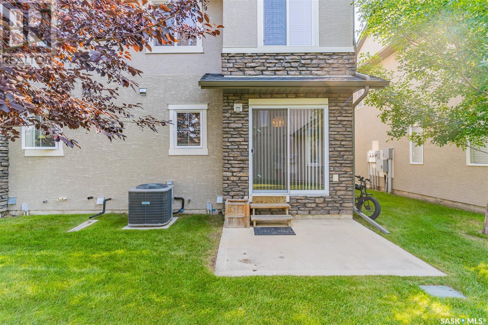 This meticulously maintained, bright three-bedroom, two bath townhouse is close to shopping, parks and schools and is an easy commute to most parts of Saskatoon. It comes with two electrified parking stalls right out front of the main door. The unit has quality finishes throughout including hardwood flooring on the main level, porcelain tile flooring in the bathrooms, and quartz counter tops in kitchen and baths. The kitchen has plenty of storage cabinets and glass doors onto the south facing patio. This well-maintained condo has many improvements including air conditioning (2014), washing machine (2016), over-the-range microwave (2018), toilets (2014), gas water heater (2022) and smoke/CM detectors (2023). Call your Realtor to view today! (id:22211)