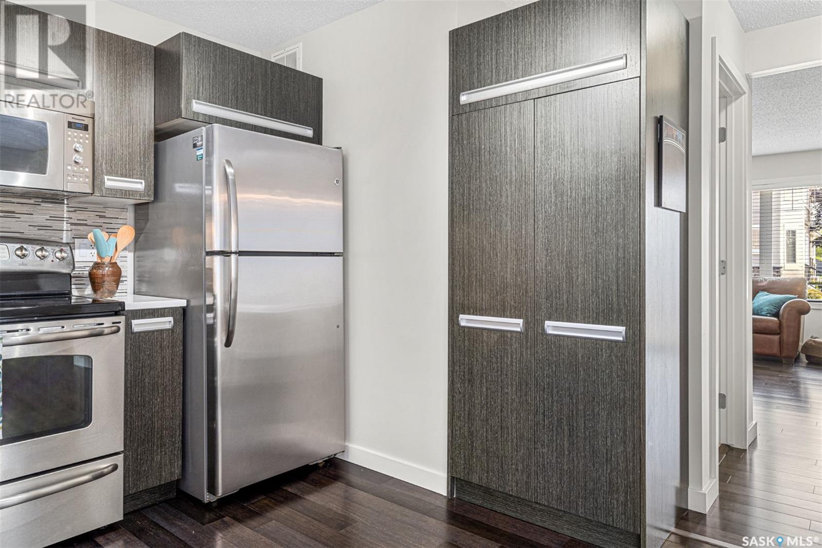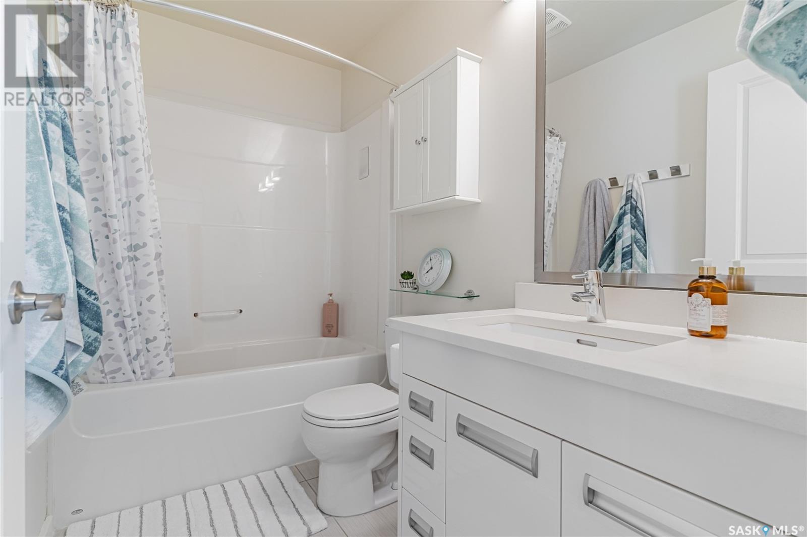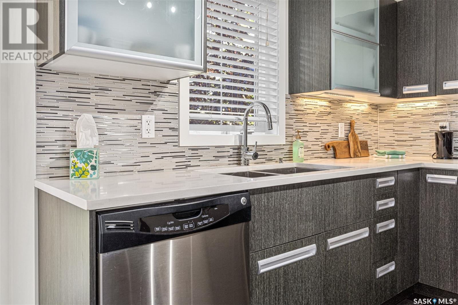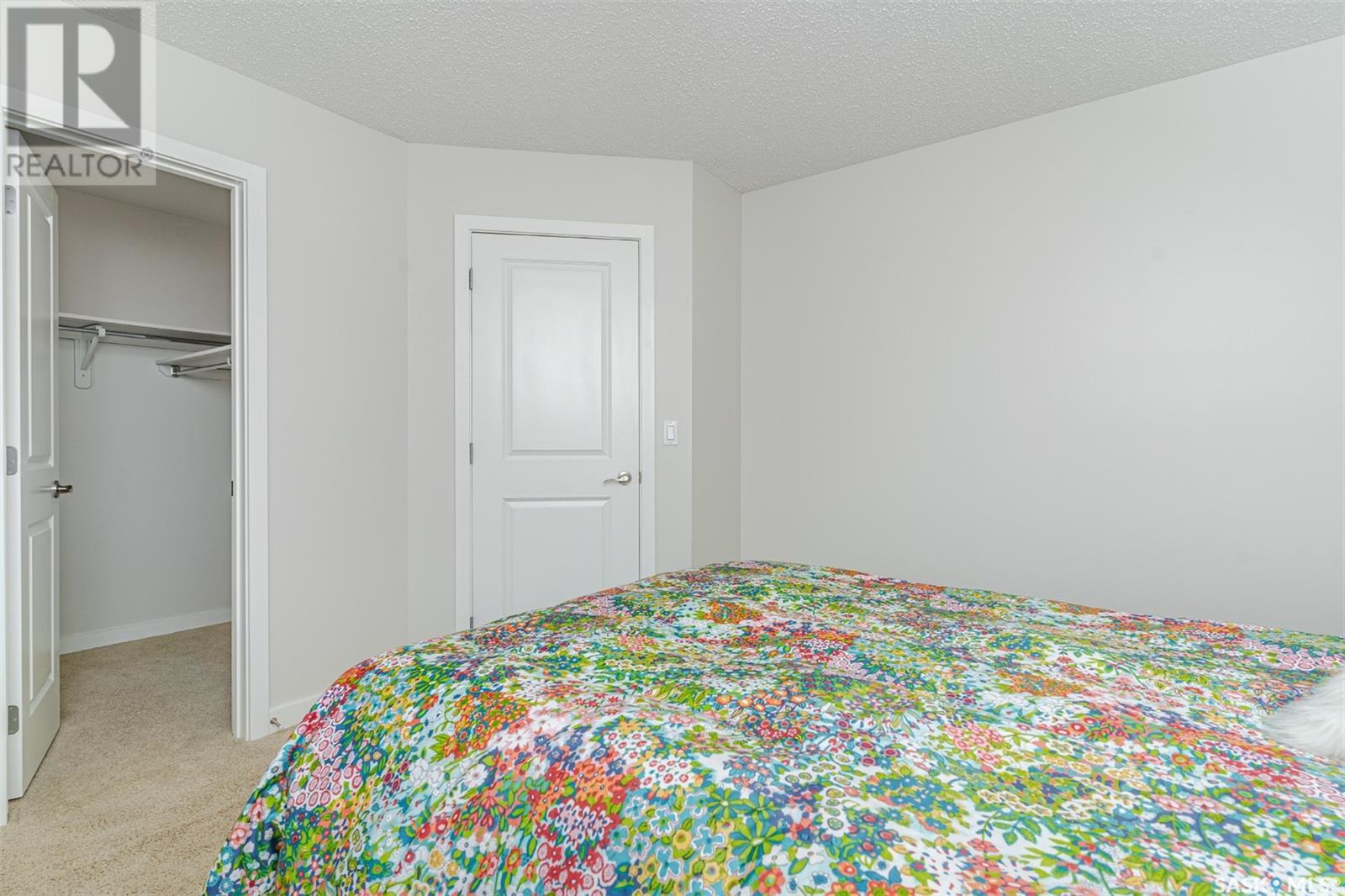 This meticulously maintained, bright three-bedroom, two bath townhouse is close to shopping, parks and schools and is an easy commute to most parts of Saskatoon. It comes with two electrified parking stalls right out front of the main door. The unit has quality finishes throughout including hardwood flooring on the main level, porcelain tile flooring in the bathrooms, and quartz counter tops in kitchen and baths. The kitchen has plenty of storage cabinets and glass doors onto the south facing patio. This well-maintained condo has many improvements including air conditioning (2014), washing machine (2016), over-the-range microwave (2018), toilets (2014), gas water heater (2022) and smoke/CM detectors (2023). Call your Realtor to view today! (id:22211)