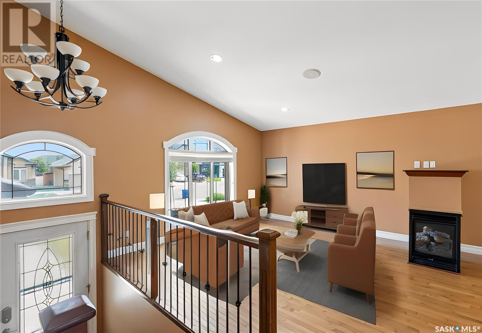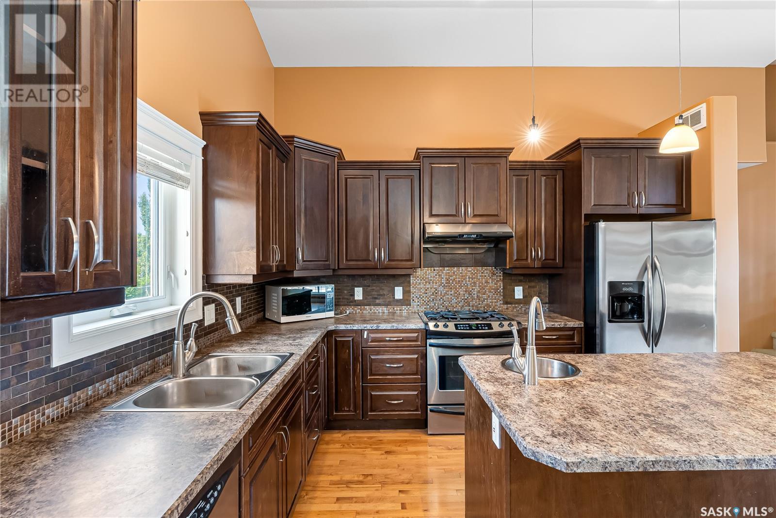Nestled in highly sought-after Willowgrove on the tranquil Botting Bay cul-de-sac, this exceptional home offers a stunning western exposure in natural light. Upon arrival, the impressive brick and stucco exterior sets the tone for the remarkable experience that awaits within. This exquisite modified bi-level spans 1448 sqft., leaving an indelible impression, from the meticulous attention to detail, array of upgrades, to impeccable design elements. The main level welcomes you with a gracious foyer and boasts two well-appointed bedrooms, each thoughtfully designed to offer comfort and style. The heart of the home unfolds as you continue, revealing an open concept layout that seamlessly combines a gourmet kitchen and dining area. The kitchen, adorned with stunning maple cabinets, showcases an island and a convenient prep sink. An expansive pantry, positioned off the hall, ensures functional ease. A garden door beckons you to an expansive deck, complete with an outdoor fireplace—a perfect setting for both relaxation and entertaining Ascending to the upper level, the master bedroom awaits, offering a haven of luxury. The ensuite bathroom is a testament to opulence, featuring a custom walk-in shower, a corner jet tub. The lower level you'll discover an additional bedroom, a third bathroom, and a family room enhanced by the warmth of a fireplace. Adjacent to the family room, a well-appointed wet bar area adds an element of luxury and convenience. Among the numerous features that elevate this home are the heated and fully finished oversized garage, the striking hardwood and tile floors that grace the interior, and a series of recent upgrades that ensure modern convenience. These upgrades include hood fan (2015), fresh painting (2015), updated carpet (2020), water heater (2022), sump pump freeze relief (2020), and smart garage door opener (2023). (id:22211)