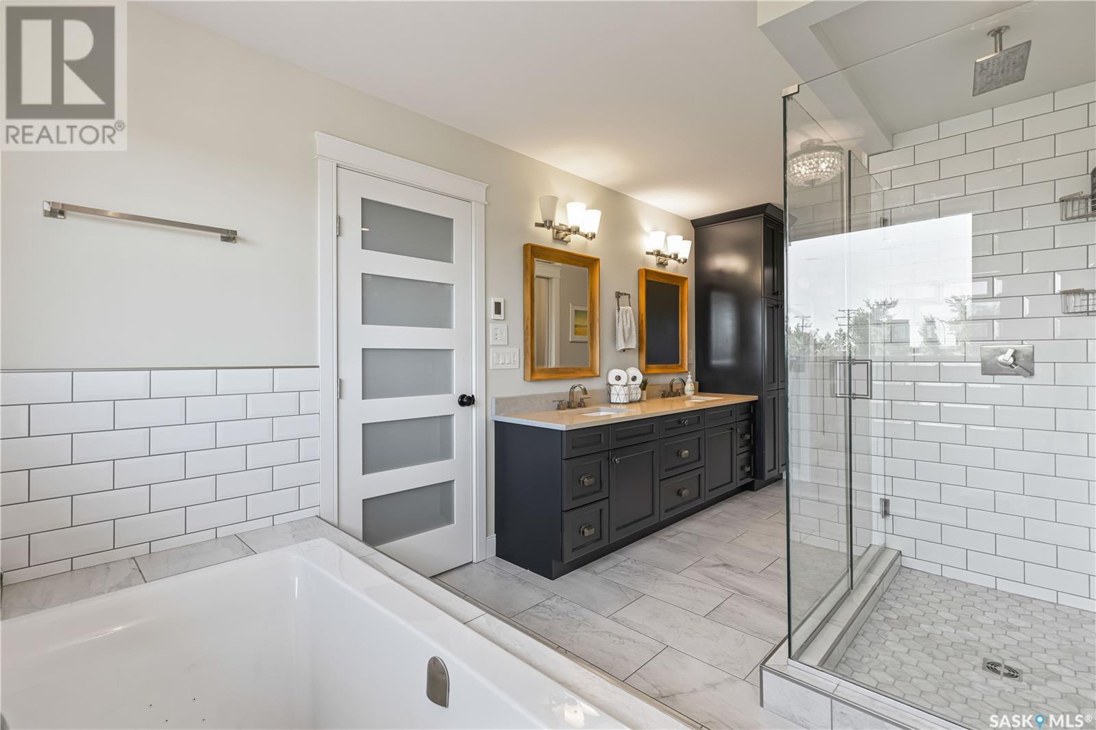 Welcome to this stunning home located in the desirable neighborhood of Evergreen. Boasting the absolute best in outdoor living and entertaining, this fully developed home offers a luxurious and comfortable lifestyle. Situated on a lot backing onto a peaceful walking path, You'll enjoy both privacy and convenience. Spacious kitchen featuring large island large dinning area as well as stainless steel appliances, perfect for culinary enthusiasts. The living room impresses with its hardwood flooring, built in shelving, and a cozy natural gas fireplace, creating an inviting and elegant atmosphere. Upstairs you'll find four bedrooms along with a bonus room, providing ample space for your family's needs. The primary bedroom is a true retreat, featuring hardwood flooring, a massive walk-in closet with built in shelving. The 5 pc ensuite is a spa-like oasis, complete with heated tile floor, an air jet tub with therapeutic lighting, and a separate tiled shower. The lower level of this home is fully developed and offers two additional bedrooms, ideal for guests or a growing family. The attention to detail extends to the backyard, where a substantial amount has been invested in creating a gorgeous outdoor space. Immaculate landscaping and thoughtful design elements make this backyard a true oasis. This property also boasts impressive garage space, including a 4-car attached garage and separate double detached garage/mans cave/games room. The heated garages ensure your vehicles and belongings are protected during colder months. other notable features include a 3-zone heating system from the furnace, a gas stove vented to the exterior for safety and convenience, and spray foam insulation in the basement for energy efficiency. Don't miss out on the opportunity to view this exceptional home. (id:22211)