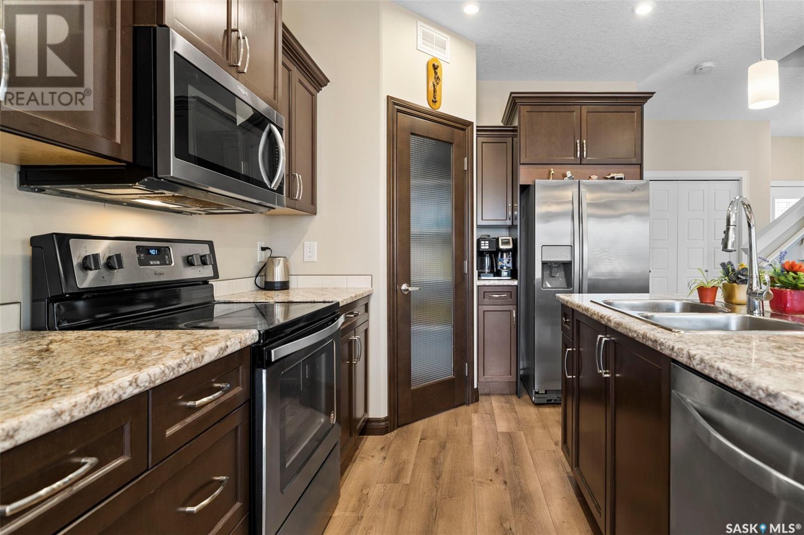 Welcome to your new home! This bright and spacious property features an open layout, attractive wide plank laminate flooring in the kitchen, living and dining rooms, and high-quality shelving in the closets and pantry. With upgraded trim throughout and large windows overlooking the yard, this home offers a stylish and comfortable living experience. On the second level, you'll find three bedrooms, a four-piece bath, and convenient laundry facilities. The good-sized primary bedroom overlooks the rear of the property and features a lovely three-piece ensuite and walk-in closet. This home also includes stainless steel appliances, a heat recovery ventilation system, a humidifier, and more. Enjoy the convenience of a double attached garage with an 8' high garage door, concrete driveway, and a paved rear lane for increased privacy and access to the backyard. The basement has been professionally developed and features a bedroom, family room, 4pc bathroom, storage, and home office, providing ample space for your family's needs. The backyard features a deck off of the dining room, perfect for enjoying summer evenings, and is fully fenced and landscaped in the front. Don't miss out on the opportunity to make this fantastic property your own! Contact your real estate agent to arrange a viewing today. (id:22211)