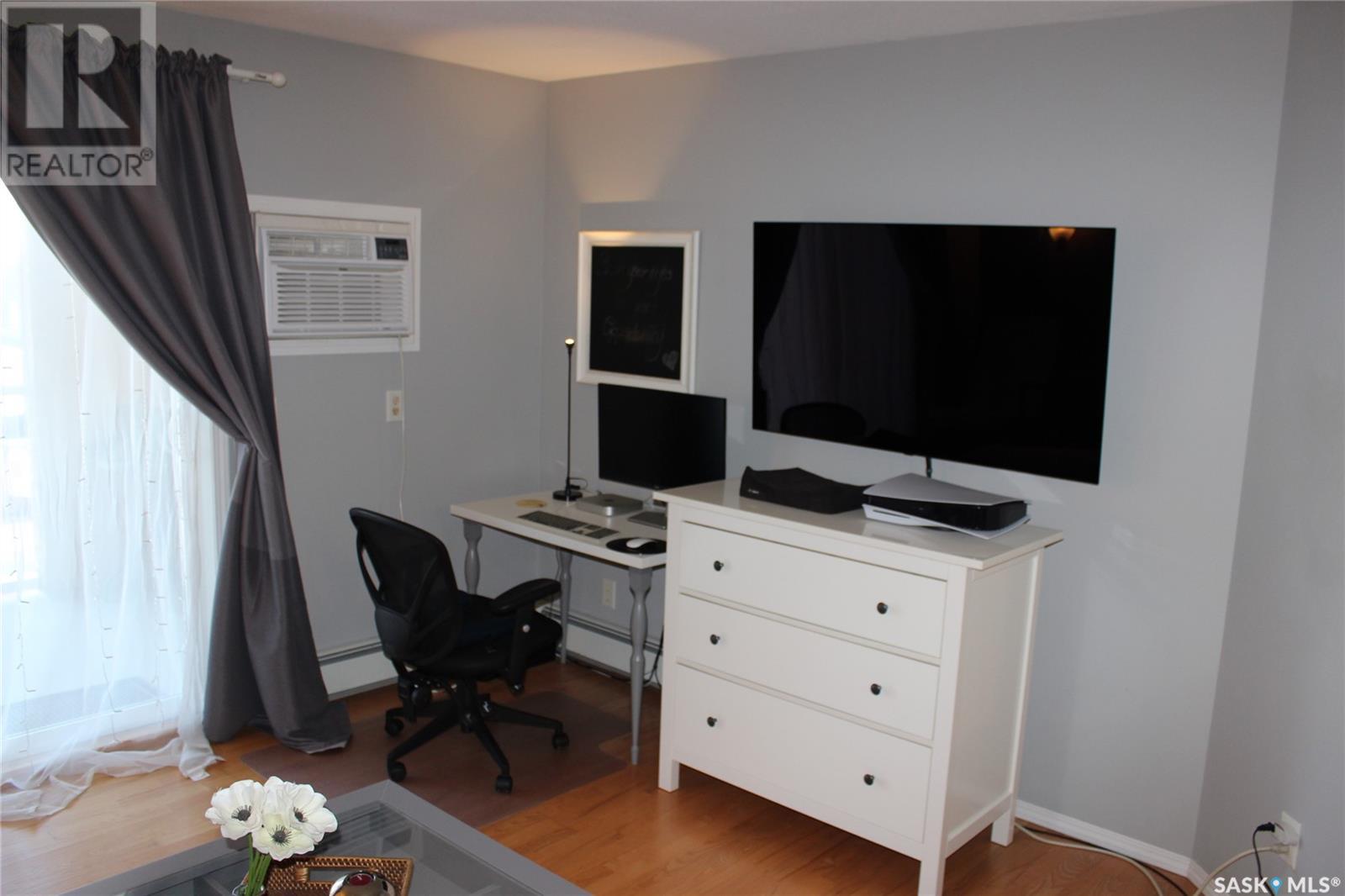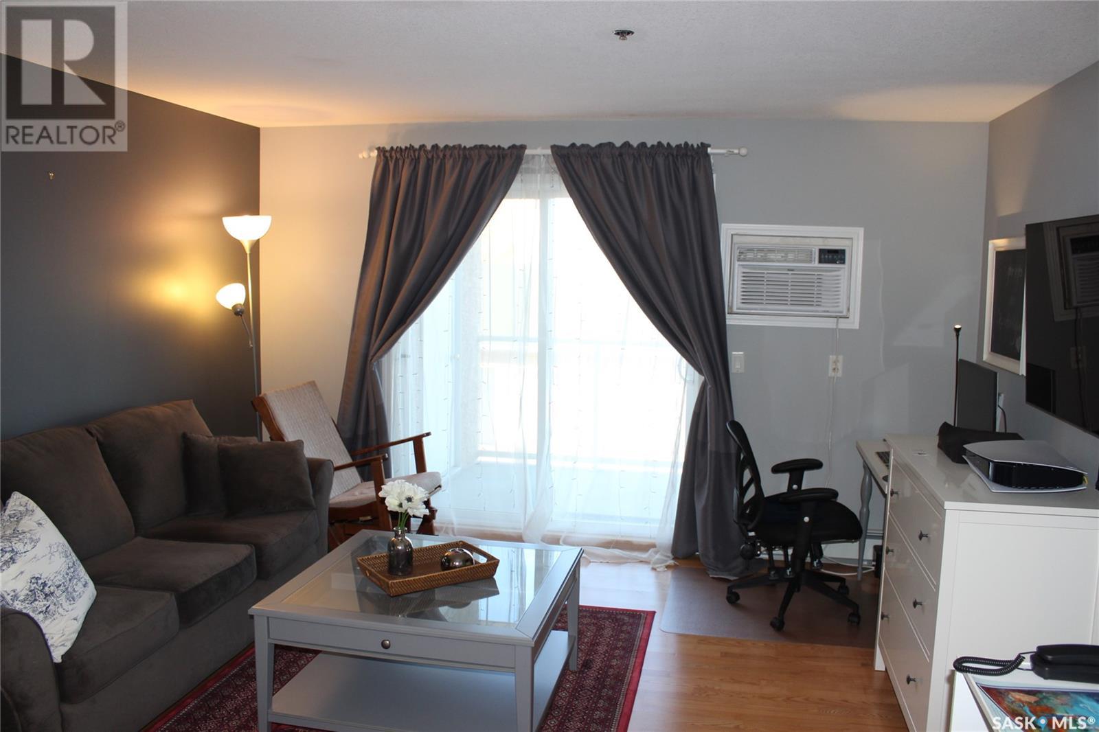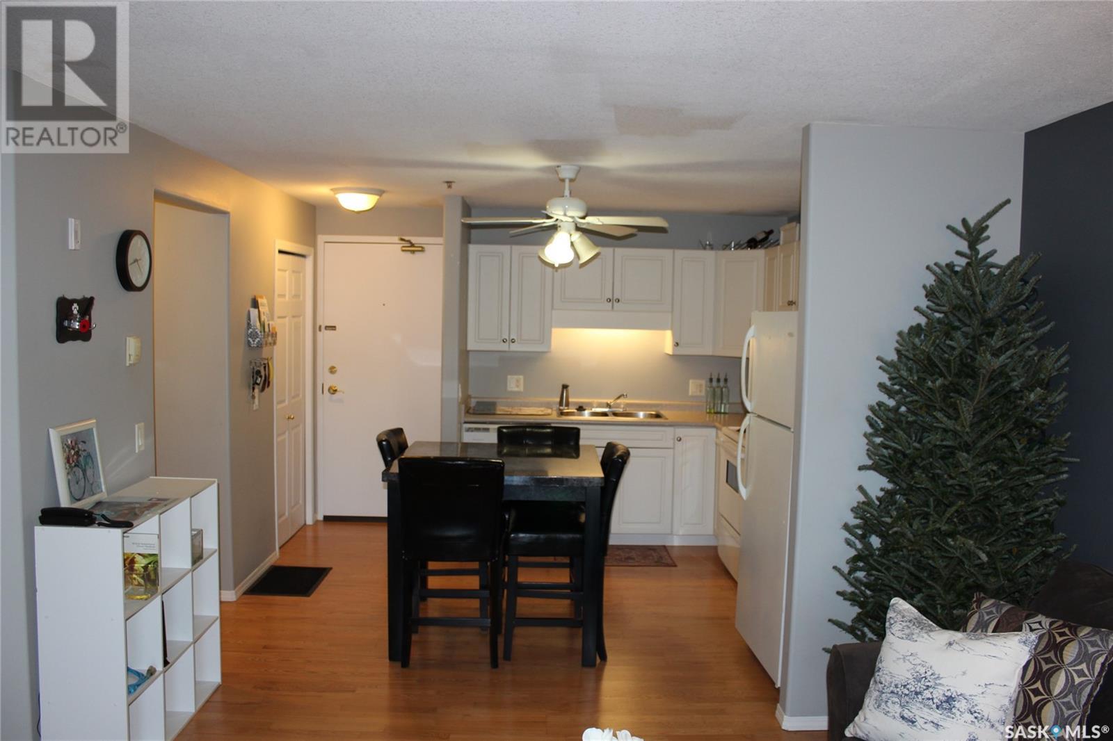 Fantastic opportunity awaits in University Heights with this charming 1-bedroom, 1-bathroom condo on the 2nd floor. Embrace the spacious feel of the open floor plan, complemented by stylish laminate flooring and the comfort of air conditioning. Step out onto the covered balcony, complete with additional storage, offering a perfect retreat. Included with this unit is one electrified parking stall, ensuring convenience in your daily routine. The building boasts an amenities room, providing an excellent space for residents to connect and socialize. Noteworthy is the added benefit of an RBC Assumable Mortgage at an attractive 2.19% rate, in effect until May 2026. Enjoy the advantages of a great location, with proximity to parks, shopping, and a range of amenities. Whether you're a first-time buyer or an astute investor, this property holds immense potential. Seize the opportunity – call today to arrange your personal viewing and envision the lifestyle this condo can offer! (id:22211)
