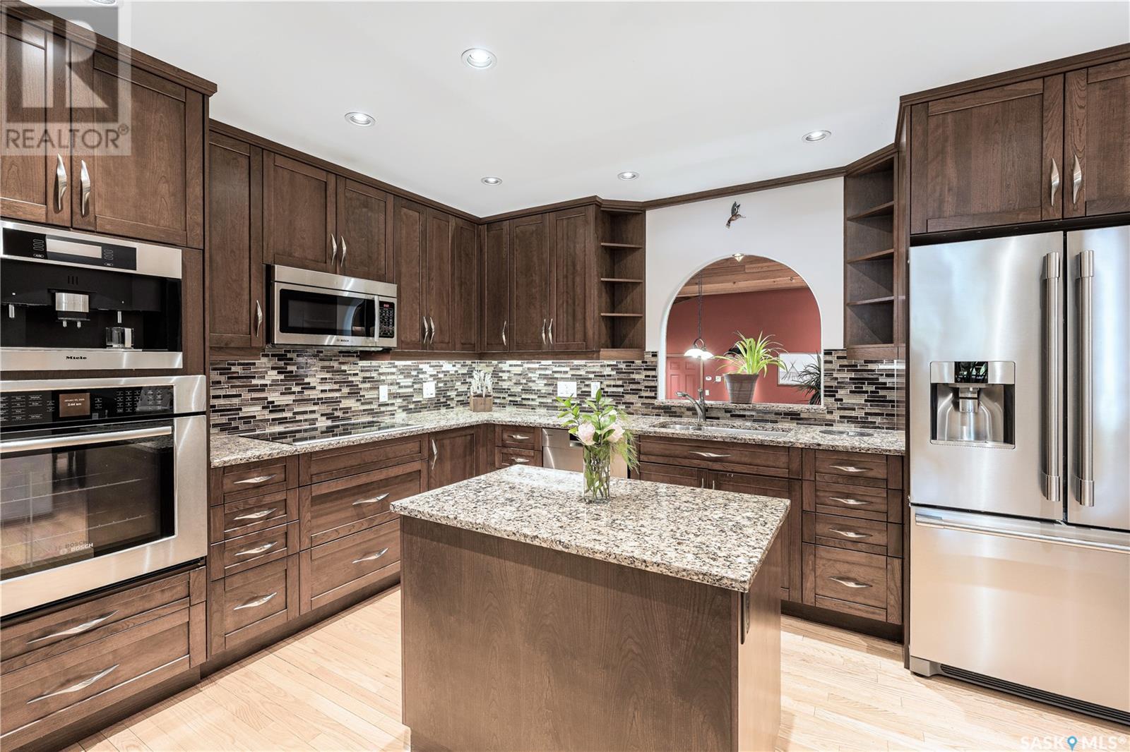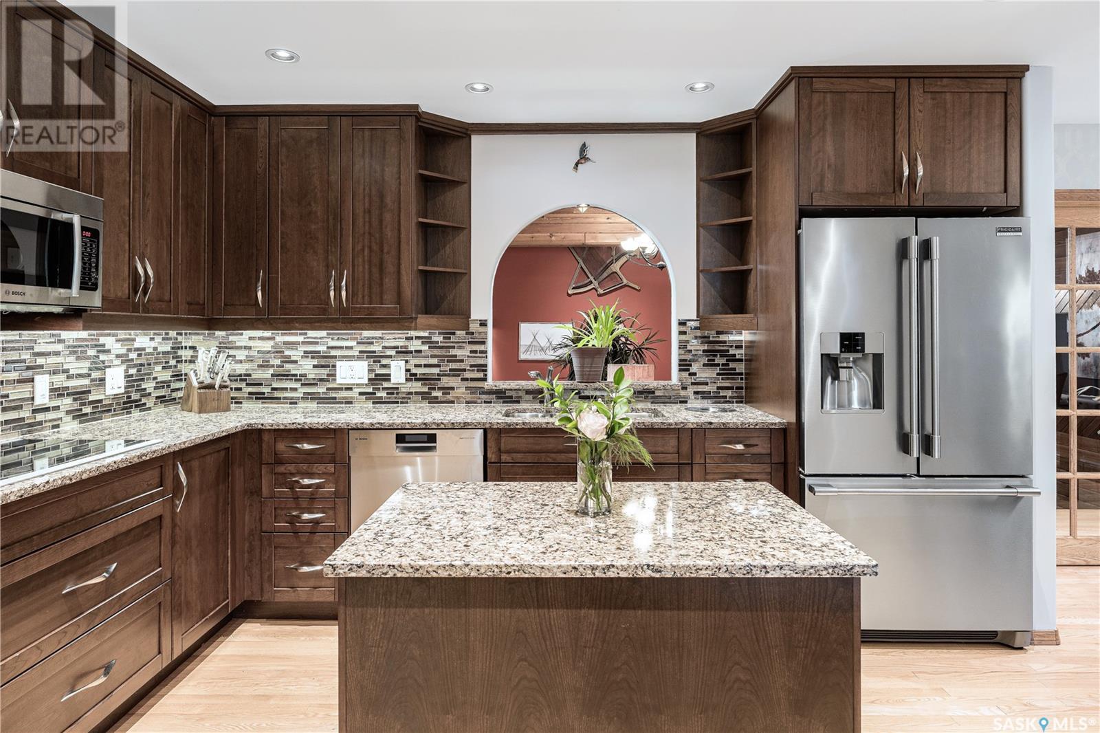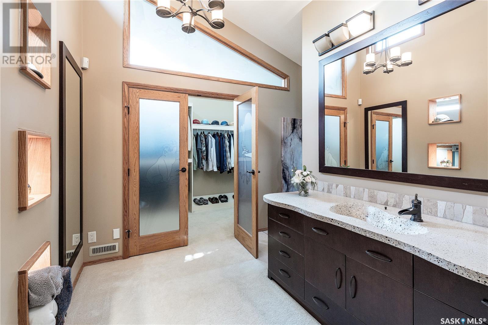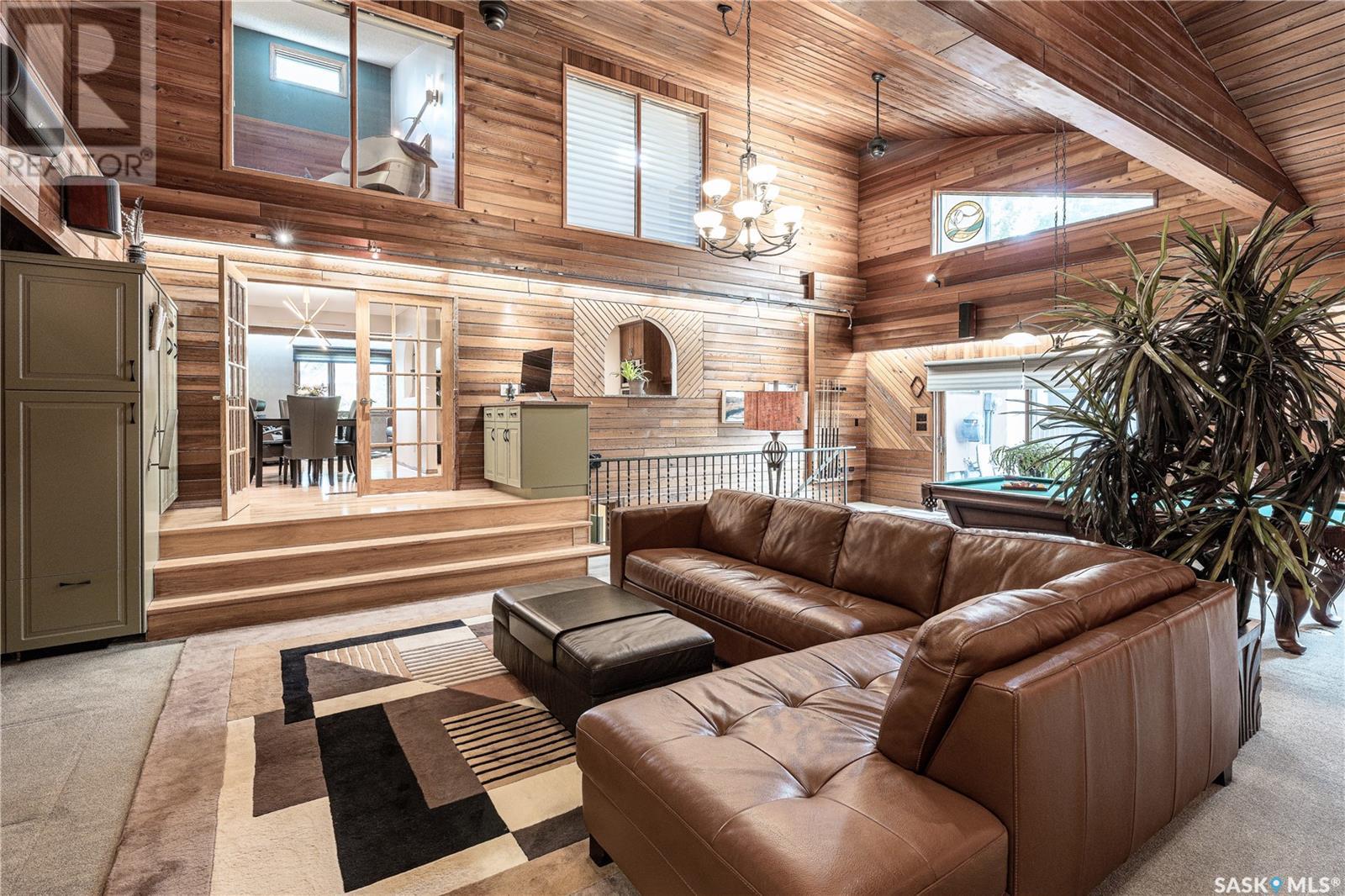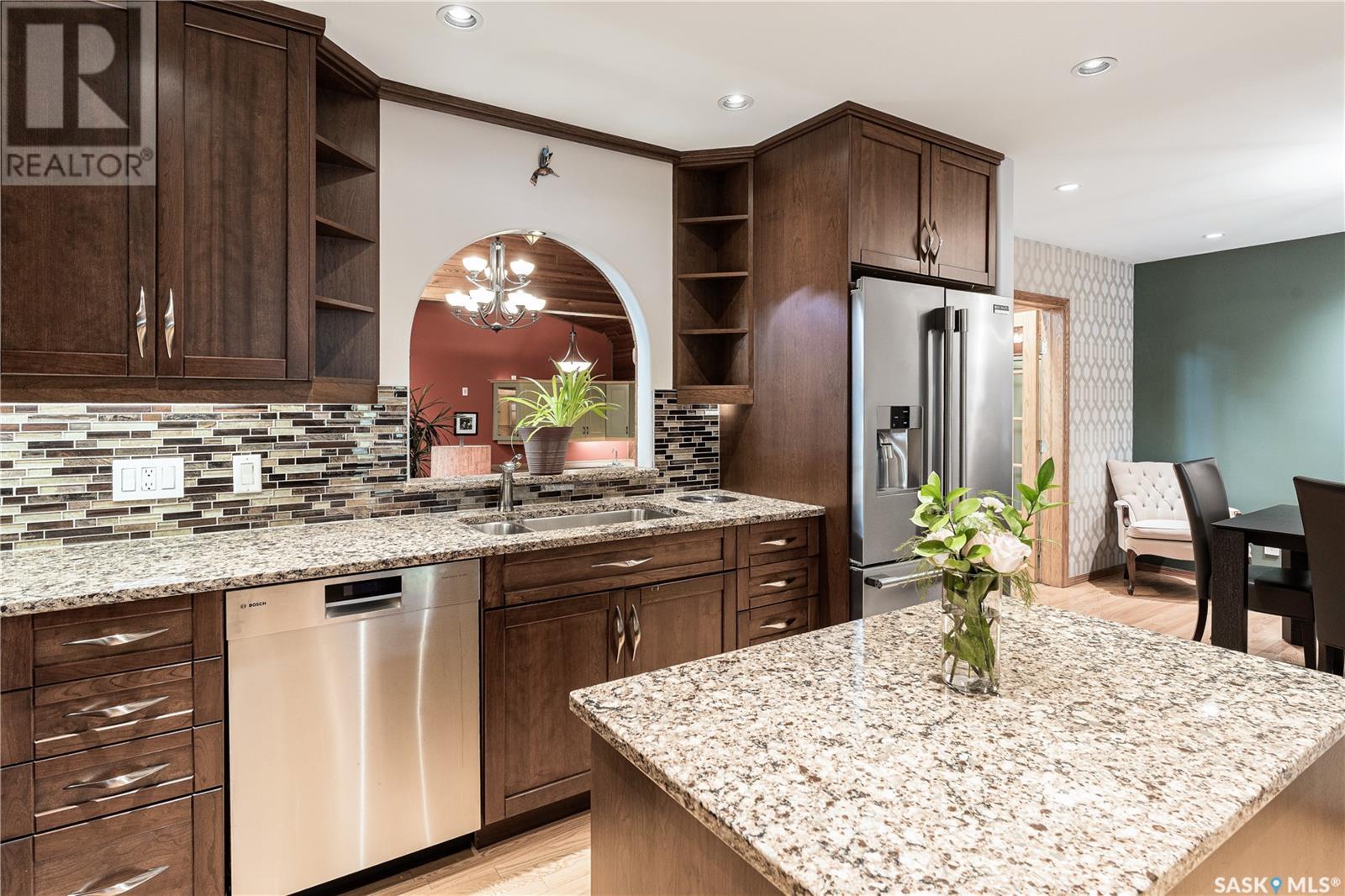 This is one of the finest homes in Eastview. It has been meticulously maintained and upgraded with more space than one could imagine. The home was built in 1967 with the effective age being 1977 as per the City of Saskatoon. It is a custom built 2679 sq. ft. 2 storey outfitted with a high efficient furnace, power vented water heater, central air new in 2023, air exchanger, 200 amp service plus 70 amp subpanel for the heated triple garage, hardwoods, in-floor heat, steel roller security shutters on the back windows and patio doors, 2 Murphy beds. The dream kitchen has all the “I wants” from the high end Miele and Bosch built-in stainless steel appliances including a built-in Miele coffee maker, custom cherry wood cabinets with pull-outs, and granite countertops. There is a library on the 2nd level plus the master bedroom boasting a stackstone feature wall and a 3 piece en suite with custom concrete counter & sink and a steam shower. The walk-in closet is huge and has an extra storage room. Another unique and impressive feature of this home is the 22’ x 29’ main floor games room with 20’ ceiling, wet bar and surround sound system. Huge WOW factor! There is direct entry off the games room to the garage. The basement features a family room with stair access to the games room and a dedicated music area equipped with acoustic panels. There is also a home office, 3 piece bath and large utility/laundry room with sink. If all this isn’t enough here are some extra features: 2 fireplaces, upgraded light fixtures with pot and track lights throughout, emergency lighting, Hunter Douglas blinds, central vac, WIFI controlled underground sprinklers, and a security system with 6 HD cameras. Prepare to be impressed. (id:22211)