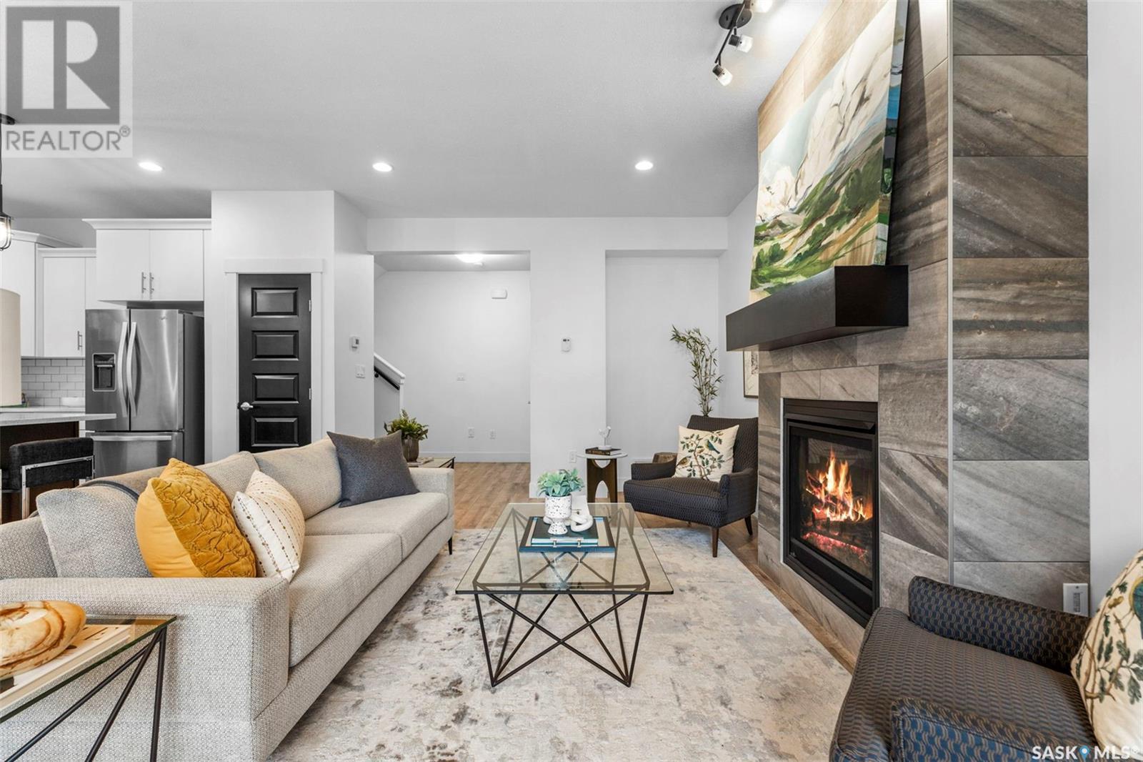 Modern elegance in Montgomery Place, a contemporary townhome community nestled in the heart of Montgomery. Spanning a 1645 sq ft, this residence has lofty 9' ceilings, 3 bedrooms, 3 bathrooms, and a dedicated 2nd-floor laundry. The main living area, designed for the modern lifestyle, showcases a chic gas fireplace, open concept kitchen and highlighted with gleaming quartz countertops, all seamlessly leading to a stylish covered deck. Back yard is landscaped, fully fenced and pet friendly. The primary bedroom features a walk-in closet and an opulent ensuite featuring dual vanities, premium quartz surfaces, a serene soaking tub, and a separate shower framed in tile and glass. The basement already has a large family room space for you to enjoy. Final touches include blinds, appliances, central air concrete driveway, and a spacious integrated double garage. (id:22211)