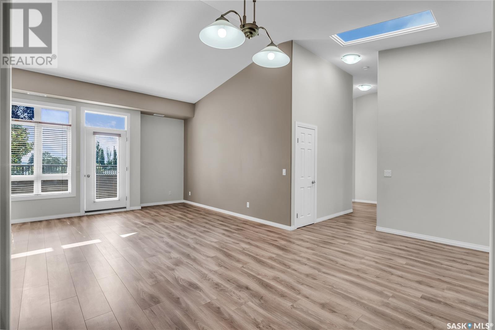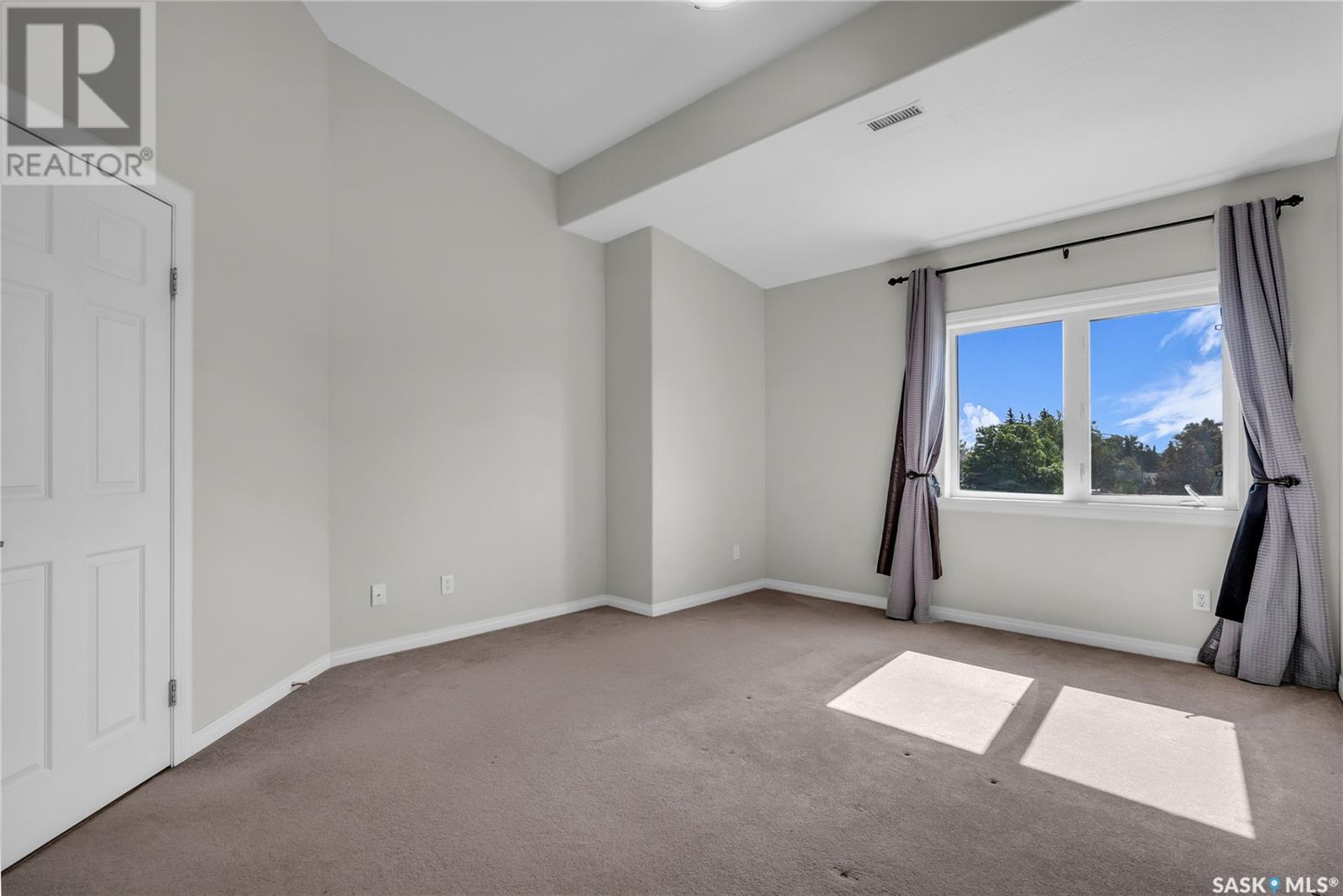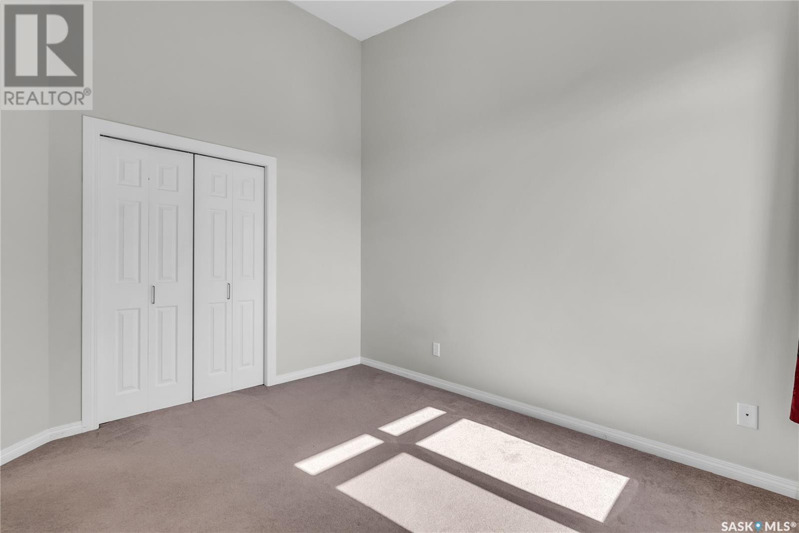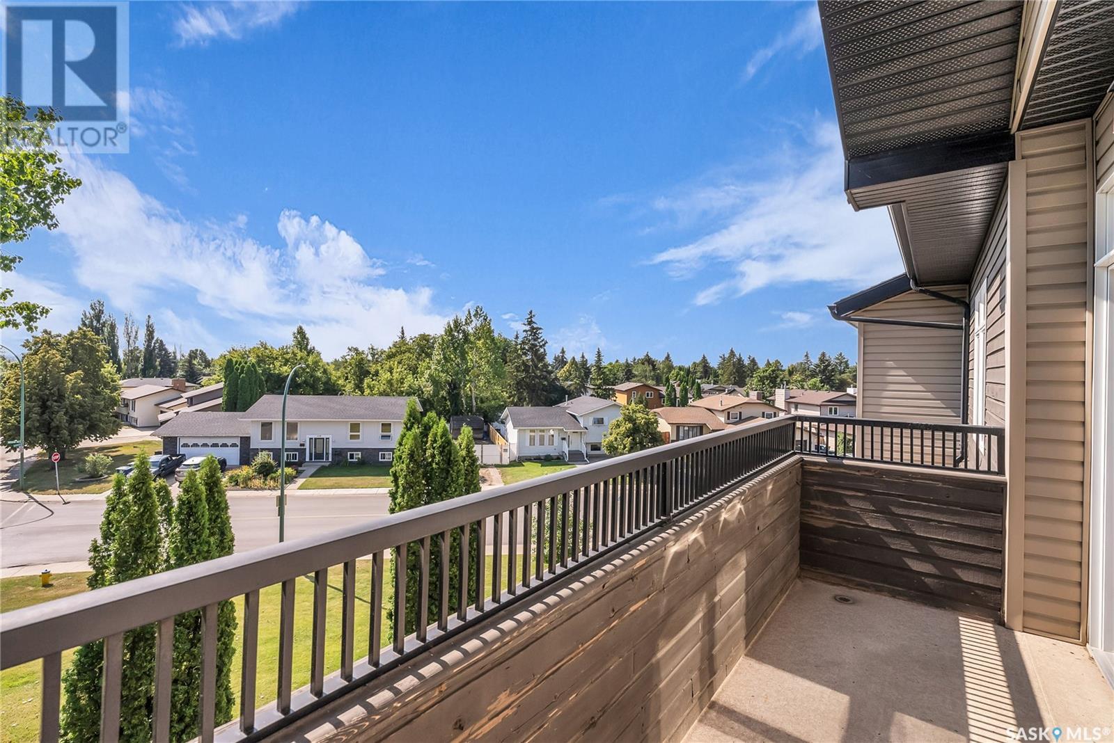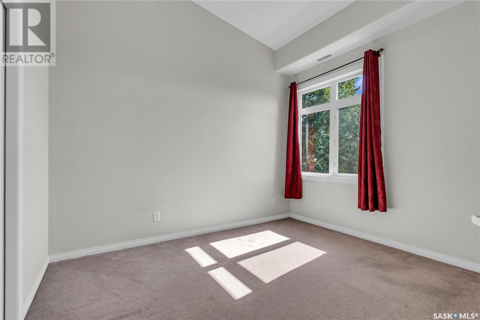 Welcome to this inviting top-floor condo nestled in the desirable Silverwood area of Saskatoon. This spacious 2-bedroom, 2-bathroom unit boasts a perfect blend of modern comfort and convenience, offering a delightful living experience in a tranquil setting. As you enter, you'll immediately notice the high vaulted ceilings that create a sense of openness and light throughout the unit. The recently upgraded paint and flooring add a fresh, contemporary feel to the space, perfectly complementing the sleek granite countertops in the kitchen. The well-designed layout features a luxurious primary suite with a walk-through closet leading to a 4-piece ensuite bathroom. An additional 4-piece bathroom ensures ample space and privacy for guests or family members. The kitchen and living areas are equipped with appliances in excellent condition, making this home ready for you to move in and enjoy. Step out onto your private balcony, where you can bask in the sunshine and savour the peaceful views. This unit is situated in a quiet building, providing a serene retreat from the hustle and bustle of everyday life. Located just two blocks from the picturesque South Saskatchewan River, you’ll have immediate access to beautiful walking and biking paths. The proximity to Silverwood Golf Course and several top-rated schools—including two elementary schools and a high school—adds to the convenience of this location. University and Sask Polytechnic students will appreciate the accessible bus routes. For everyday needs, a convenience store is right across the street, and the Lawson Heights Shopping area is less than a 5-minute drive away, offering a variety of shopping and dining options. Don’t miss the opportunity to make this charming condo your new home. Experience the blend of modern elegance and unbeatable location in Silverwood—schedule your viewing today! (id:22211)