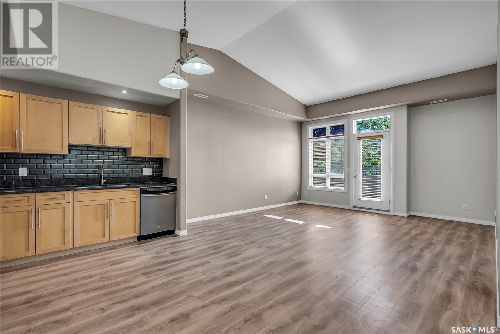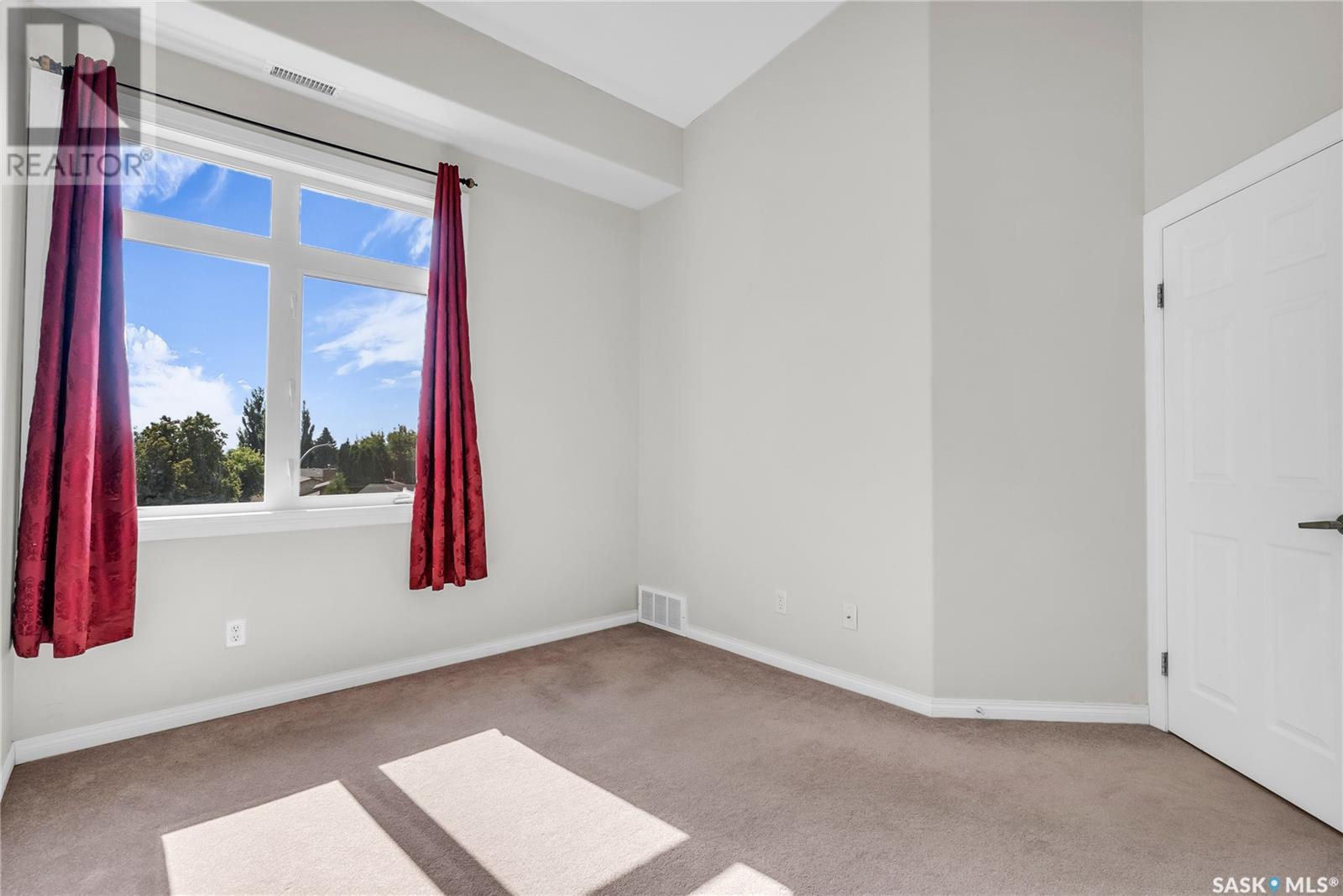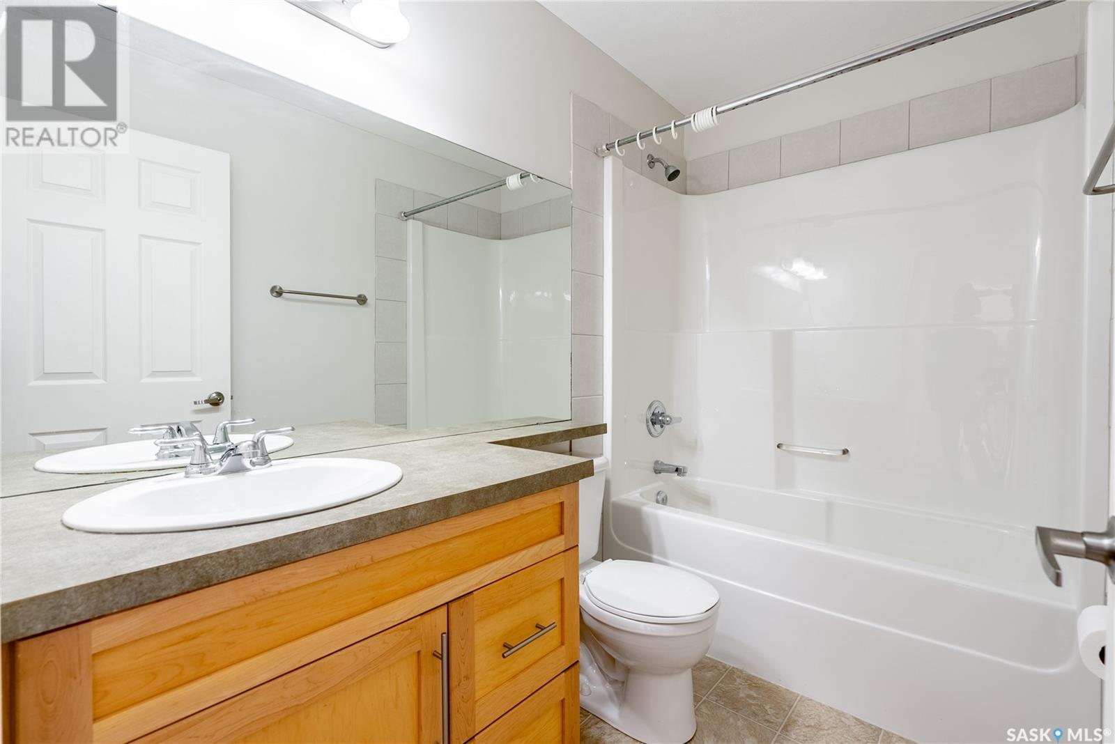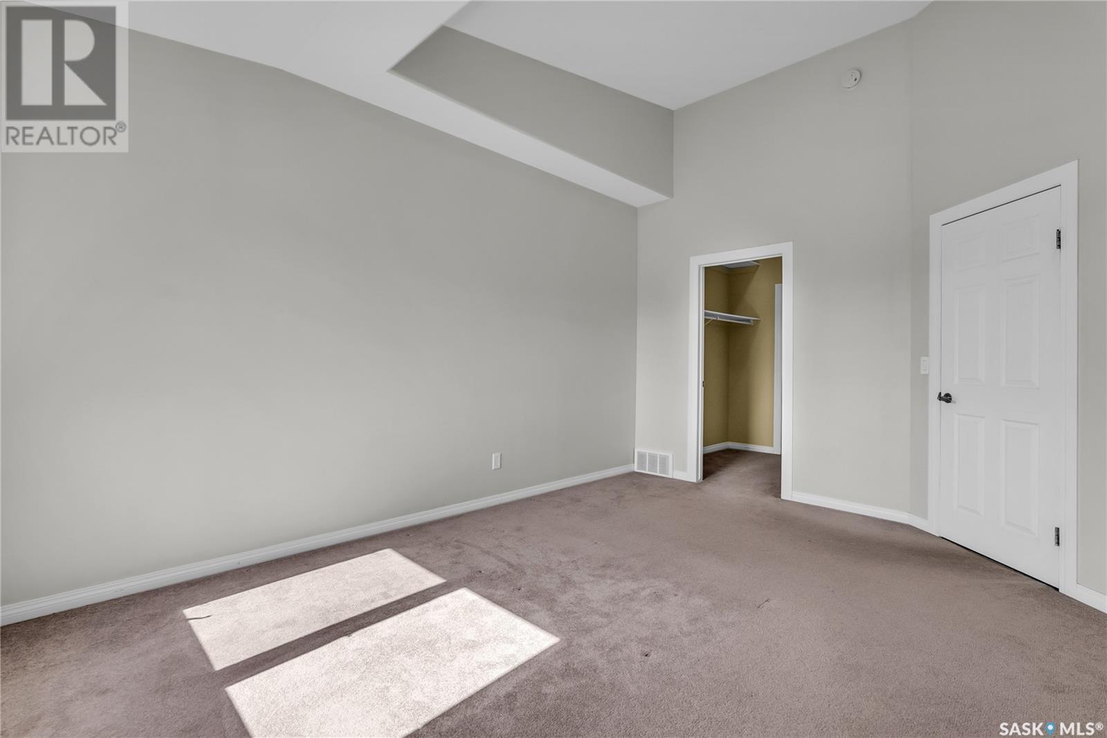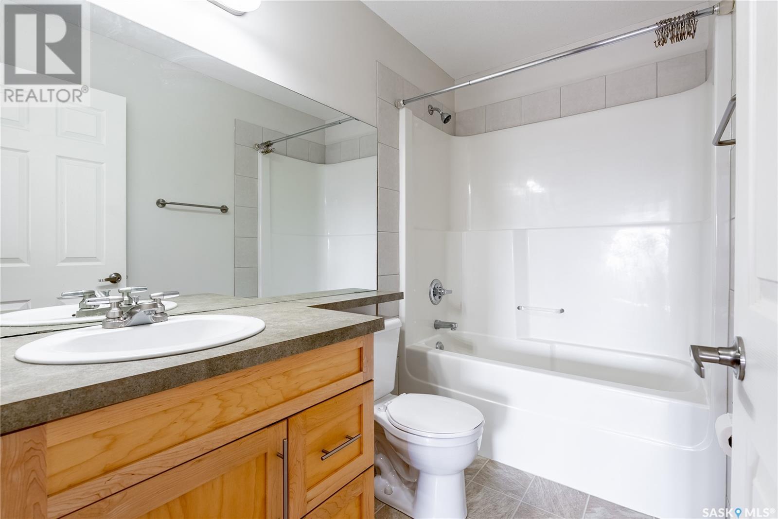 Welcome to this inviting top-floor condo nestled in the desirable Silverwood area of Saskatoon. This spacious 2-bedroom, 2-bathroom unit boasts a perfect blend of modern comfort and convenience, offering a delightful living experience in a tranquil setting. As you enter, you'll immediately notice the high vaulted ceilings that create a sense of openness and light throughout the unit. The recently upgraded paint and flooring add a fresh, contemporary feel to the space, perfectly complementing the sleek granite countertops in the kitchen. The well-designed layout features a luxurious primary suite with a walk-through closet leading to a 4-piece ensuite bathroom. An additional 4-piece bathroom ensures ample space and privacy for guests or family members. The kitchen and living areas are equipped with appliances in excellent condition, making this home ready for you to move in and enjoy. Step out onto your private balcony, where you can bask in the sunshine and savour the peaceful views. This unit is situated in a quiet building, providing a serene retreat from the hustle and bustle of everyday life. Located just two blocks from the picturesque South Saskatchewan River, you’ll have immediate access to beautiful walking and biking paths. The proximity to Silverwood Golf Course and several top-rated schools—including two elementary schools and a high school—adds to the convenience of this location. University and Sask Polytechnic students will appreciate the accessible bus routes. For everyday needs, a convenience store is right across the street, and the Lawson Heights Shopping area is less than a 5-minute drive away, offering a variety of shopping and dining options. Don’t miss the opportunity to make this charming condo your new home. Experience the blend of modern elegance and unbeatable location in Silverwood—schedule your viewing today! (id:22211)
