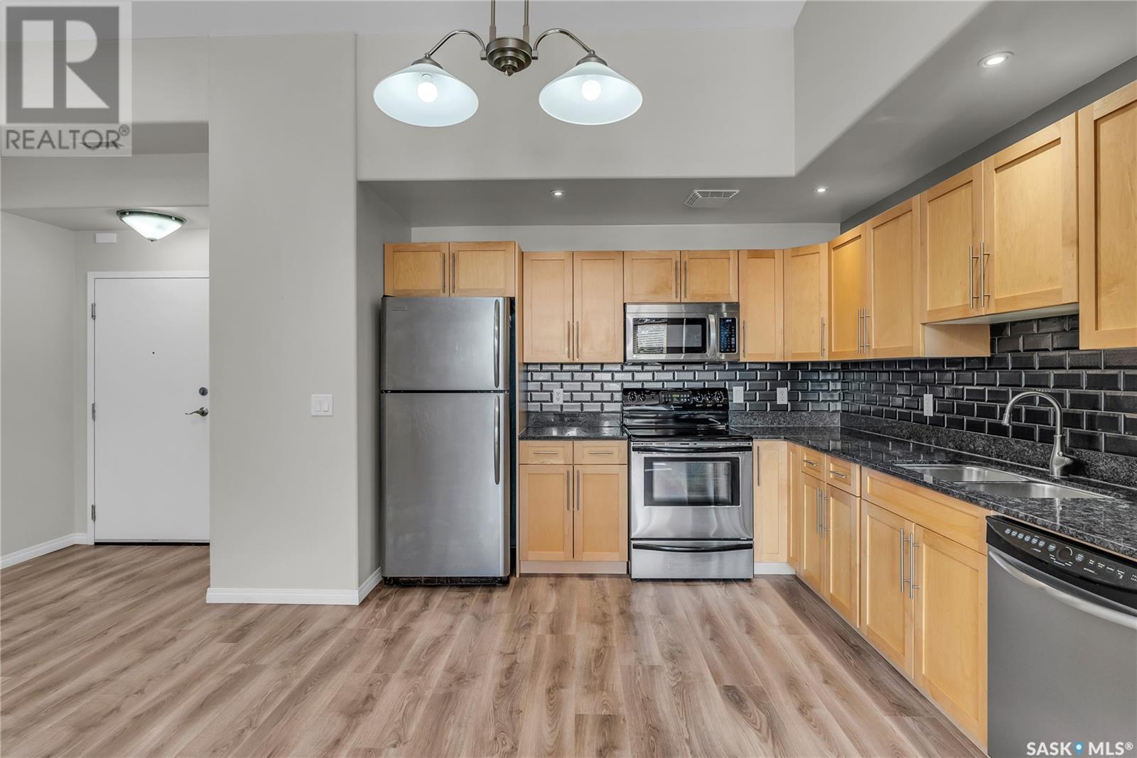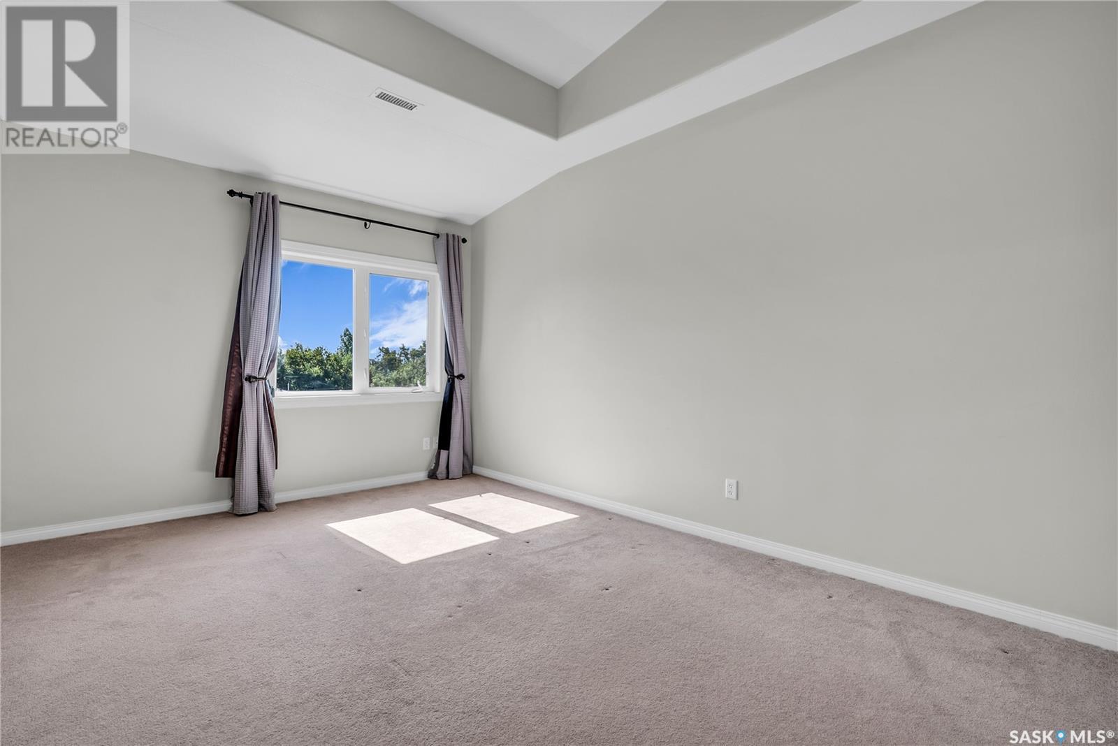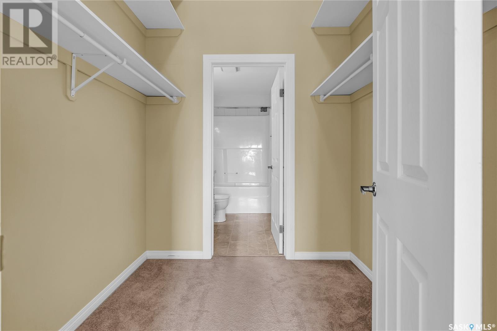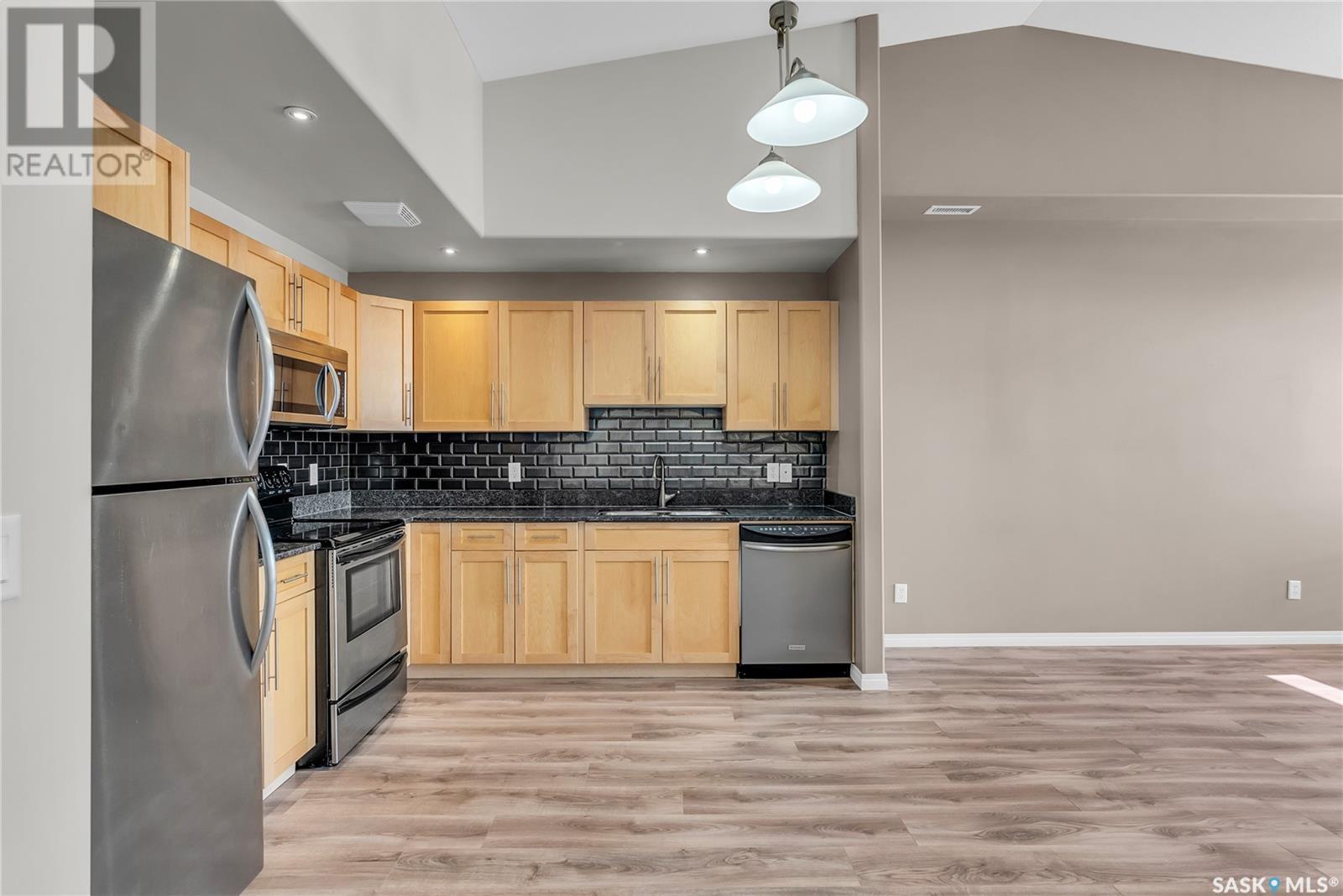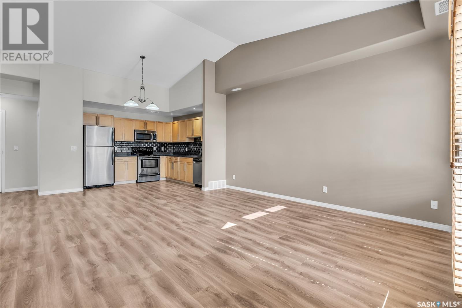 Welcome to this inviting top-floor condo nestled in the desirable Silverwood area of Saskatoon. This spacious 2-bedroom, 2-bathroom unit boasts a perfect blend of modern comfort and convenience, offering a delightful living experience in a tranquil setting. As you enter, you'll immediately notice the high vaulted ceilings that create a sense of openness and light throughout the unit. The recently upgraded paint and flooring add a fresh, contemporary feel to the space, perfectly complementing the sleek granite countertops in the kitchen. The well-designed layout features a luxurious primary suite with a walk-through closet leading to a 4-piece ensuite bathroom. An additional 4-piece bathroom ensures ample space and privacy for guests or family members. The kitchen and living areas are equipped with appliances in excellent condition, making this home ready for you to move in and enjoy. Step out onto your private balcony, where you can bask in the sunshine and savour the peaceful views. This unit is situated in a quiet building, providing a serene retreat from the hustle and bustle of everyday life. Located just two blocks from the picturesque South Saskatchewan River, you’ll have immediate access to beautiful walking and biking paths. The proximity to Silverwood Golf Course and several top-rated schools—including two elementary schools and a high school—adds to the convenience of this location. University and Sask Polytechnic students will appreciate the accessible bus routes. For everyday needs, a convenience store is right across the street, and the Lawson Heights Shopping area is less than a 5-minute drive away, offering a variety of shopping and dining options. Don’t miss the opportunity to make this charming condo your new home. Experience the blend of modern elegance and unbeatable location in Silverwood—schedule your viewing today! (id:22211)