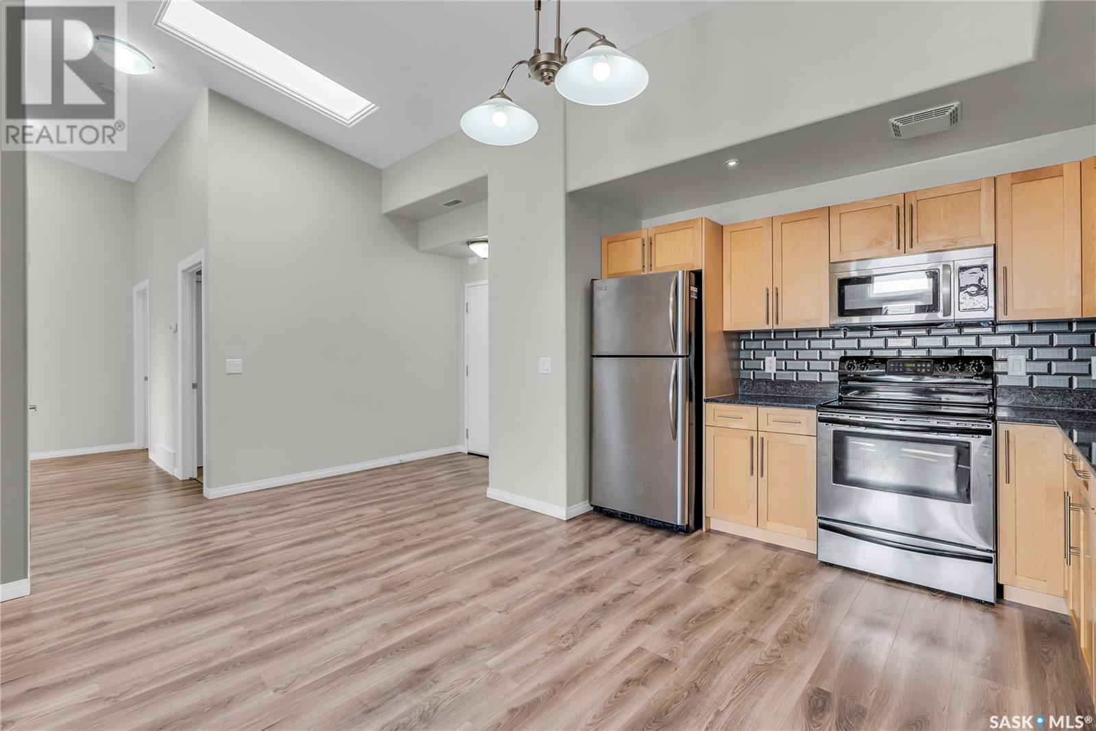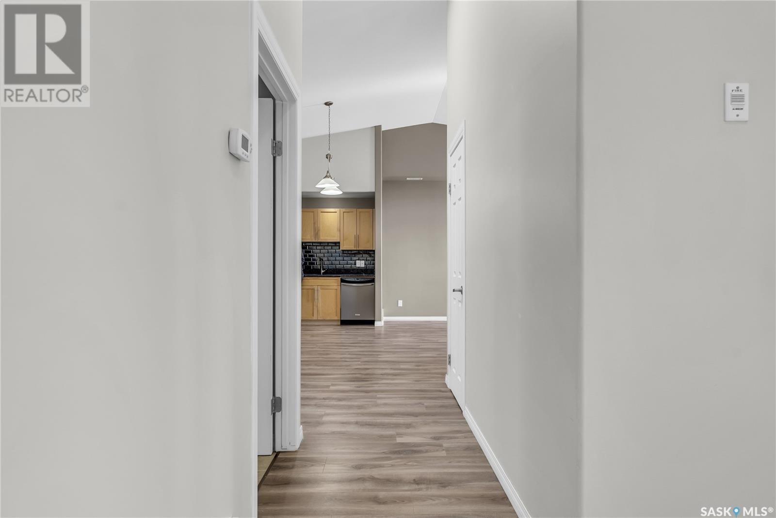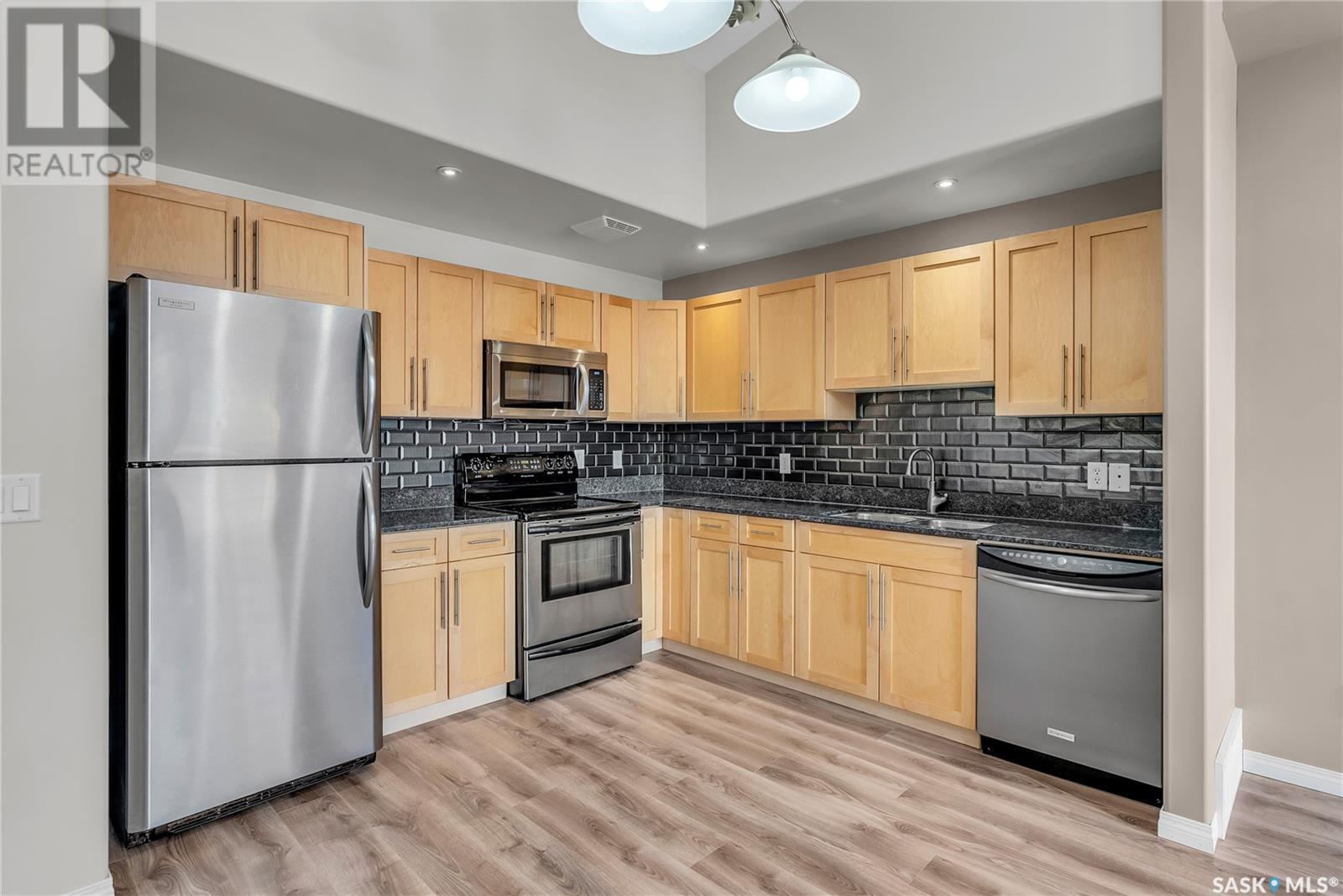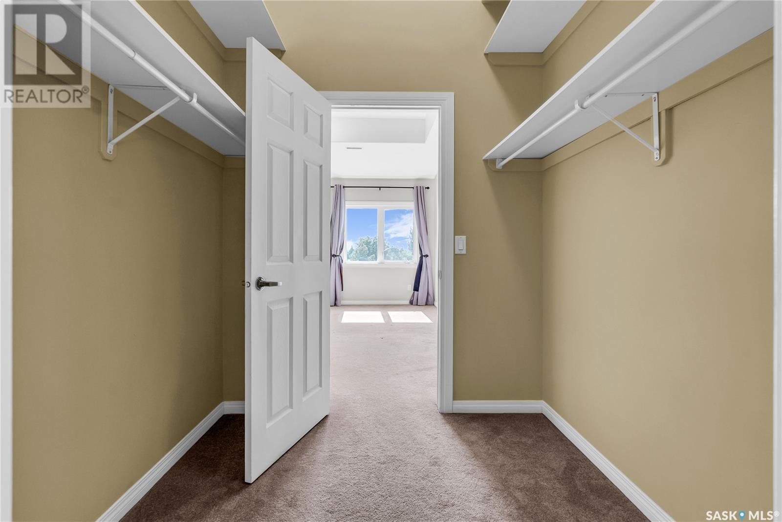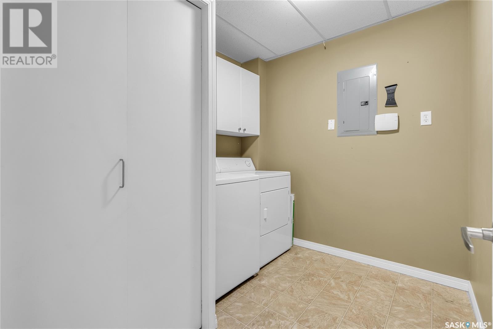 Welcome to this inviting top-floor condo nestled in the desirable Silverwood area of Saskatoon. This spacious 2-bedroom, 2-bathroom unit boasts a perfect blend of modern comfort and convenience, offering a delightful living experience in a tranquil setting. As you enter, you'll immediately notice the high vaulted ceilings that create a sense of openness and light throughout the unit. The recently upgraded paint and flooring add a fresh, contemporary feel to the space, perfectly complementing the sleek granite countertops in the kitchen. The well-designed layout features a luxurious primary suite with a walk-through closet leading to a 4-piece ensuite bathroom. An additional 4-piece bathroom ensures ample space and privacy for guests or family members. The kitchen and living areas are equipped with appliances in excellent condition, making this home ready for you to move in and enjoy. Step out onto your private balcony, where you can bask in the sunshine and savour the peaceful views. This unit is situated in a quiet building, providing a serene retreat from the hustle and bustle of everyday life. Located just two blocks from the picturesque South Saskatchewan River, you’ll have immediate access to beautiful walking and biking paths. The proximity to Silverwood Golf Course and several top-rated schools—including two elementary schools and a high school—adds to the convenience of this location. University and Sask Polytechnic students will appreciate the accessible bus routes. For everyday needs, a convenience store is right across the street, and the Lawson Heights Shopping area is less than a 5-minute drive away, offering a variety of shopping and dining options. Don’t miss the opportunity to make this charming condo your new home. Experience the blend of modern elegance and unbeatable location in Silverwood—schedule your viewing today! (id:22211)