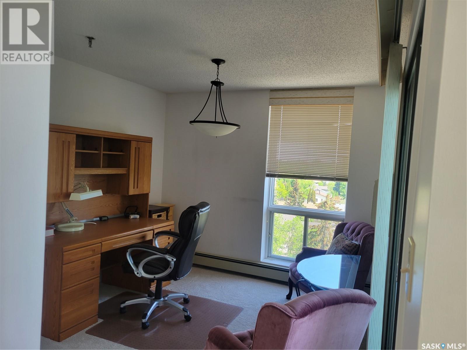 Top floor condo in River Heights! This bright and spacious corner unit features 1625 sqft, lots of windows and a wonderful river view! This condo is in prime location, close to shopping, dining, entertainment and a few steps away from the river. Two large bedrooms, two full bathrooms, a bright living room with a fireplace, family room, a nice kitchen with a large eating area plus a formal dining room or den with patio doors to an enclosed screened balcony. The primary bedroom has a walk-in closet and a full ensuite. In-suite laundry room, a large separate storage room and a sauna. This home is situated just a short walk to the beautiful Meewasin Trail! Great bus access! The main building is equipped with two elevators, indoor swimming pool, hot tub, reading room & games room. All appliances and window coverings included! Call today to book a private showing on this turn key condo! (id:22211)