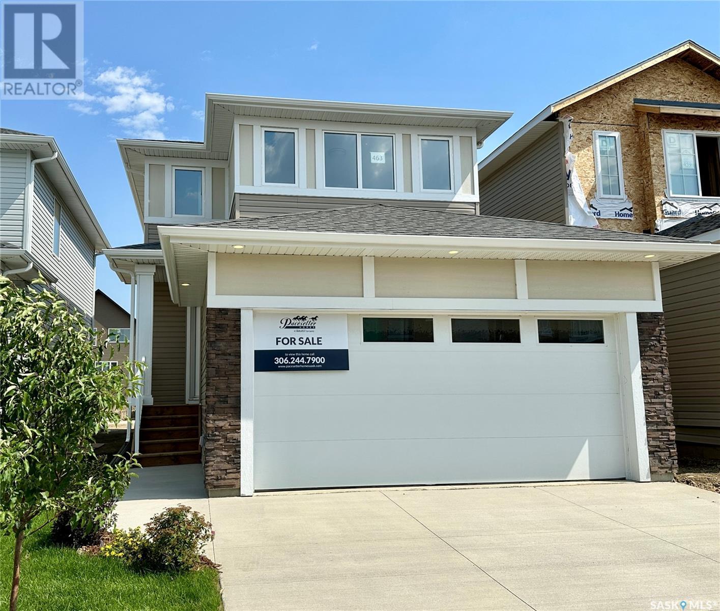 Welcome home to the Ambrose at 463 Schmeiser Bend. With nearly 1500 sqft, the Ambrose provides exceptional value to those looking for a front-attached garage home at an affordable price. The open concept main floor features a large great room, dining room with sliding door access to a future deck, and a spacious kitchen outfitted with a large island and quartz countertops throughout. Samsung stainless steel kitchen appliances and white front laundry laundry pair included! Upstairs, a large primary suite awaits you, complete with a walk-in closet and ensuite. Two equally sized bedrooms share access to another full bathroom. Plus, you’ll enjoy the convenience of upstairs laundry. 19'x24' double attached front garage, double concrete driveway and front yard landscaping included! (id:22211)