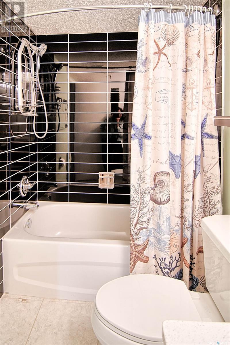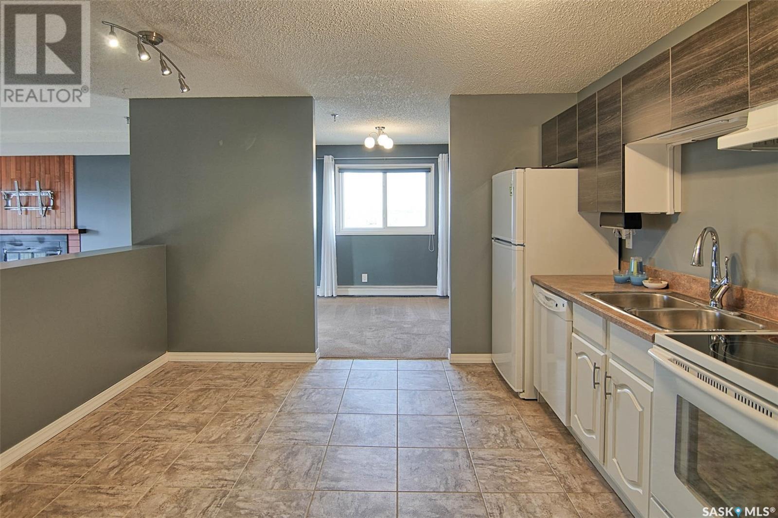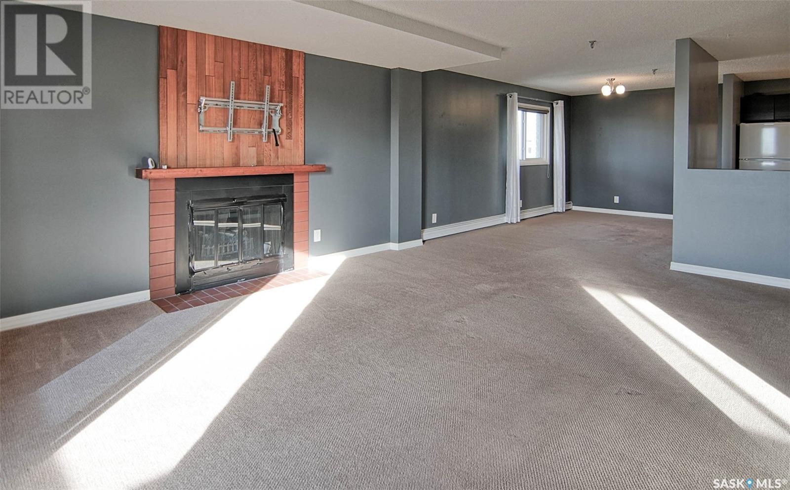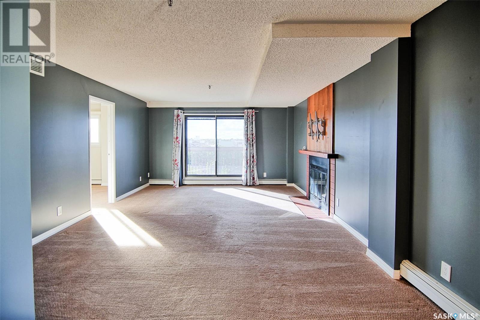 Quick possession for Students. Welcome to one of the most desirable areas in Saskatoon, City Park. This 1141 sq. ft. 2 bedroom one bath condo with underground parking is located on the 8th floor of the Discovery Condos. It is walking distance to City Centre and the University of Saskatchewan and a skip over to the City Hospital. Located on the 8th floor and a corner unit there is a wraparound deck and loads of light, both bedrooms are large with a huge living room and dining area plus a spacious kitchen. This building is unique in layout as it has only 4 units on each floor with shared laundry per floor. This wonderful building has an indoor swimming pool, recreation/gym room and a roof top patio to watch the sunsets. There are new windows as of 5 years ago and a new patio door. The deck is a pleasure to sit and have a cocktail in the warmer days and then on cooler days cozy up to the fireplace. You will fall in love with the view above the trees the way the sun peaks in the dining room window early in the morning and the gorgeous sunsets in the evening. The condo building is very well maintained with many of the suggested maintenance in the reserve study done a head of schedule. There is gated above ground parking along with the assigned underground parking. This building shows all the owners pride with the improvements and management. (id:22211)
