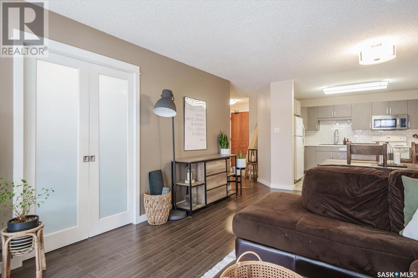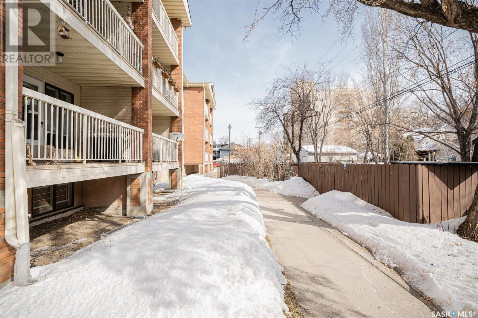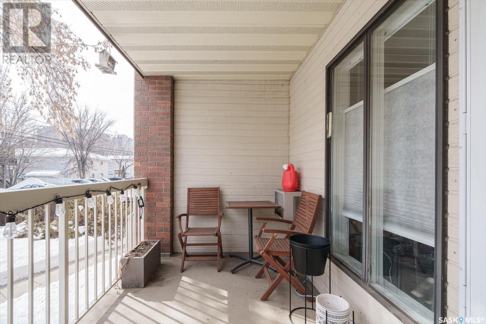 NEWLY RENOVATED TOP TO BOTTOM WITH HEATED UNDERGROUND PARKING STALL!!! Welcome to #106-520 3rd Avenue N located in the heart of City Park. This beautiful east facing unit was recently renovated and has so much charm. Featuring 1,033 sqft, you will be impressed with its brilliant and unique layout offering an oversized primary bedroom with 2 piece en-suite and walk in closet. The kitchen features a modern style with beautiful countertops, subway tile backsplash and sleek cabinetry. This home showcases newer laminate flooring throughout, in-suite laundry room and a large 4-piece bathroom with tub/shower combo. Off the living room you will find a spacious den/2nd bedroom separated with elegant frosted glass pocket doors. The living room boast open concept living, large windows and a patio door that leads outside to a private covered balcony, overlooking green space. This unit comes with 1 heated underground parking stall with a huge storage locker. Conveniently located close to downtown Saskatoon, bus stop, walking distance to the U of S and all shopping amenities. You have to see it in person to appreciate its true beauty! Book your private showing today! (id:22211)