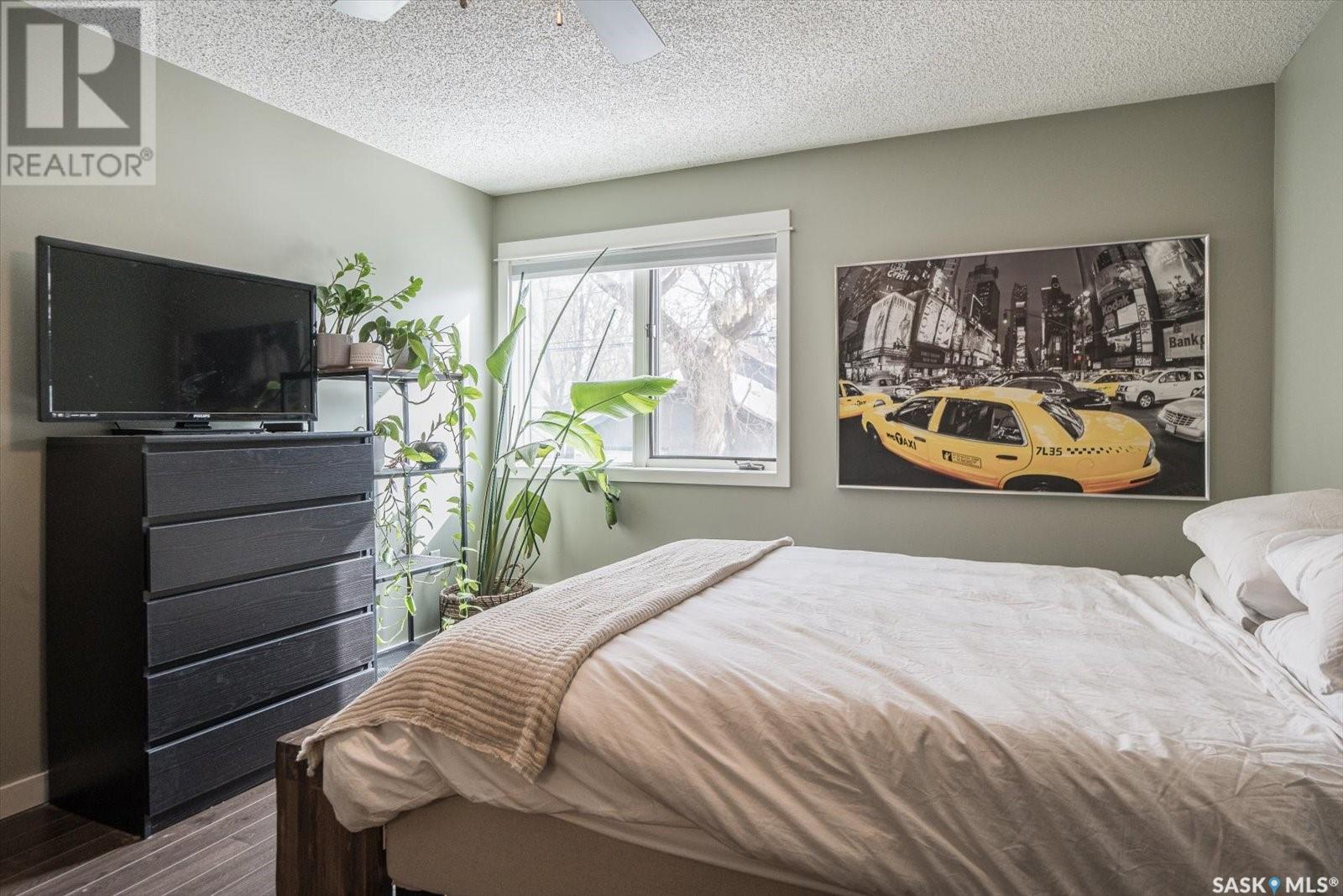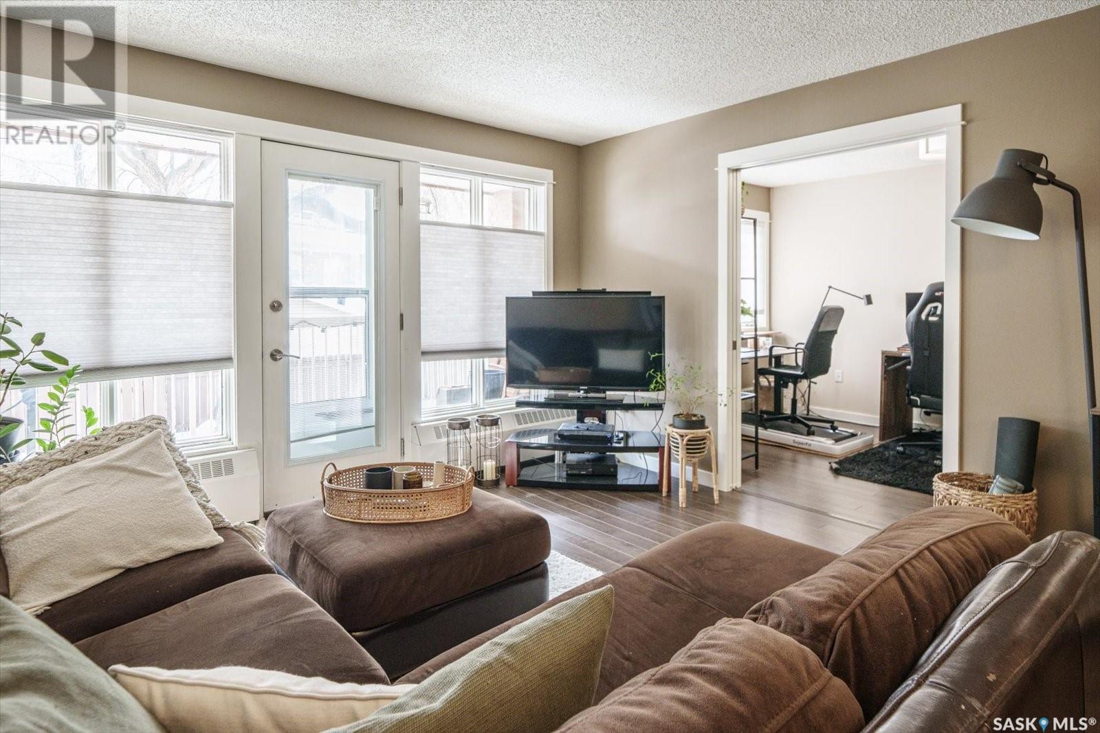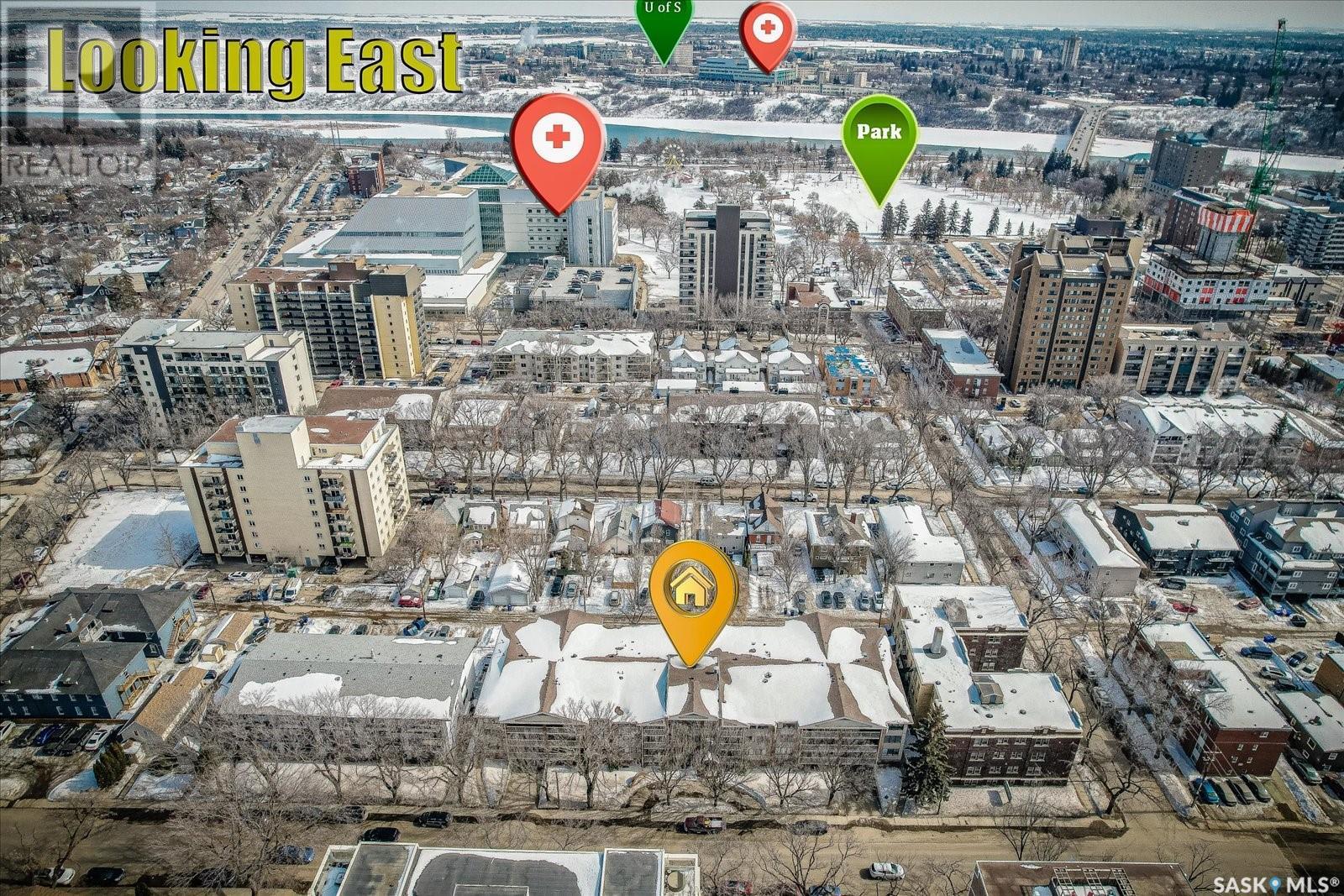 NEWLY RENOVATED TOP TO BOTTOM WITH HEATED UNDERGROUND PARKING STALL!!! Welcome to #106-520 3rd Avenue N located in the heart of City Park. This beautiful east facing unit was recently renovated and has so much charm. Featuring 1,033 sqft, you will be impressed with its brilliant and unique layout offering an oversized primary bedroom with 2 piece en-suite and walk in closet. The kitchen features a modern style with beautiful countertops, subway tile backsplash and sleek cabinetry. This home showcases newer laminate flooring throughout, in-suite laundry room and a large 4-piece bathroom with tub/shower combo. Off the living room you will find a spacious den/2nd bedroom separated with elegant frosted glass pocket doors. The living room boast open concept living, large windows and a patio door that leads outside to a private covered balcony, overlooking green space. This unit comes with 1 heated underground parking stall with a huge storage locker. Conveniently located close to downtown Saskatoon, bus stop, walking distance to the U of S and all shopping amenities. You have to see it in person to appreciate its true beauty! Book your private showing today! (id:22211)