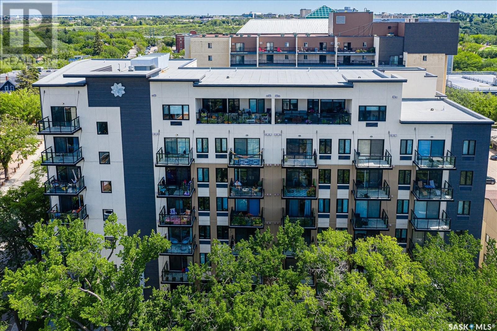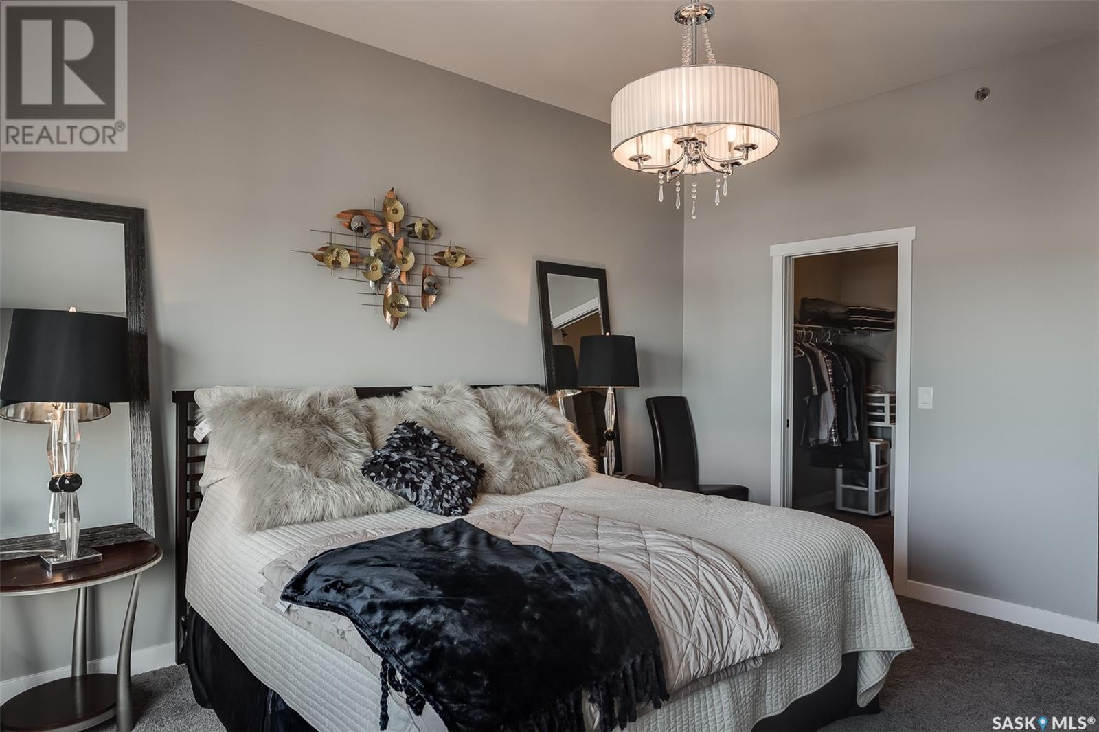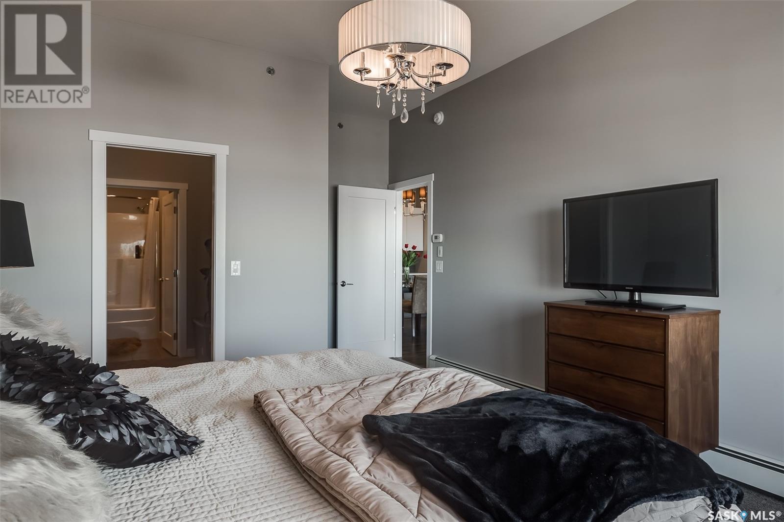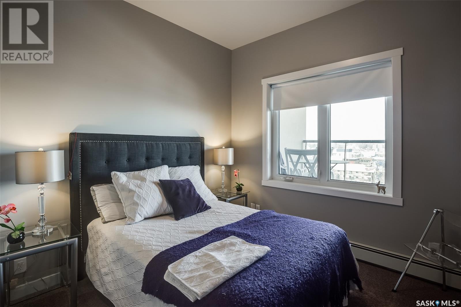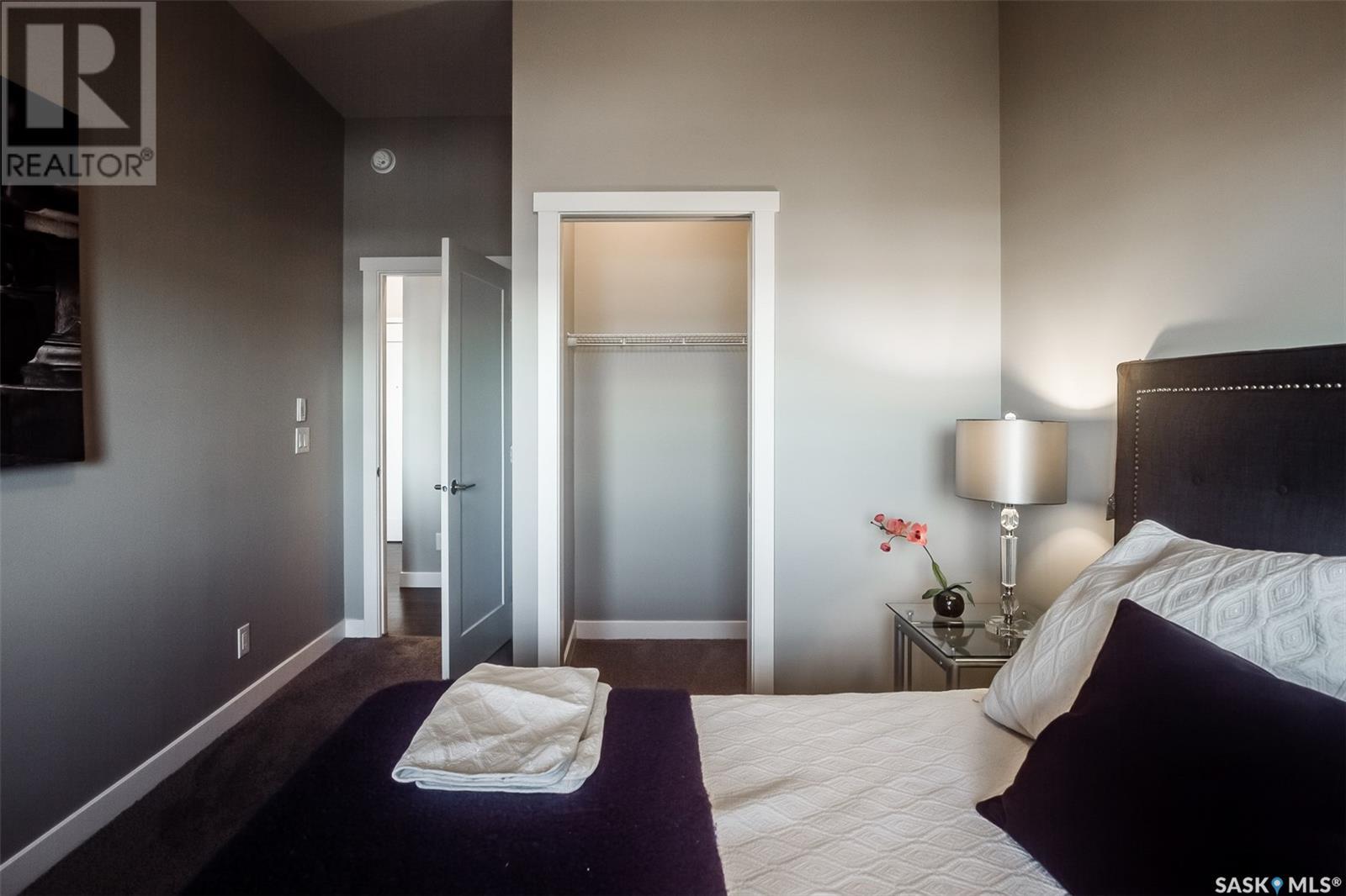 Spectacular Penthouse condo in the new Shangri-La building! All the wants and needs you could ask for! Watch the sunset while relaxing on the 23 ft by 9 ft west-facing, covered balcony overlooking downtown Saskatoon. Spacious master bedroom with walk-in closet and 4-piece ensuite. Open kitchen and living with pristine cabinets, quartz countertops, and stainless steel appliances. An additional 2nd bedroom with a 4-piece bathroom and walk-in closet! The condo comes with in-suite laundry, 2 underground parking stalls (tandem), a large storage unit, and an amenities room with a rooftop patio. Ideal location between Downtown and the City Hospital in Downtown Saskatoon and walking distance to almost everywhere! Don’t miss out on this amazing penthouse! (id:22211)