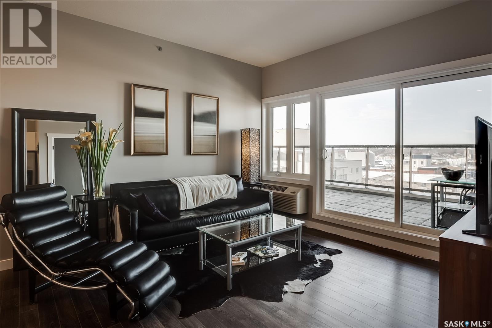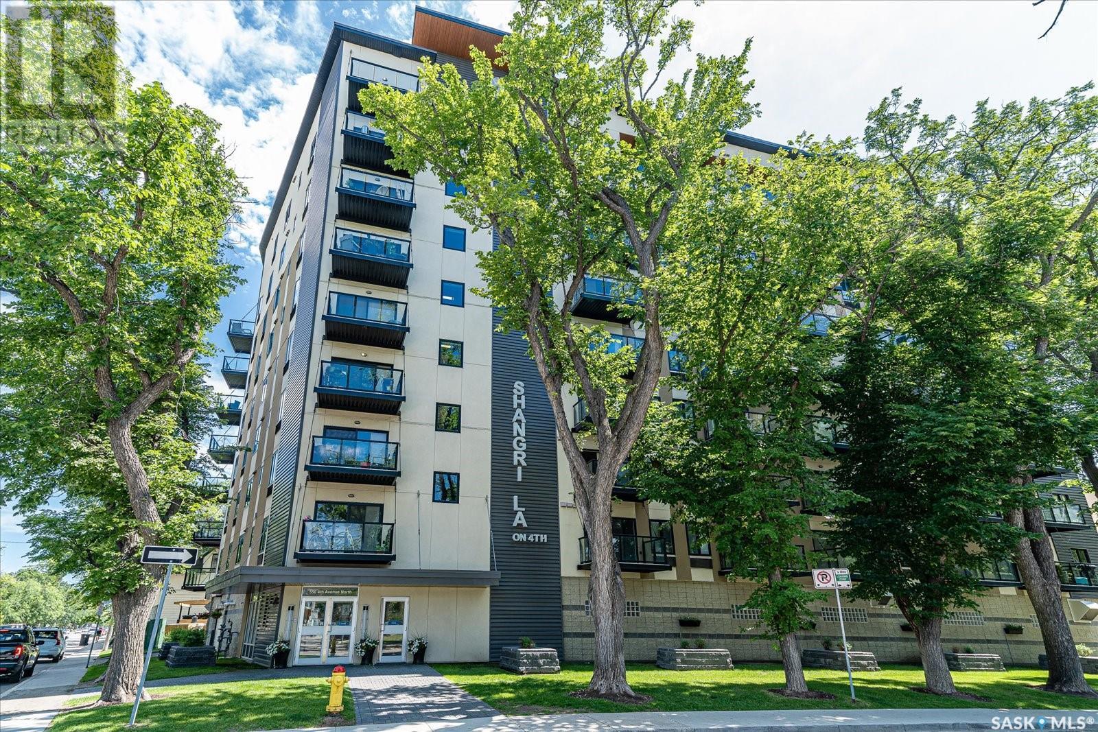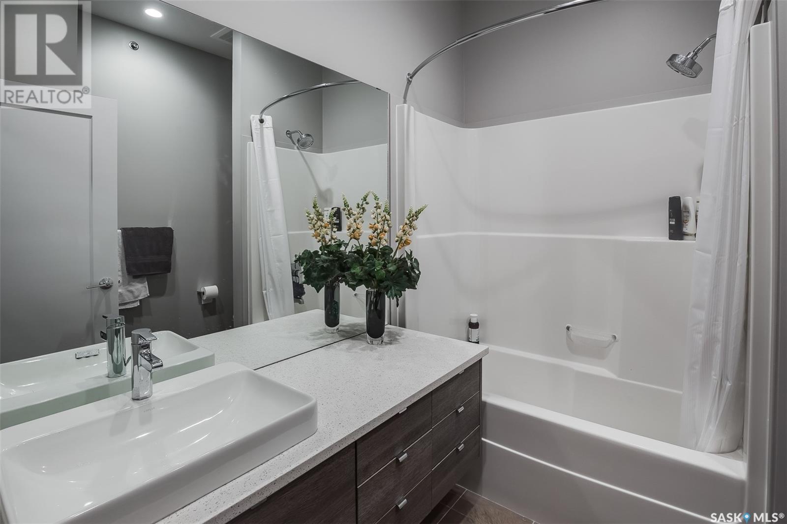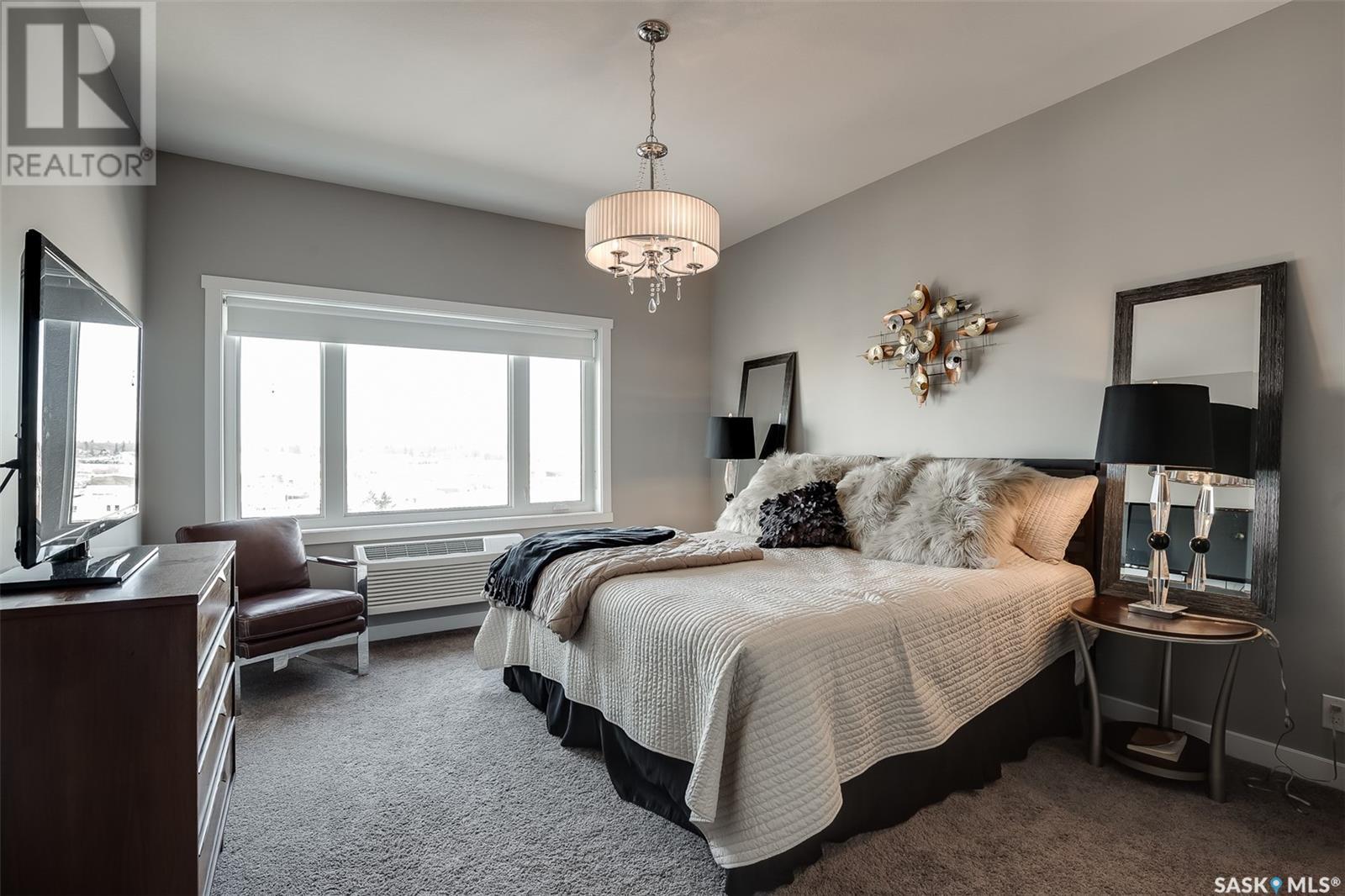 Spectacular Penthouse condo in the new Shangri-La building! All the wants and needs you could ask for! Watch the sunset while relaxing on the 23 ft by 9 ft west-facing, covered balcony overlooking downtown Saskatoon. Spacious master bedroom with walk-in closet and 4-piece ensuite. Open kitchen and living with pristine cabinets, quartz countertops, and stainless steel appliances. An additional 2nd bedroom with a 4-piece bathroom and walk-in closet! The condo comes with in-suite laundry, 2 underground parking stalls (tandem), a large storage unit, and an amenities room with a rooftop patio. Ideal location between Downtown and the City Hospital in Downtown Saskatoon and walking distance to almost everywhere! Don’t miss out on this amazing penthouse! (id:22211)