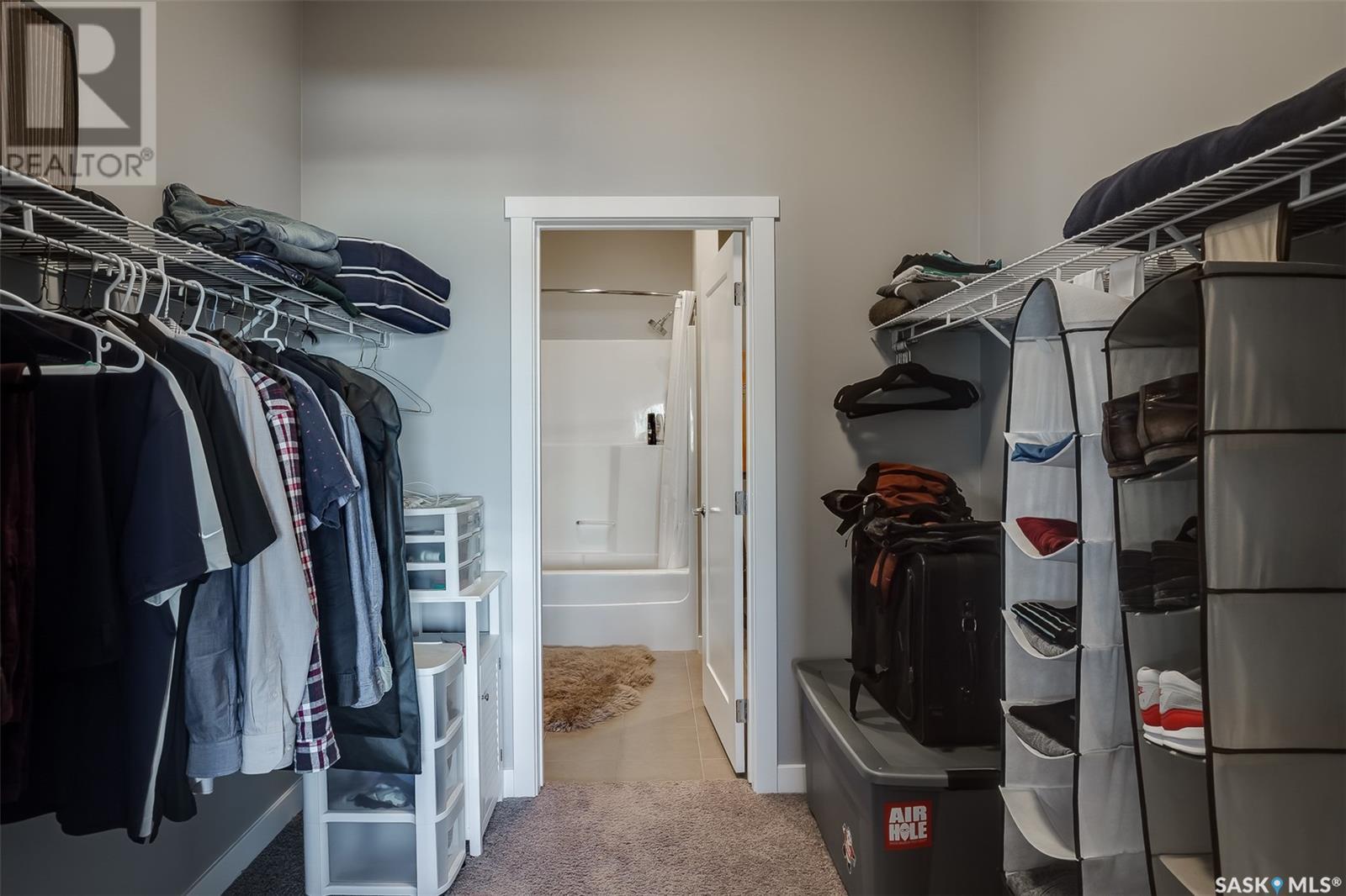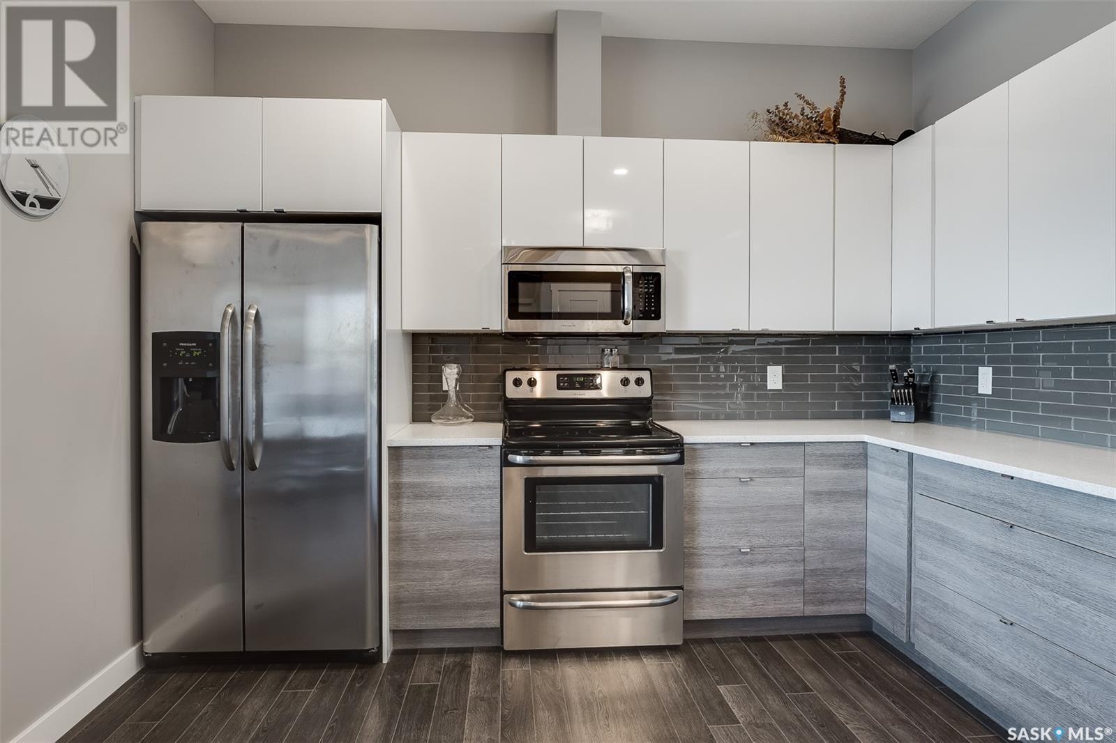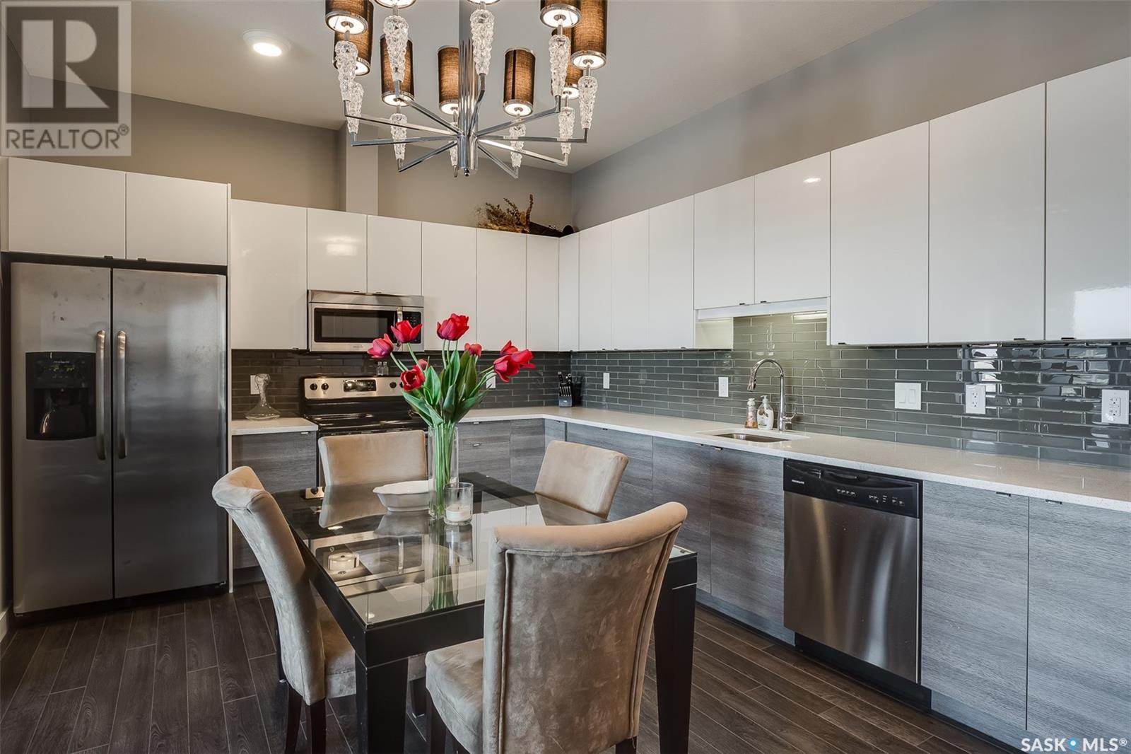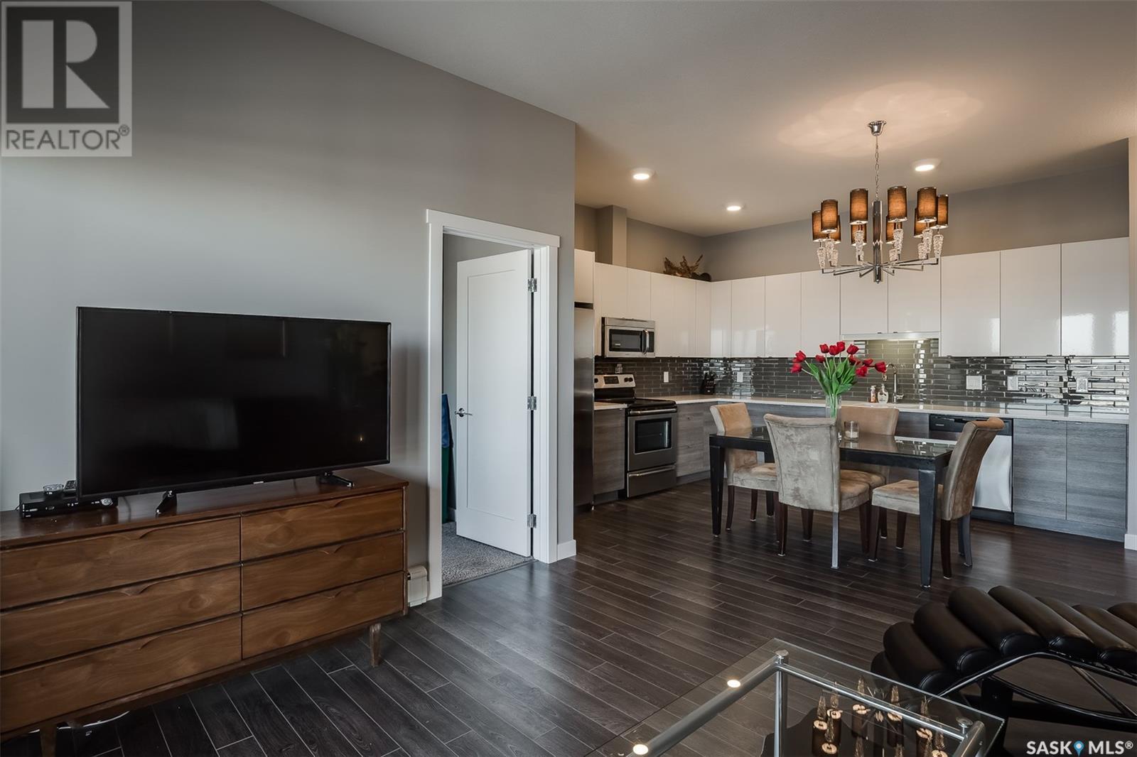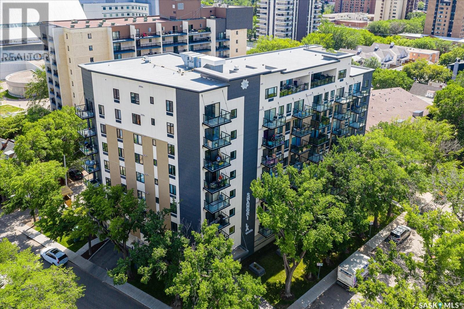 Spectacular Penthouse condo in the new Shangri-La building! All the wants and needs you could ask for! Watch the sunset while relaxing on the 23 ft by 9 ft west-facing, covered balcony overlooking downtown Saskatoon. Spacious master bedroom with walk-in closet and 4-piece ensuite. Open kitchen and living with pristine cabinets, quartz countertops, and stainless steel appliances. An additional 2nd bedroom with a 4-piece bathroom and walk-in closet! The condo comes with in-suite laundry, 2 underground parking stalls (tandem), a large storage unit, and an amenities room with a rooftop patio. Ideal location between Downtown and the City Hospital in Downtown Saskatoon and walking distance to almost everywhere! Don’t miss out on this amazing penthouse! (id:22211)