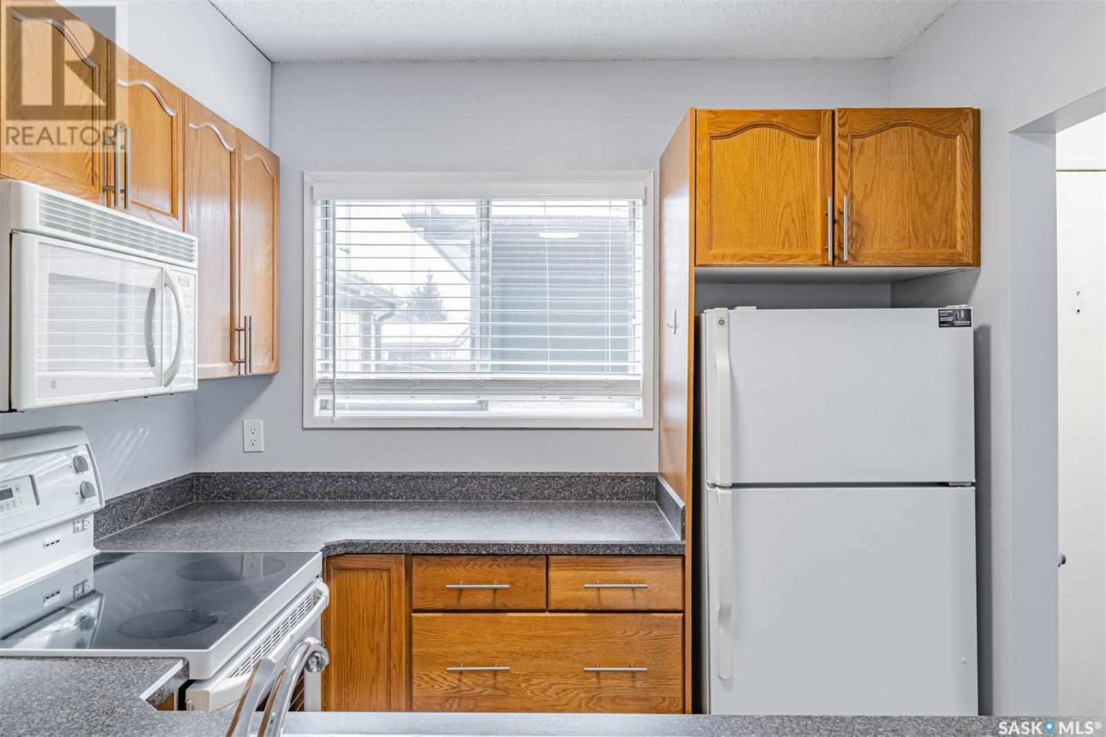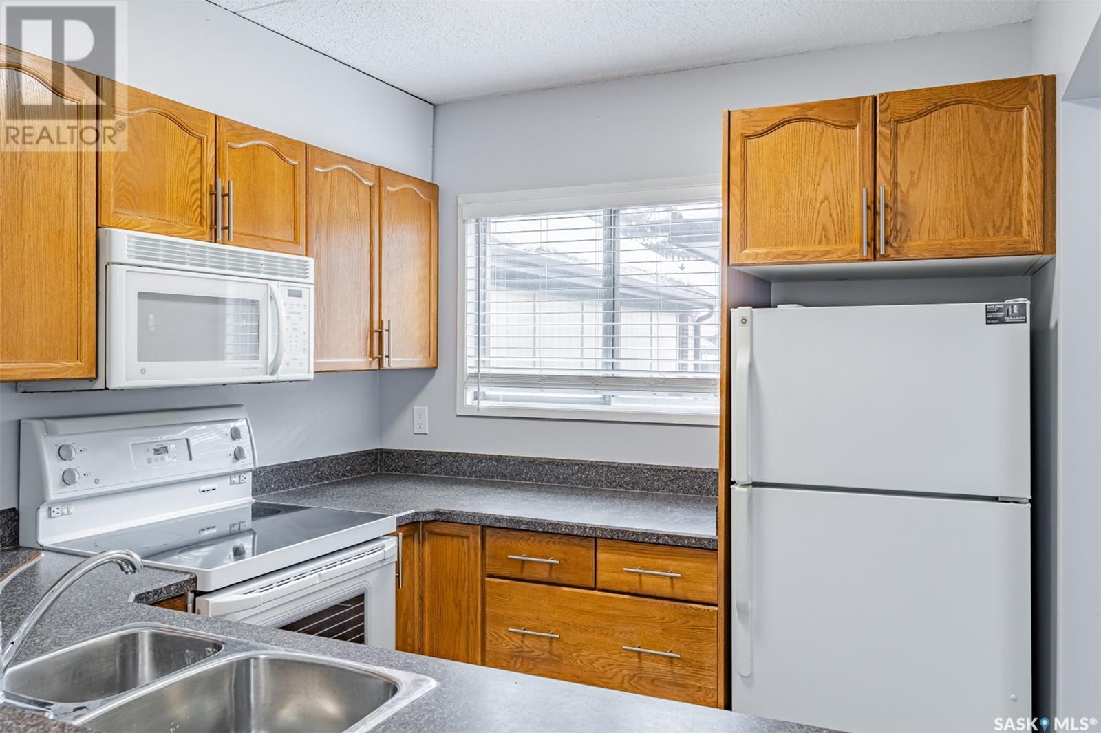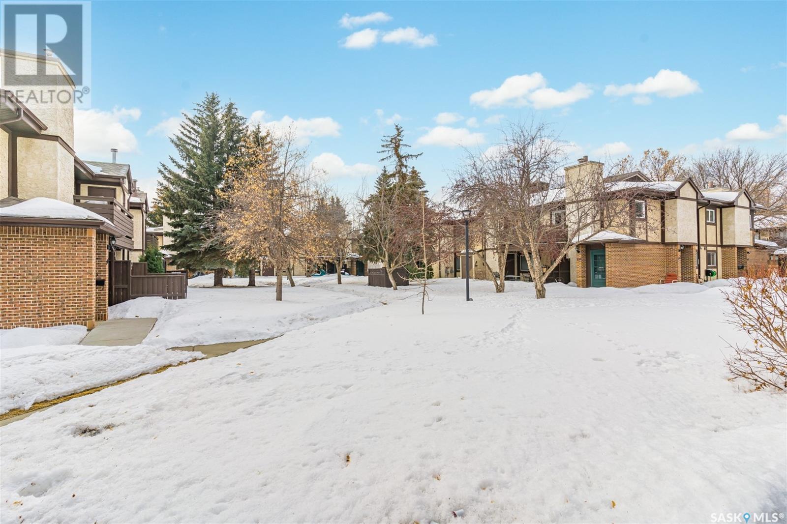 Are you looking for a peaceful, low maintenance oasis surrounded by mature trees to call home in the north end of Saskatoon? This desirable and airy feeling main level townhouse is ready for you! With south facing windows that overlook the beautiful courtyard there is certainly no lack of gorgeous natural light to fill the entire home. The freshened kitchen and crisp white appliances invite culinary creativity when you entertain your friends and family. The dining room is a great space for meals plus those laughter filled game nights too! Let's talk about the generously sized primary bedroom and the fantastic second bedroom that has the flexibility to be used as a guest room, or even better if you work from home, a spacious office. The layout offers great flexibility with a Jack and Jill style 4-piece bathroom design. Did you notice this updated home features luxury vinyl plank in the living areas with durable lino in the utility space? Brand new modern LED lights lend that stylish touch and that great first impression you are looking for. In-suite laundry sure is a nice bonus too! The decorative, non-functional fireplace was recently painted and mantle stained for an contemporary look. Just steps out the door is your detached 12x22’ garage for ultimate convenience. Located in an amazing north end location with great proximity to shopping, endless walking paths near the river and all the amenities you could dream of, this is the place for you! (id:22211)