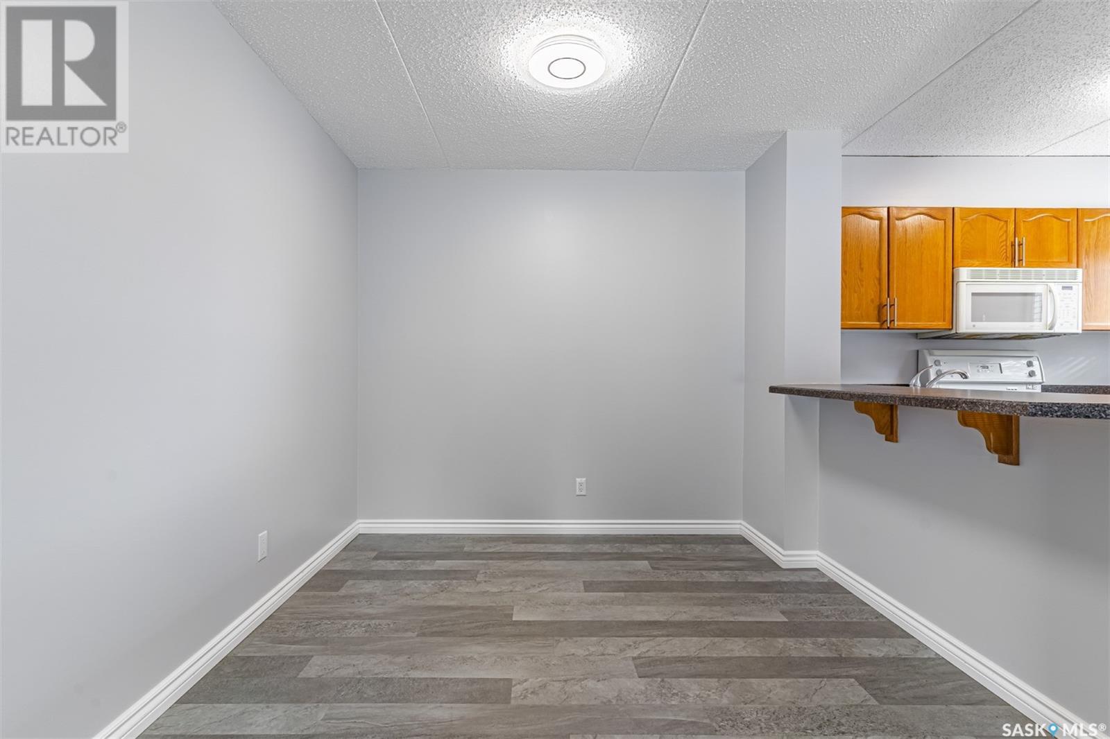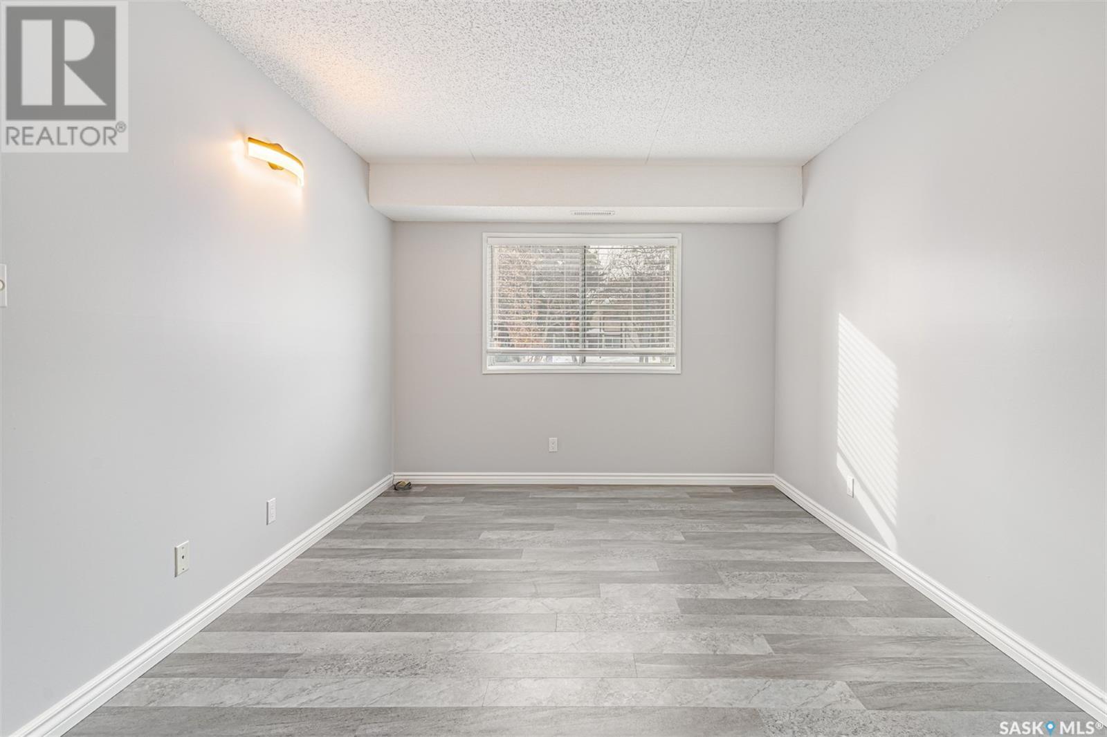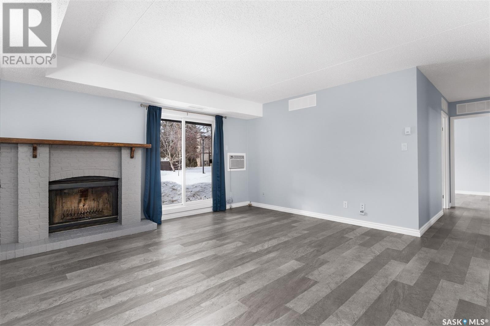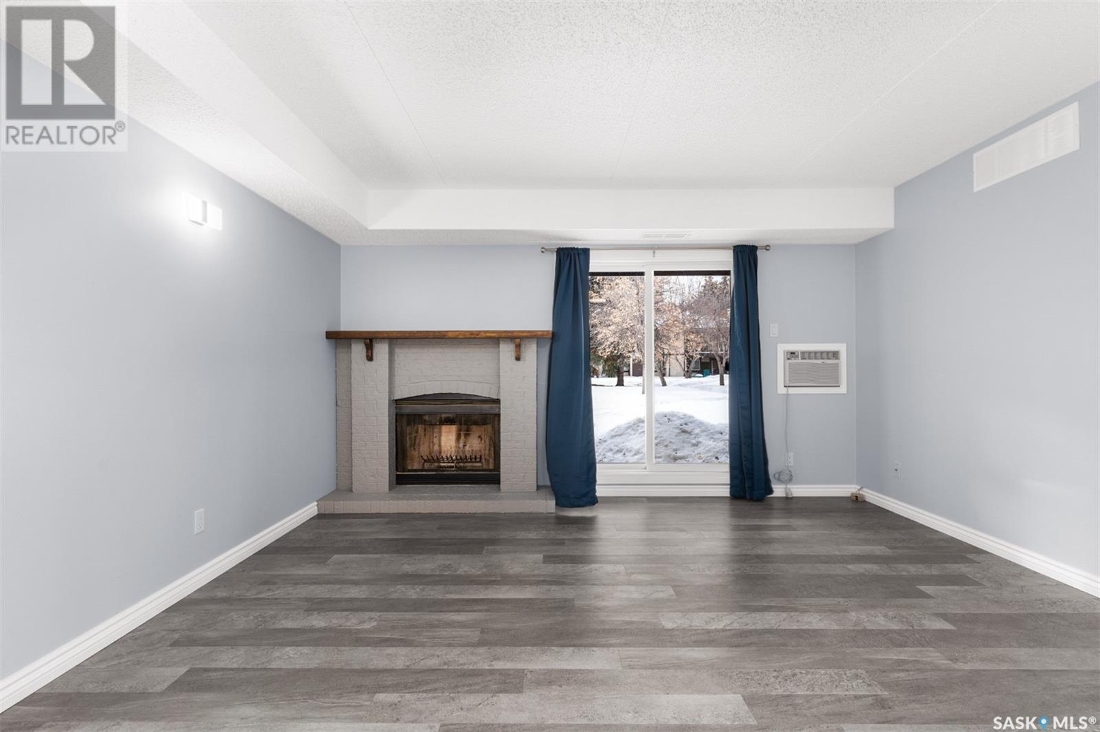 Are you looking for a peaceful, low maintenance oasis surrounded by mature trees to call home in the north end of Saskatoon? This desirable and airy feeling main level townhouse is ready for you! With south facing windows that overlook the beautiful courtyard there is certainly no lack of gorgeous natural light to fill the entire home. The freshened kitchen and crisp white appliances invite culinary creativity when you entertain your friends and family. The dining room is a great space for meals plus those laughter filled game nights too! Let's talk about the generously sized primary bedroom and the fantastic second bedroom that has the flexibility to be used as a guest room, or even better if you work from home, a spacious office. The layout offers great flexibility with a Jack and Jill style 4-piece bathroom design. Did you notice this updated home features luxury vinyl plank in the living areas with durable lino in the utility space? Brand new modern LED lights lend that stylish touch and that great first impression you are looking for. In-suite laundry sure is a nice bonus too! The decorative, non-functional fireplace was recently painted and mantle stained for an contemporary look. Just steps out the door is your detached 12x22’ garage for ultimate convenience. Located in an amazing north end location with great proximity to shopping, endless walking paths near the river and all the amenities you could dream of, this is the place for you! (id:22211)