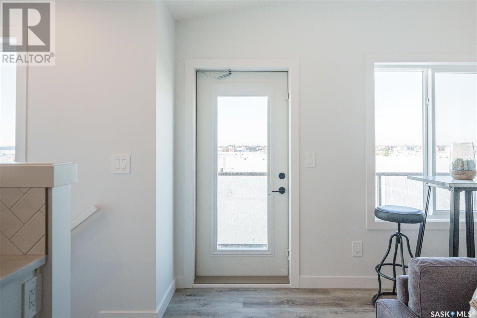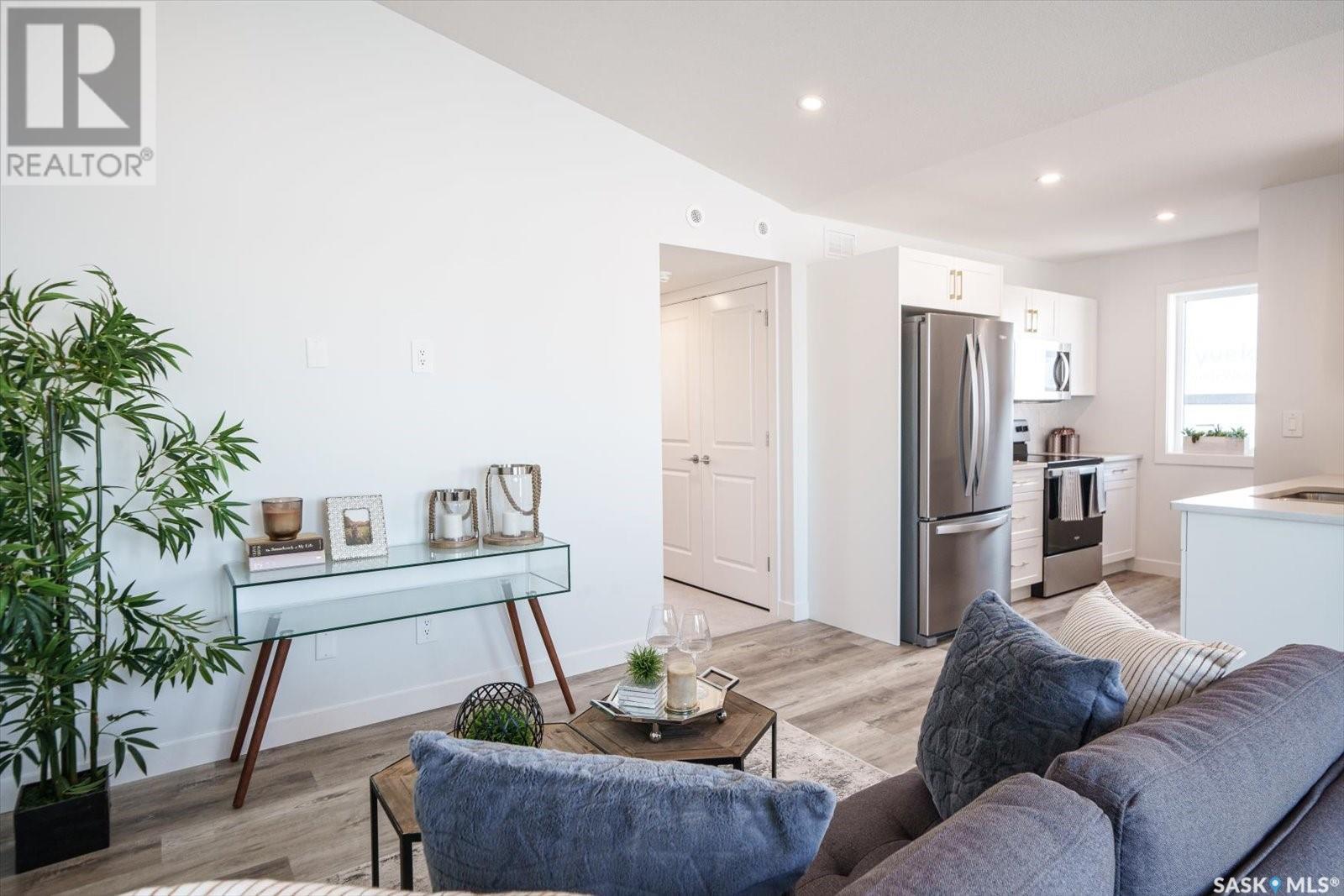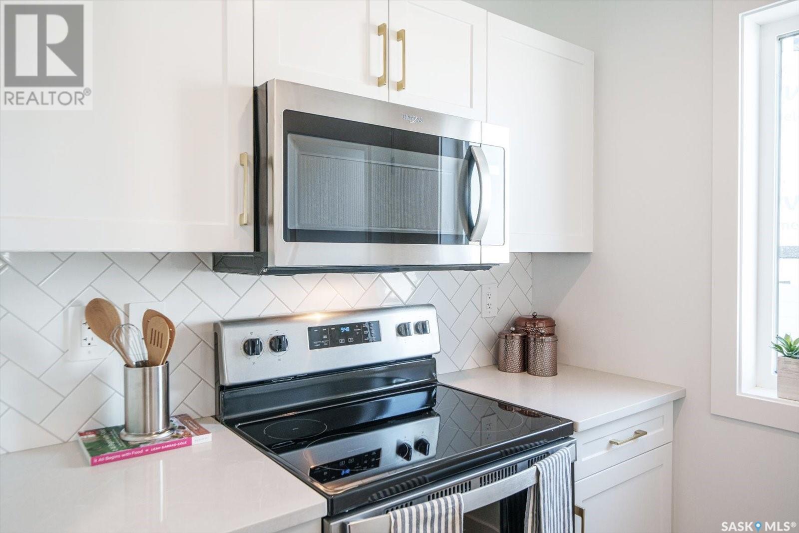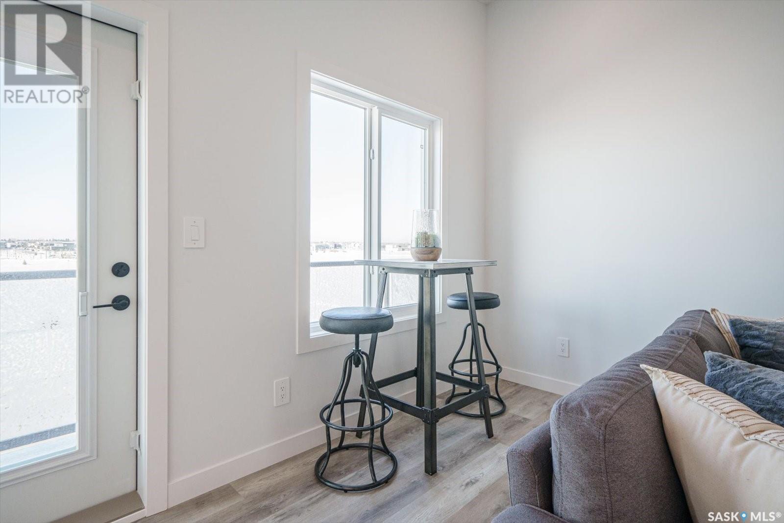 *Inquire today and take advantage of a limited time 3.99% interest rate promotion on a 2-year term! conditions apply, OAC. Contact your realtor or visit a showhome for details. Affordable living opportunity at the brand NEW 'North Ridge Towns Dubois' Project in the growing community of Brighton! The North Ridge Towns Dubois is an exciting new concept with a variety of floorplans available located adjacent to Brighton Core Park offering many possible activities to explore. The 'Victoria' is a top floor 989 sq ft 2 bedroom condo with balcony and single attached garage and sprawling views of Saskatoon. With additional floorplan options available at different price conscious points, it's worth your time to stop in for a tour at this exciting new location. The craftsmanship is truly evident with features including high quality shelving in all closets, an upgraded trim package, vinyl plank flooring, and quartz countertops. This home also includes a heat recovery ventilation system, triple pane windows, high efficient furnace, and a stainless steel appliance package! Visit the showhome located on site (Unit 5) 5-8pm Mon-Thurs, 12-5 pm Sat/Sun OR call/text/email for information. This brand new project may have the perfect home for you. GST/PST included in purchase price with any rebates to builder. Saskatchewan New Home Warranty. Pictures are unit 11, same floorplan as unit 23 (id:22211)