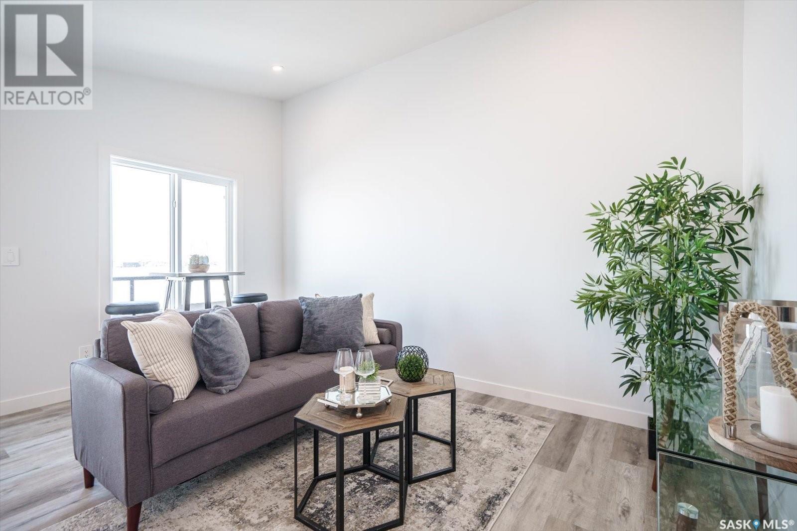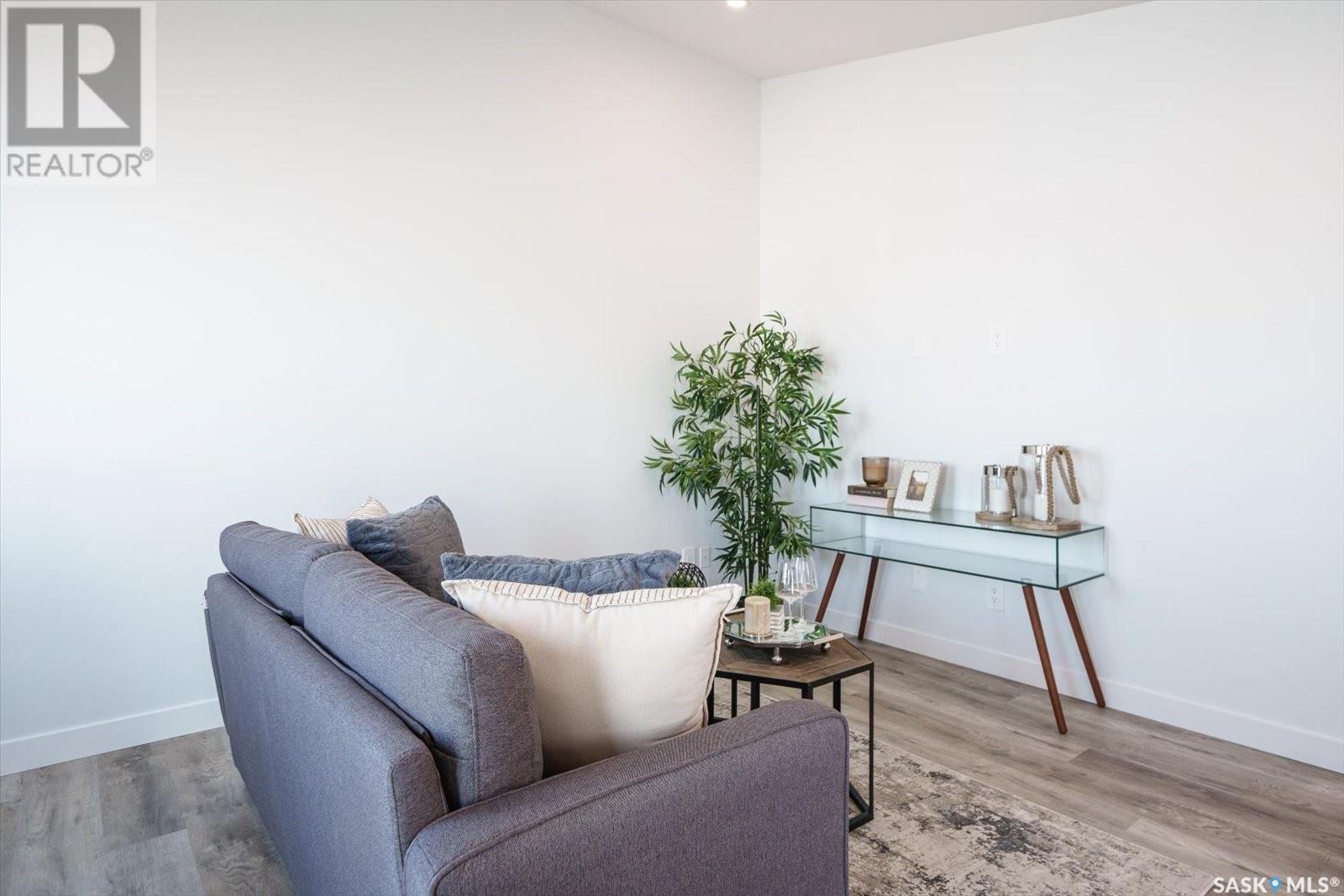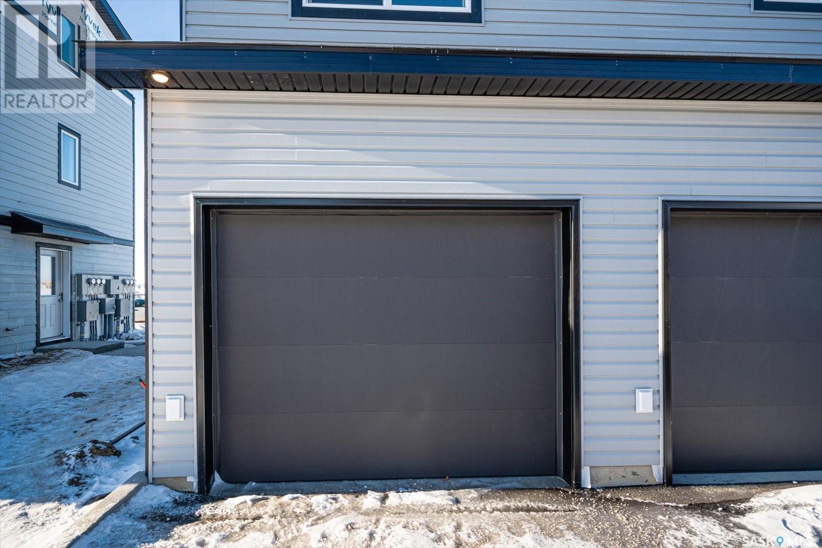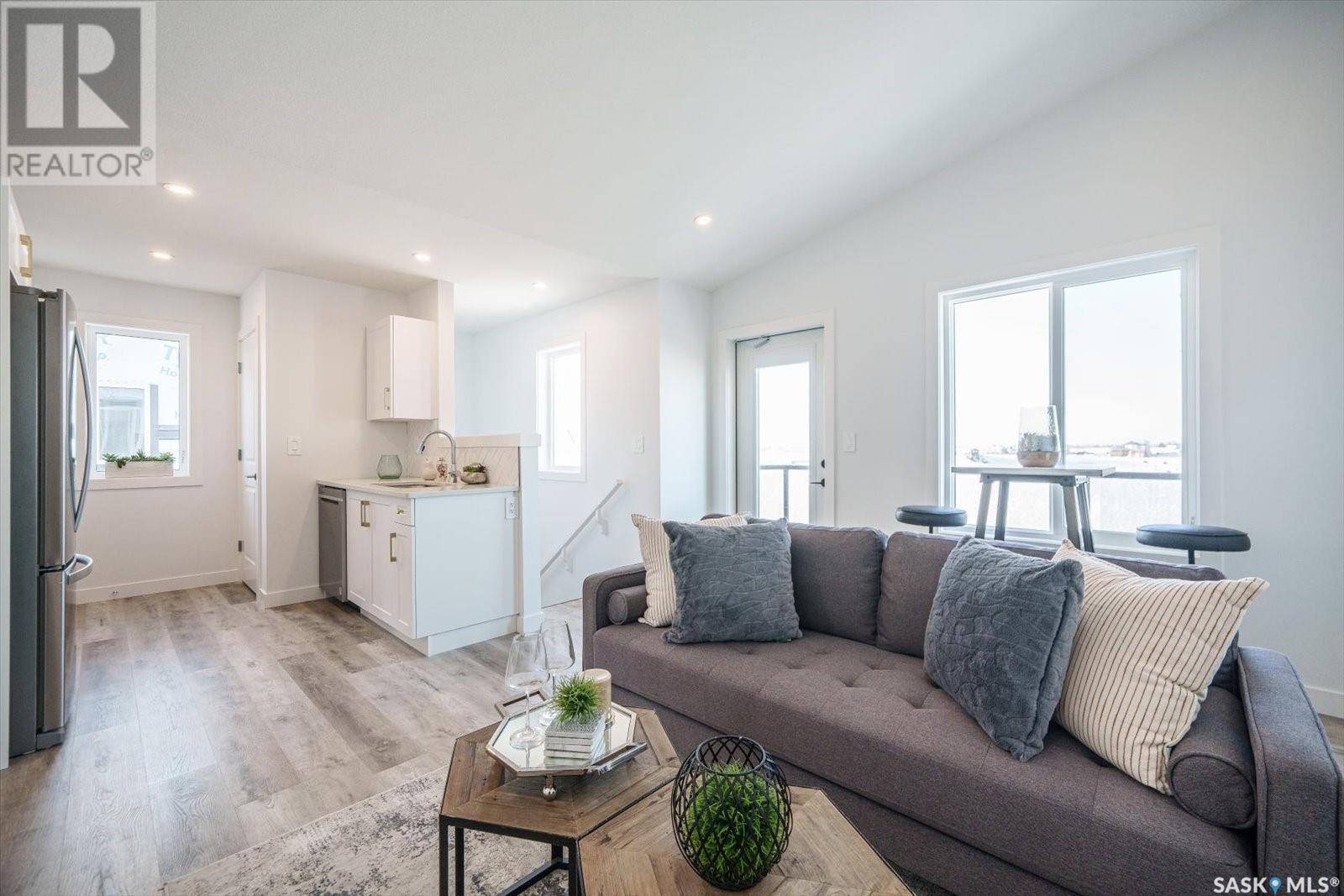 *Inquire today and take advantage of a limited time 3.99% interest rate promotion on a 2-year term! conditions apply, OAC. Contact your realtor or visit a showhome for details. Affordable living opportunity at the brand NEW 'North Ridge Towns Dubois' Project in the growing community of Brighton! The North Ridge Towns Dubois is an exciting new concept with a variety of floorplans available located adjacent to Brighton Core Park offering many possible activities to explore. The 'Victoria' is a top floor 989 sq ft 2 bedroom condo with balcony and single attached garage and sprawling views of Saskatoon. With additional floorplan options available at different price conscious points, it's worth your time to stop in for a tour at this exciting new location. The craftsmanship is truly evident with features including high quality shelving in all closets, an upgraded trim package, vinyl plank flooring, and quartz countertops. This home also includes a heat recovery ventilation system, triple pane windows, high efficient furnace, and a stainless steel appliance package! Visit the showhome located on site (Unit 5) 5-8pm Mon-Thurs, 12-5 pm Sat/Sun OR call/text/email for information. This brand new project may have the perfect home for you. GST/PST included in purchase price with any rebates to builder. Saskatchewan New Home Warranty. Pictures are unit 11, same floorplan as unit 23 (id:22211)