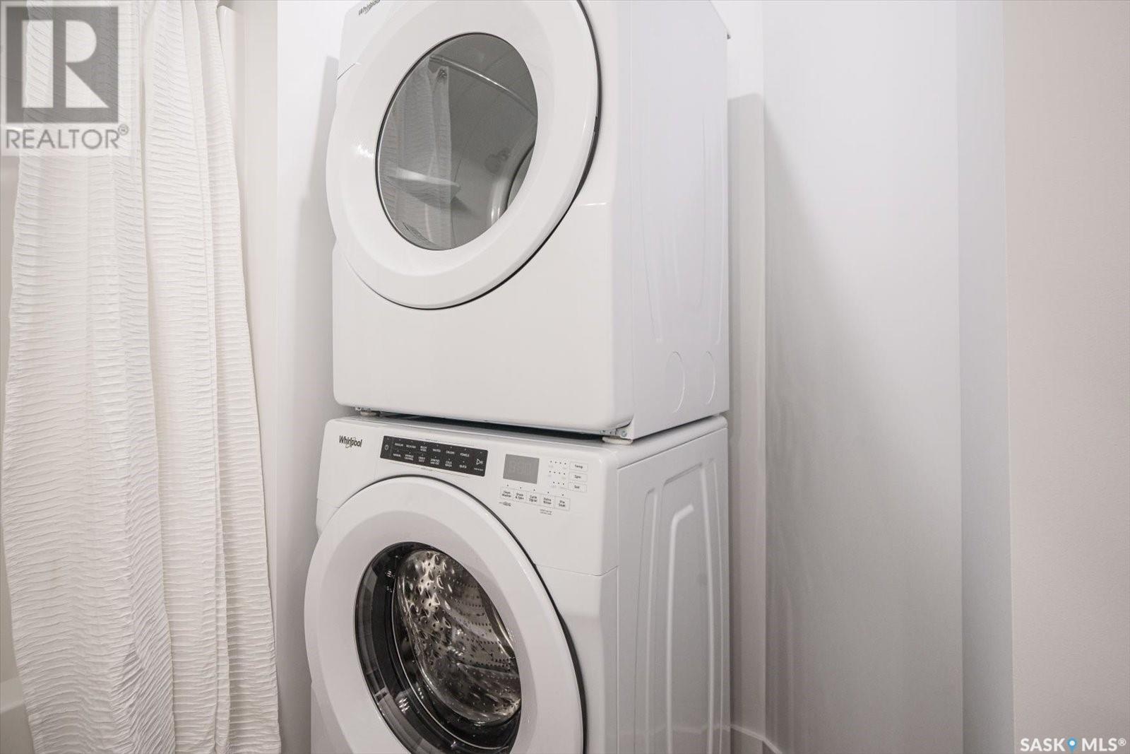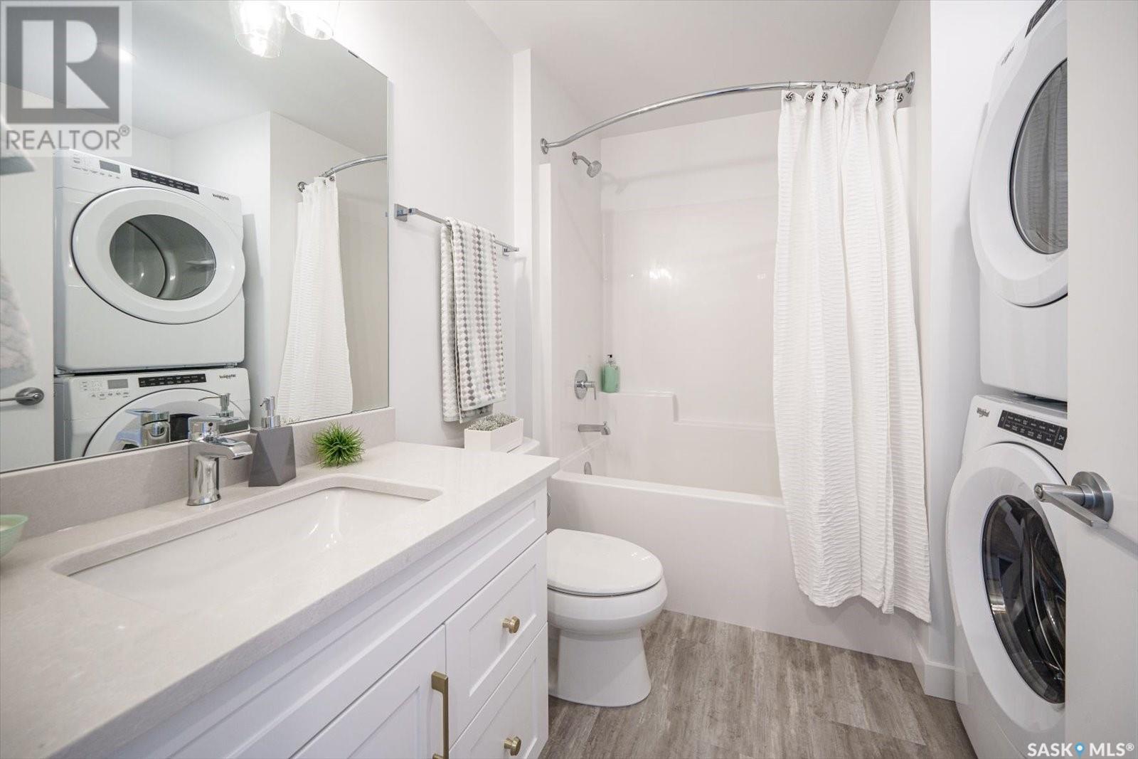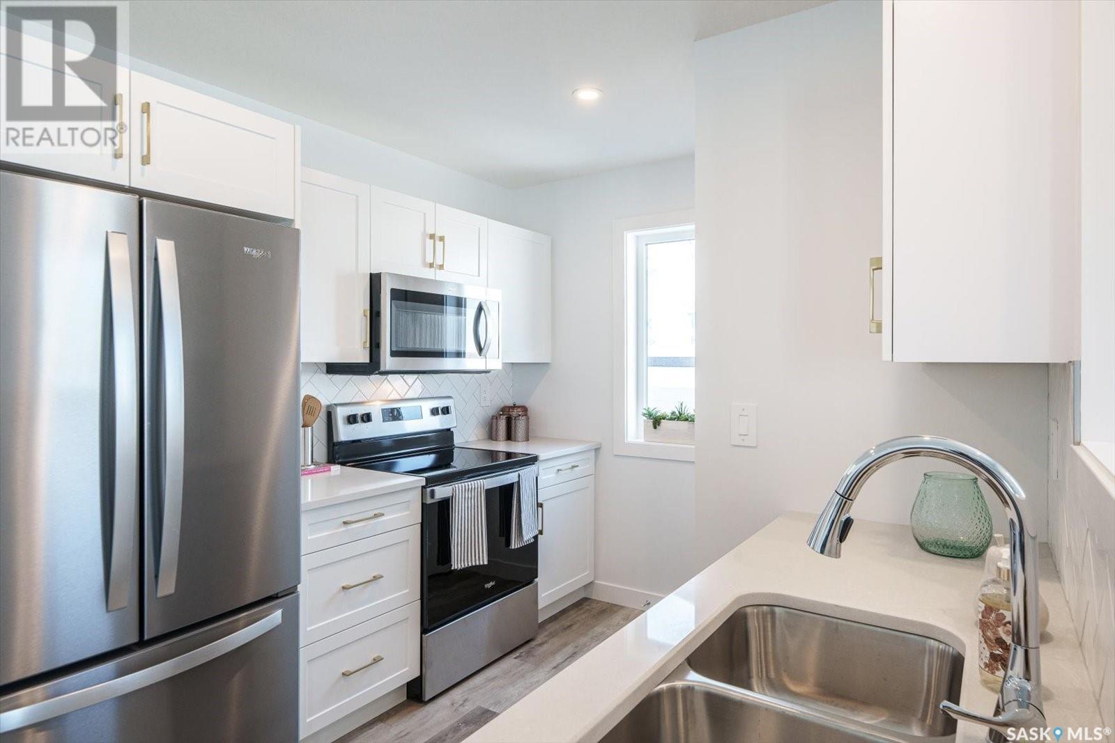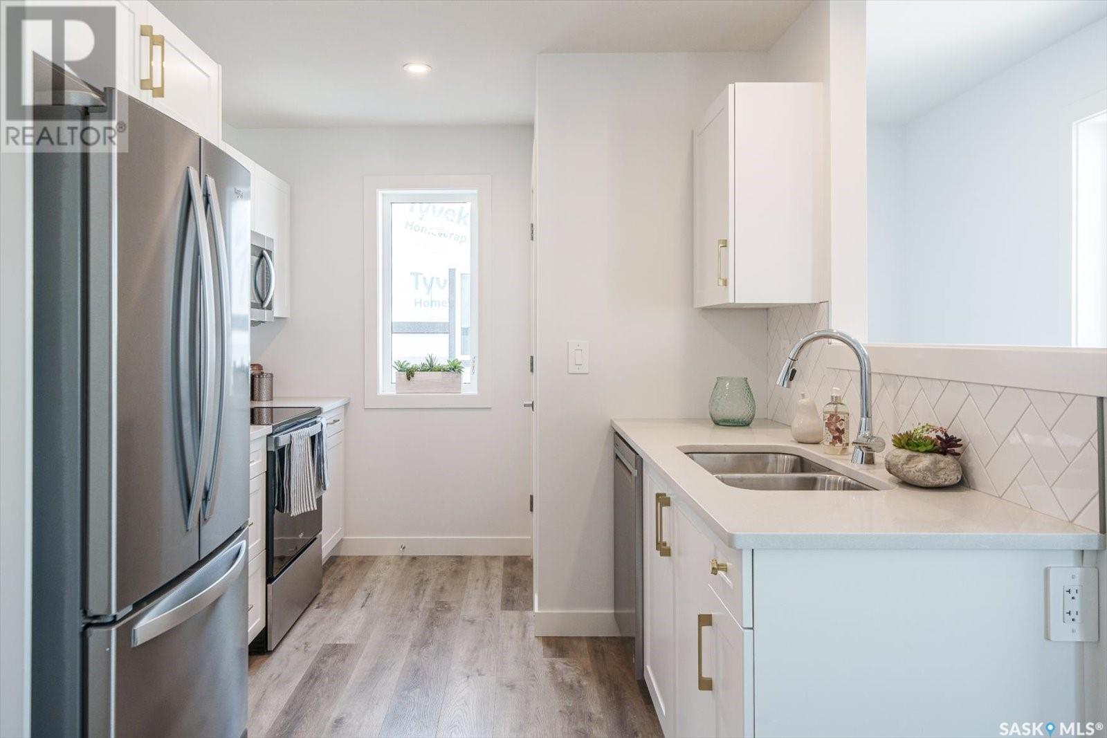 *Inquire today and take advantage of a limited time 3.99% interest rate promotion on a 2-year term! conditions apply, OAC. Contact your realtor or visit a showhome for details. Affordable living opportunity at the brand NEW 'North Ridge Towns Dubois' Project in the growing community of Brighton! The North Ridge Towns Dubois is an exciting new concept with a variety of floorplans available located adjacent to Brighton Core Park offering many possible activities to explore. The 'Victoria' is a top floor 989 sq ft 2 bedroom condo with balcony and single attached garage and sprawling views of Saskatoon. With additional floorplan options available at different price conscious points, it's worth your time to stop in for a tour at this exciting new location. The craftsmanship is truly evident with features including high quality shelving in all closets, an upgraded trim package, vinyl plank flooring, and quartz countertops. This home also includes a heat recovery ventilation system, triple pane windows, high efficient furnace, and a stainless steel appliance package! Visit the showhome located on site (Unit 5) 5-8pm Mon-Thurs, 12-5 pm Sat/Sun OR call/text/email for information. This brand new project may have the perfect home for you. GST/PST included in purchase price with any rebates to builder. Saskatchewan New Home Warranty. Pictures are unit 11, same floorplan as unit 23 (id:22211)