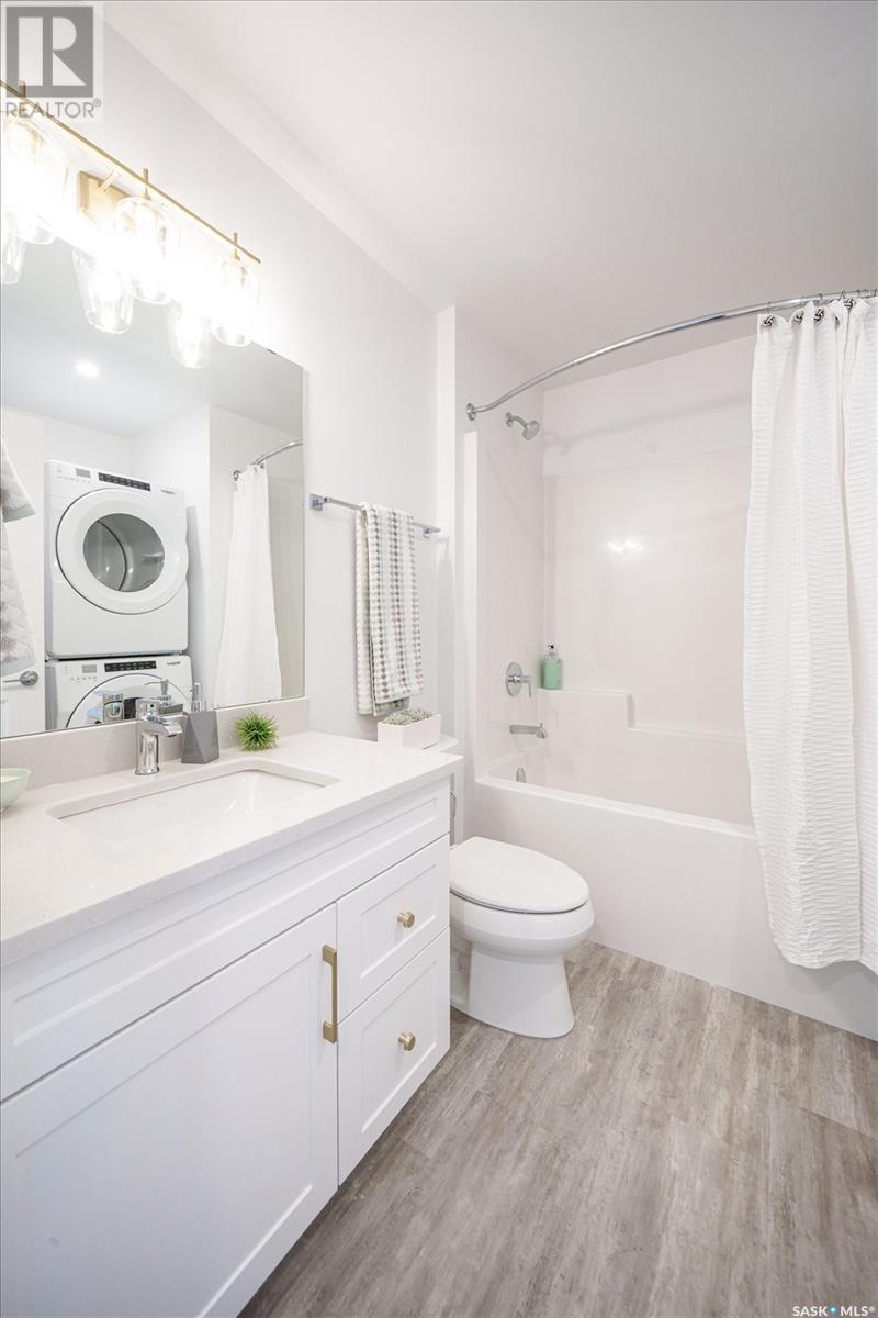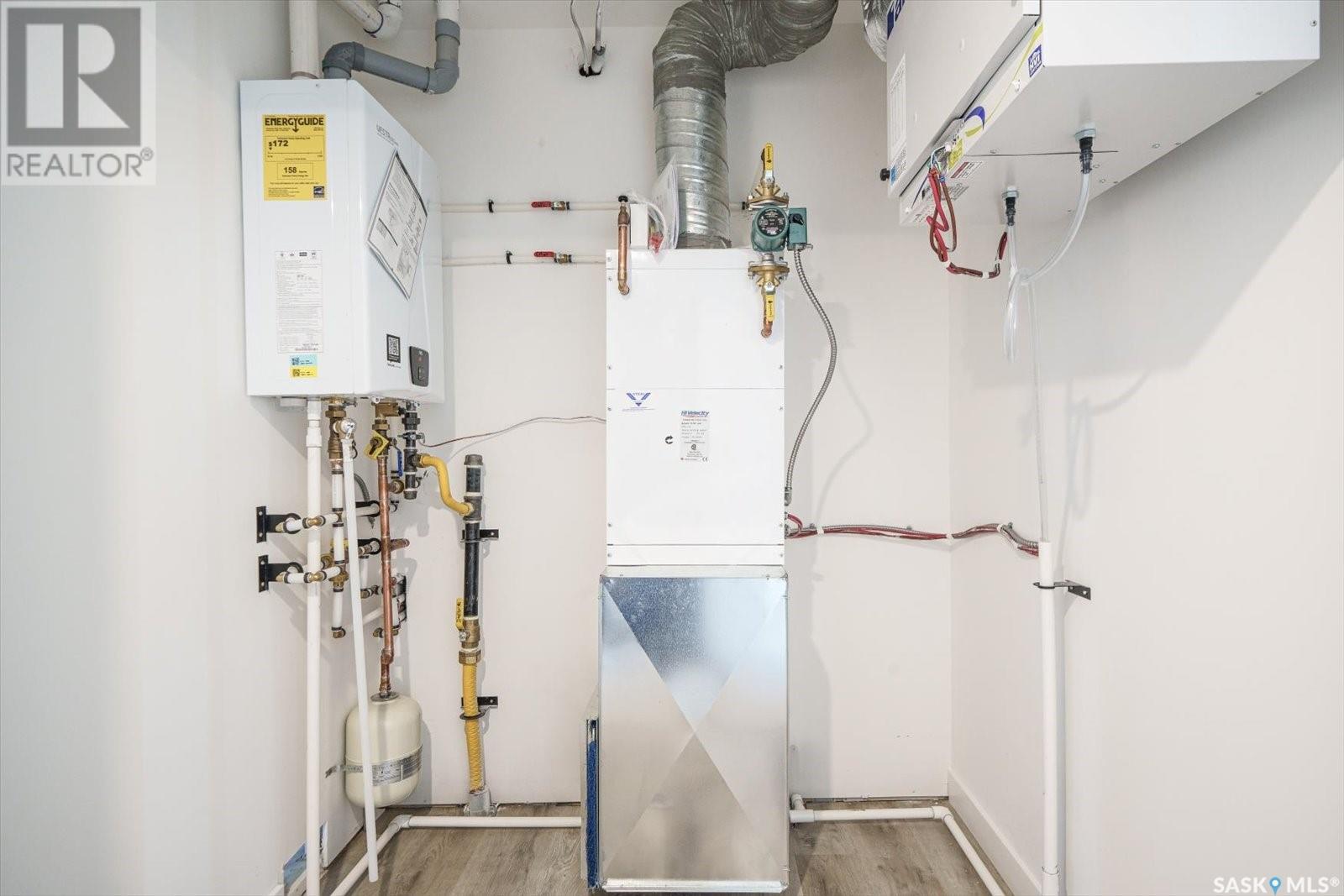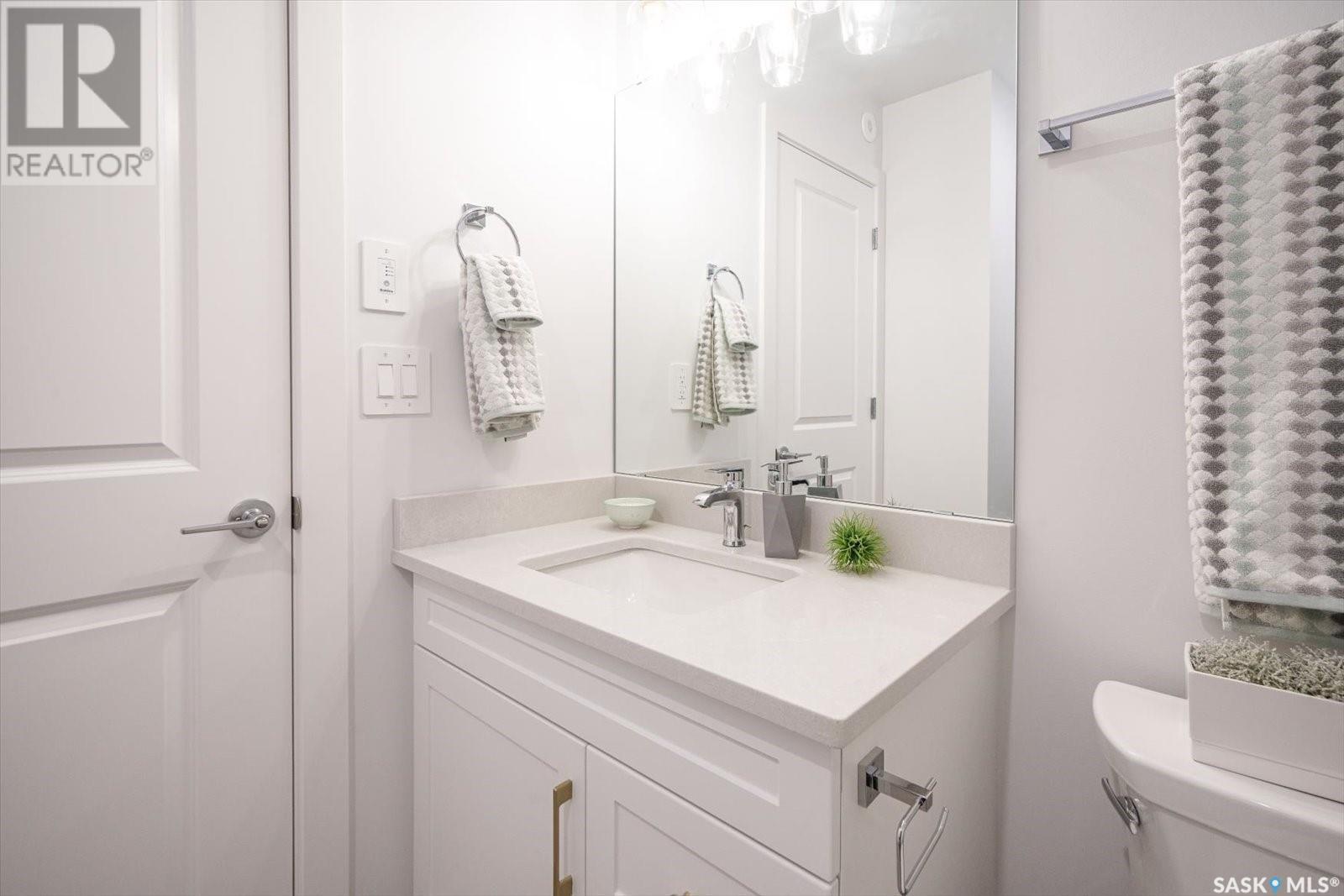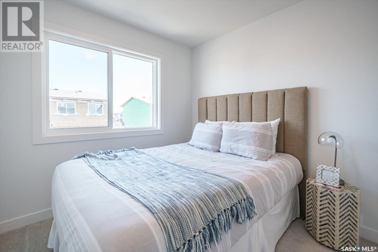 *Inquire today and take advantage of a limited time 3.99% interest rate promotion on a 2-year term! conditions apply, OAC. Contact your realtor or visit a showhome for details. Affordable living opportunity at the brand NEW 'North Ridge Towns Dubois' Project in the growing community of Brighton! The North Ridge Towns Dubois is an exciting new concept with a variety of floorplans available located adjacent to Brighton Core Park offering many possible activities to explore. The 'Victoria' is a top floor 989 sq ft 2 bedroom condo with balcony and single attached garage and sprawling views of Saskatoon. With additional floorplan options available at different price conscious points, it's worth your time to stop in for a tour at this exciting new location. The craftsmanship is truly evident with features including high quality shelving in all closets, an upgraded trim package, vinyl plank flooring, and quartz countertops. This home also includes a heat recovery ventilation system, triple pane windows, high efficient furnace, and a stainless steel appliance package! Visit the showhome located on site (Unit 5) 5-8pm Mon-Thurs, 12-5 pm Sat/Sun OR call/text/email for information. This brand new project may have the perfect home for you. GST/PST included in purchase price with any rebates to builder. Saskatchewan New Home Warranty. Pictures are unit 11, same floorplan as unit 23 (id:22211)