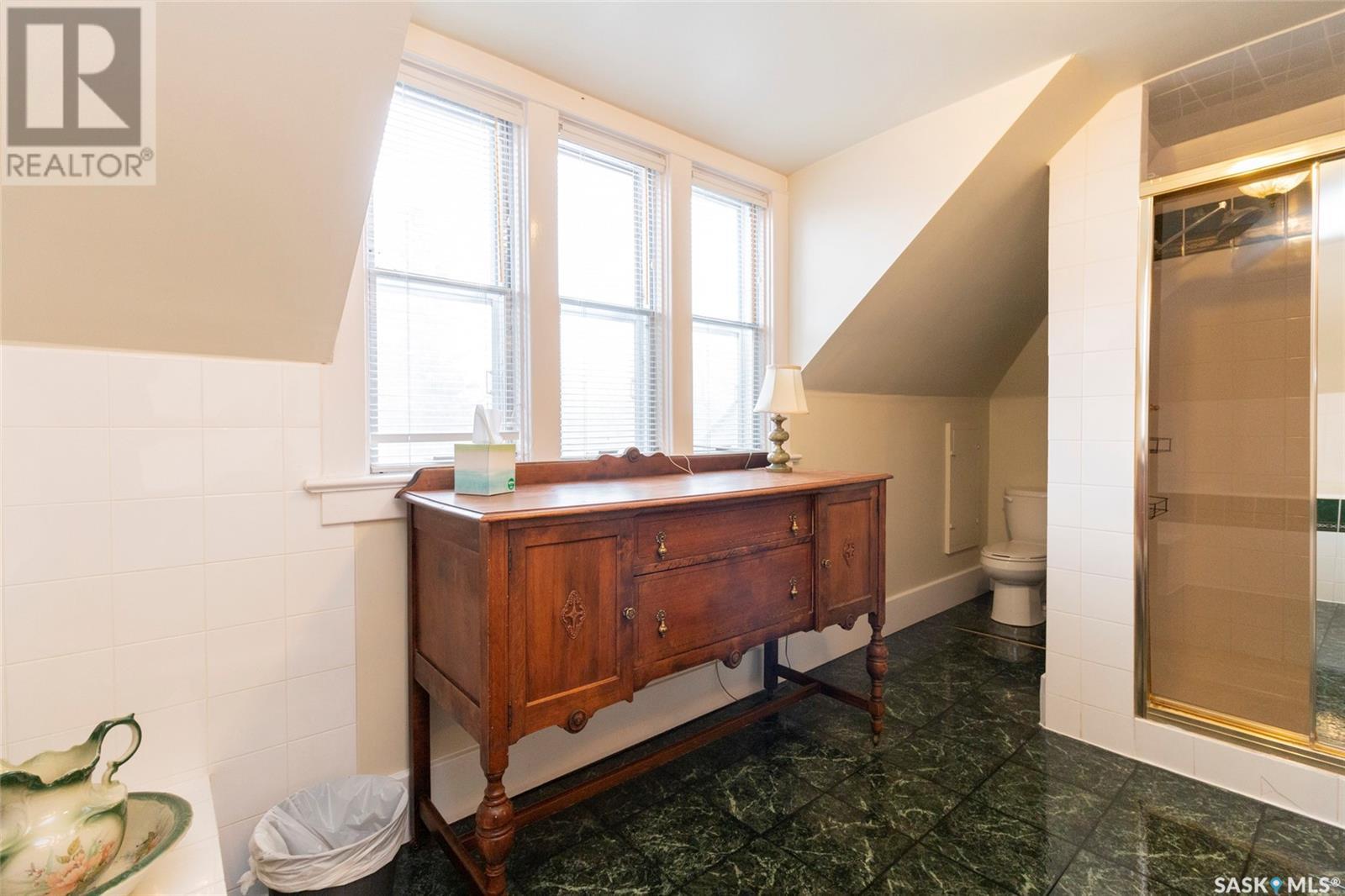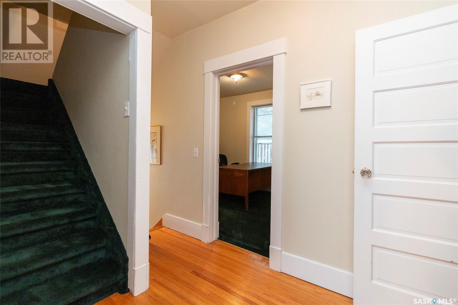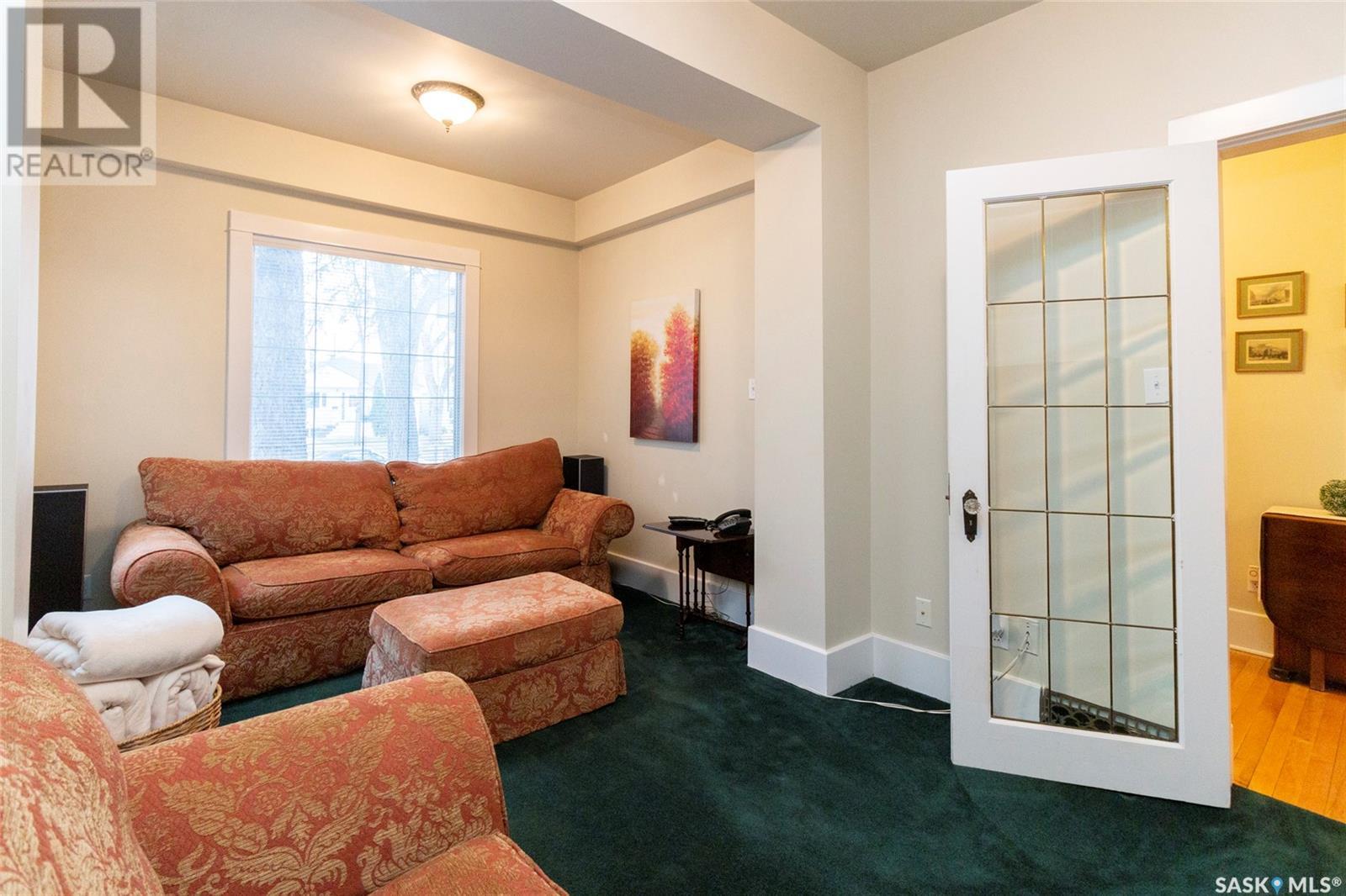 Fantastic Investment Opportunity in the Nutana area!!!!!! Within walking distance to the University of Saskatchewan, Royal University Hospital, Meewasin Trail, Downtown, Broadway District and our Beautiful River Landing Area!!!!! This 5 bedroom home could be used for your kids to attend University and have a few roommates to help offset some of the living costs. And when their schooling is completed, you could recover the equity built up and any potential increases in value in the future. This area is highly sought after and has seen several and future new builds to help increase the area's value. This lot has 50 foot frontage and it's 140 feet deep!!!!! That's 7,000.00 sq.ft. to work with!!!! Registered as 2 equal 25 foot lots!!!!!!!! This Grand 2 1/2 Storey home boasts character, charm and 2,440 sq.ft. above grade to decorate to your own exquisite tastes!!!!! You walk right in to a large porch area that could be utilized for many different facets. Enter the main home along the wide foyer and off to the left is a family room with french doors for your privacy. To the right is a conjoined living room and a very large dining room with french doors to the backyard. it finishes off with a kitchen that has ample cabinetry to suit your needs. Don't forget the half bath for your convenience. Flow up to the second level. There are 3 good sized bedrooms, a den and a 4 piece bathroom. One of the rooms is quite large and is used for a business office. It has a door to the 2nd level balcony. Great for coffee breaks. Up to the 3rd level is an impressive sized master bedroom with a massive 5 piece ensuite bathroom. The basement is not full height but is utilized for a rumpus room, laundry area, shower and a large utility/storage room. Ready to move in and make it your own!!!!!! The location is Amazing!!!!!! (id:22211)