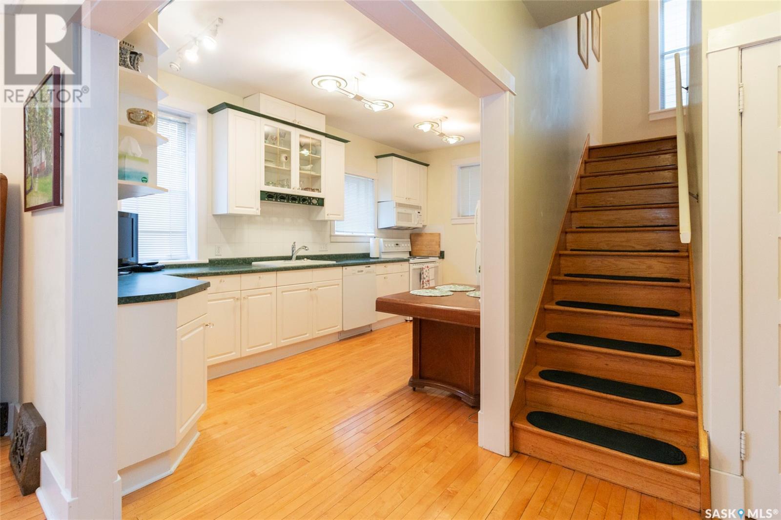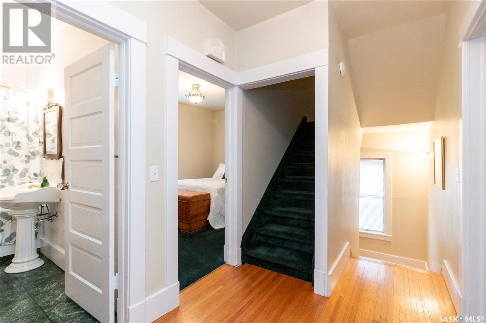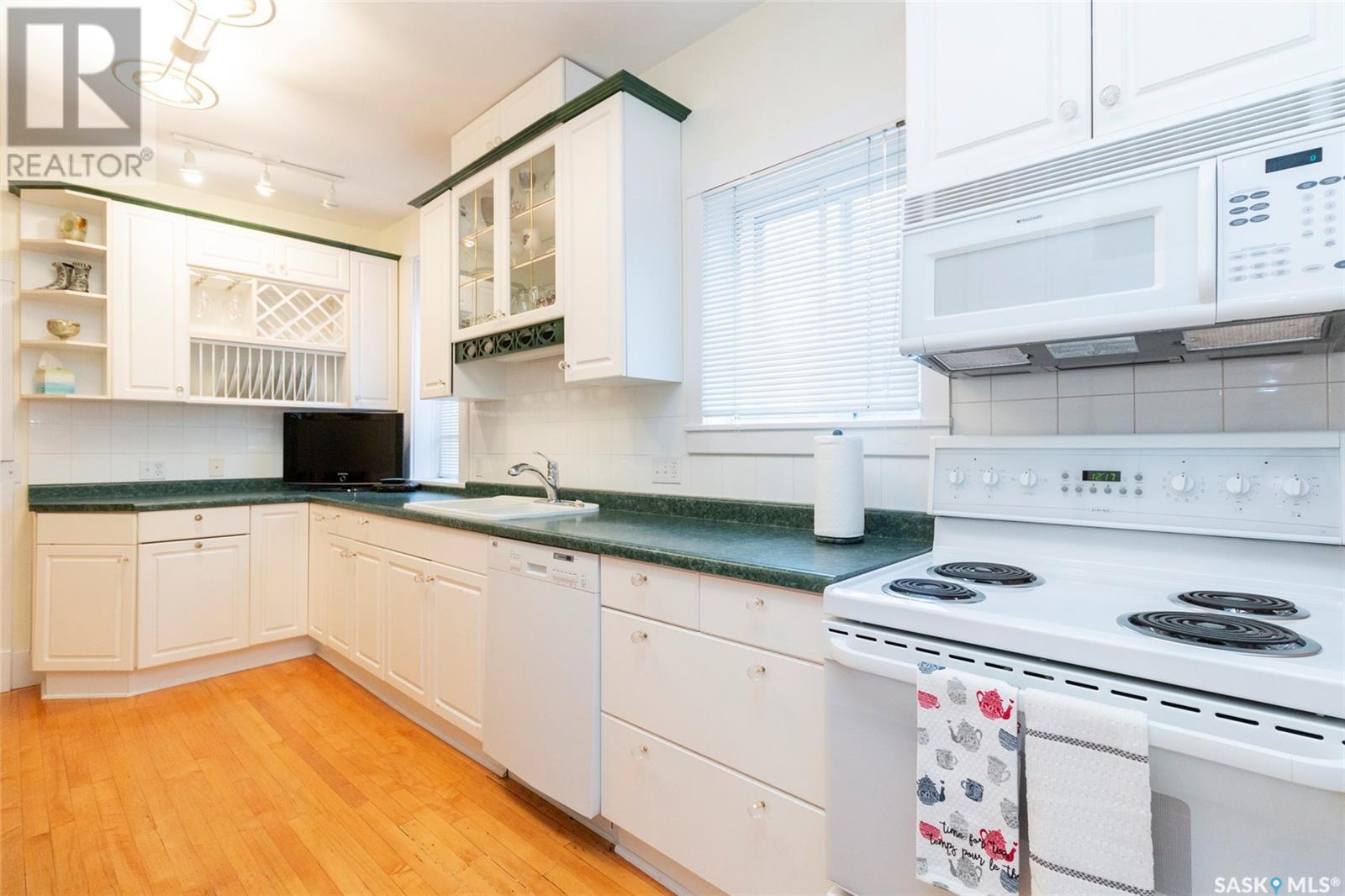 Fantastic Investment Opportunity in the Nutana area!!!!!! Within walking distance to the University of Saskatchewan, Royal University Hospital, Meewasin Trail, Downtown, Broadway District and our Beautiful River Landing Area!!!!! This 5 bedroom home could be used for your kids to attend University and have a few roommates to help offset some of the living costs. And when their schooling is completed, you could recover the equity built up and any potential increases in value in the future. This area is highly sought after and has seen several and future new builds to help increase the area's value. This lot has 50 foot frontage and it's 140 feet deep!!!!! That's 7,000.00 sq.ft. to work with!!!! Registered as 2 equal 25 foot lots!!!!!!!! This Grand 2 1/2 Storey home boasts character, charm and 2,440 sq.ft. above grade to decorate to your own exquisite tastes!!!!! You walk right in to a large porch area that could be utilized for many different facets. Enter the main home along the wide foyer and off to the left is a family room with french doors for your privacy. To the right is a conjoined living room and a very large dining room with french doors to the backyard. it finishes off with a kitchen that has ample cabinetry to suit your needs. Don't forget the half bath for your convenience. Flow up to the second level. There are 3 good sized bedrooms, a den and a 4 piece bathroom. One of the rooms is quite large and is used for a business office. It has a door to the 2nd level balcony. Great for coffee breaks. Up to the 3rd level is an impressive sized master bedroom with a massive 5 piece ensuite bathroom. The basement is not full height but is utilized for a rumpus room, laundry area, shower and a large utility/storage room. Ready to move in and make it your own!!!!!! The location is Amazing!!!!!! (id:22211)