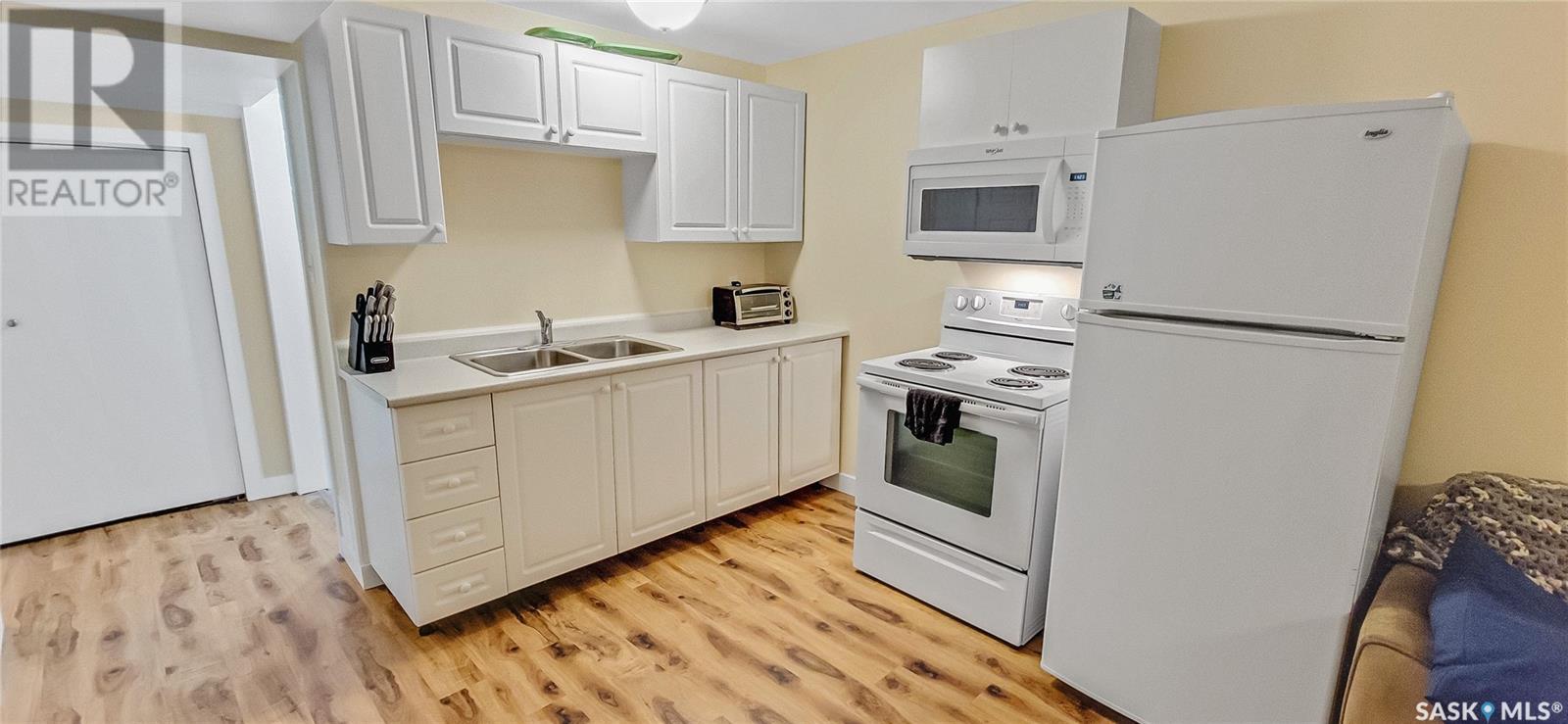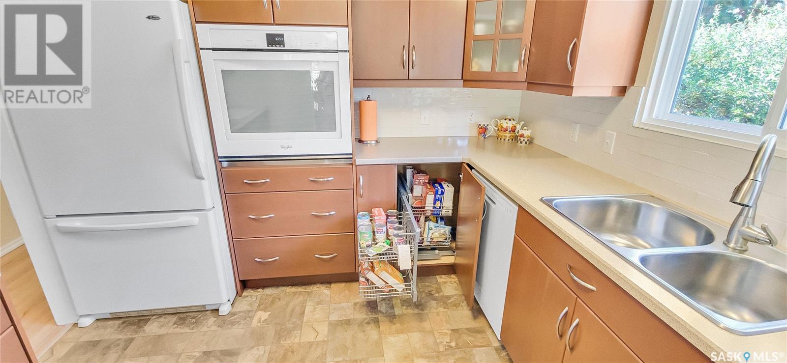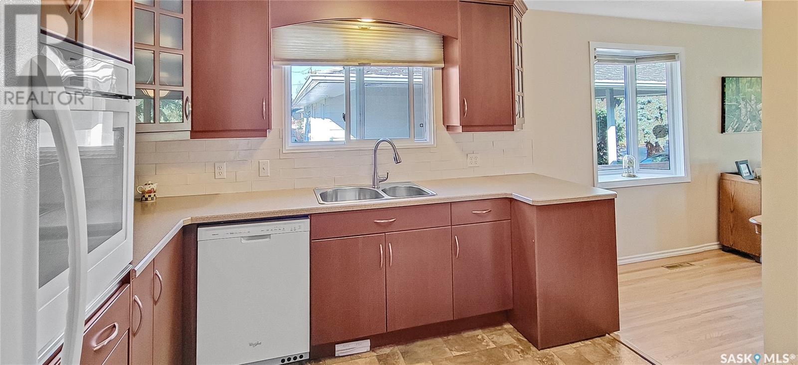Looking for a family home in the heart of the Avalon Neighbourhood in Saskatoon? This might be the home for you and your family. Appreciate the spacious feeling thanks to large windows and open living room and dining area off the front entry. There are still lots of classic features in this home including beautiful hardwood flooring on the main floor. This home has three bedrooms on the main floor and one bedroom in the basement. The basement has been rented out and gives you options on how you want to use the basement. There is a large 2 car detached garage with a smaller one car garage behind it that was converted to a shop or flex work area with a south facing window. Pride in ownership is evident throughout the home with updated kitchen cabinets, bathroom fixtures, interior finishes in the basement, windows, and mechanical equipment. This home has lots of space and value and is waiting to welcome a new family to make many memories. The third bedroom on the main floor has been converted to a main floor laundry. The stacking washer/dryer will be removed by the Seller and the connections will be left at the wall so you can use this room as a bedroom or laundry flex room in the future. There is lots of space in the yard including a large, covered area to enjoy those hot summer days, plus a large patio area and efficiently set up back yard. This home is listed with a presentation of offers for Monday October 2 at 2 p.m. Don’t miss out on your chance to purchase this beautiful home in Saskatoon. (id:22211)