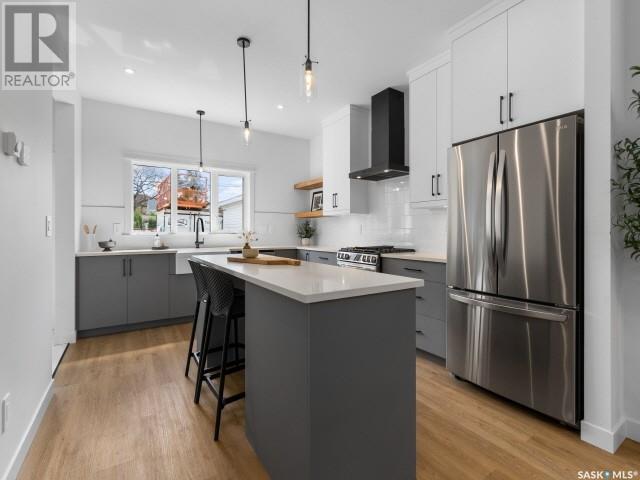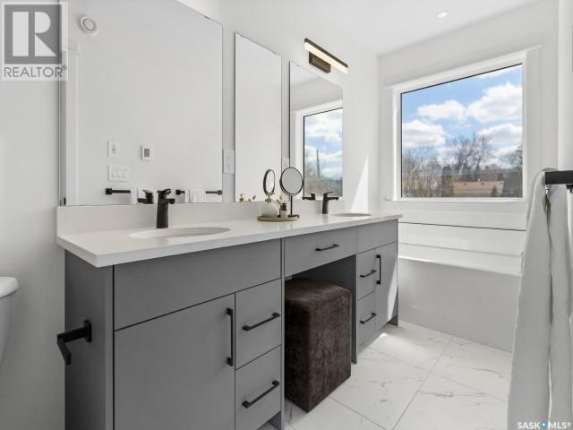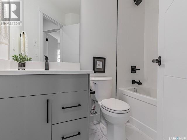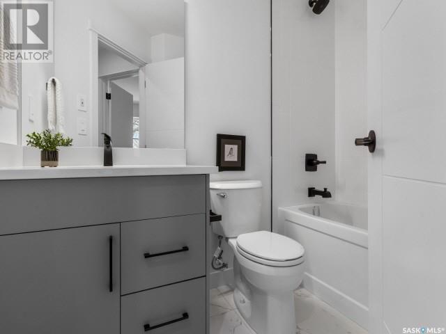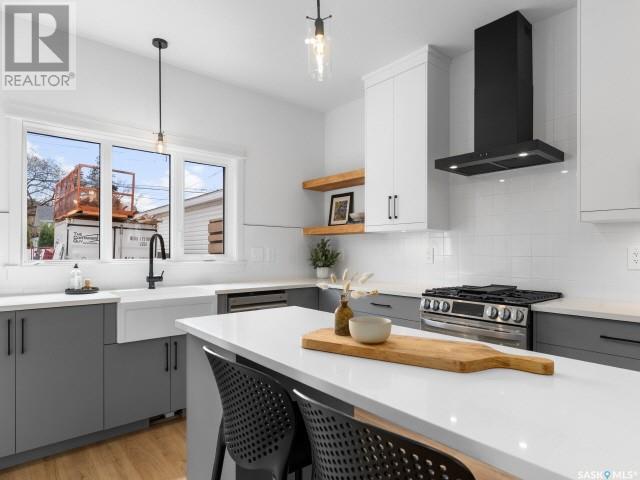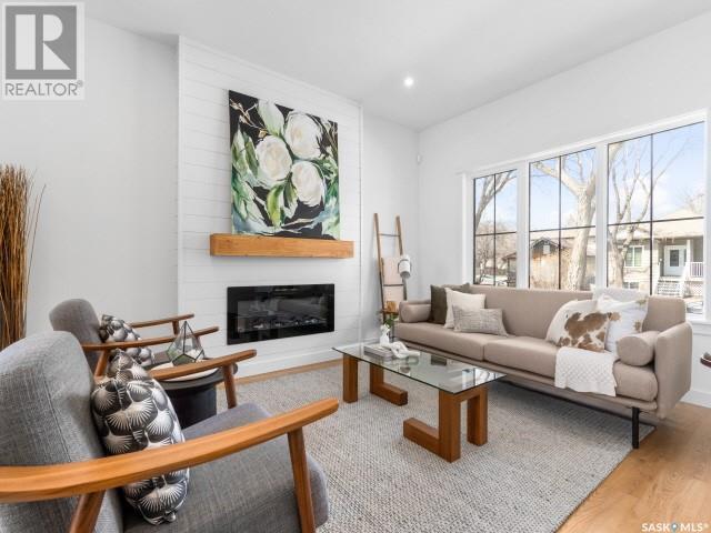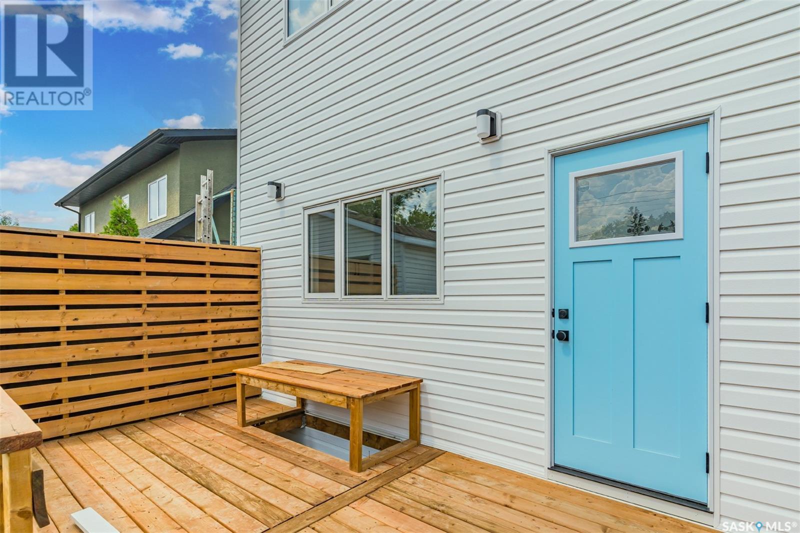 Welcome to 906 6th Street East, located in the desirable Haultain neighborhood. The "JoMax", built by Aesthetic Construction Inc. is a stunning 3 bedroom/2.5 bathroom house with luxurious upgrades throughout. The open concept main floor features luxury vinyl plank flooring throughout. The chef's kitchen boasts quartz countertops, upgraded appliances, and a large island, perfect for entertaining. The dining room and living room are just off the kitchen, making it an ideal space for hosting gatherings. You'll also find a large entrance foyer with a spacious storage closet on the main floor. At the back of the house, you'll find a mudroom and 1/2 bath. Upstairs, the primary bedroom is spacious with a walk-in closet and a Spa-like 5-piece ensuite. Additionally, there is a large laundry room, two more bedrooms, and a 3-piece bathroom on this level. The basement has a separate entry for future 2-bedroom legal suite potential. The exterior features a fully landscaped front yard with a driveway, a deck in the south facing back yard. PST and GST included in purchase price with any applicable rebates going back to builder. Call for more information or to schedule a showing! (id:22211)