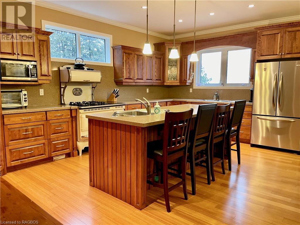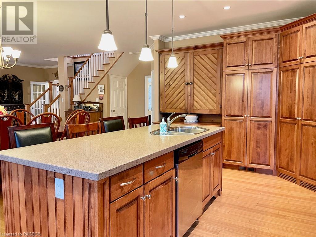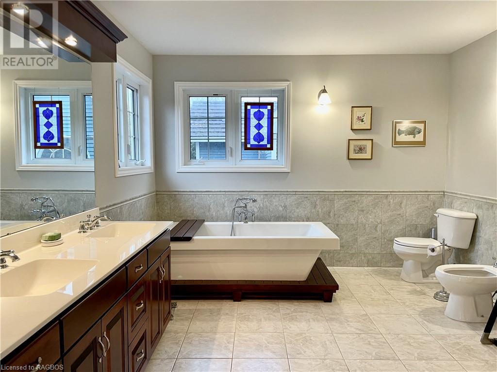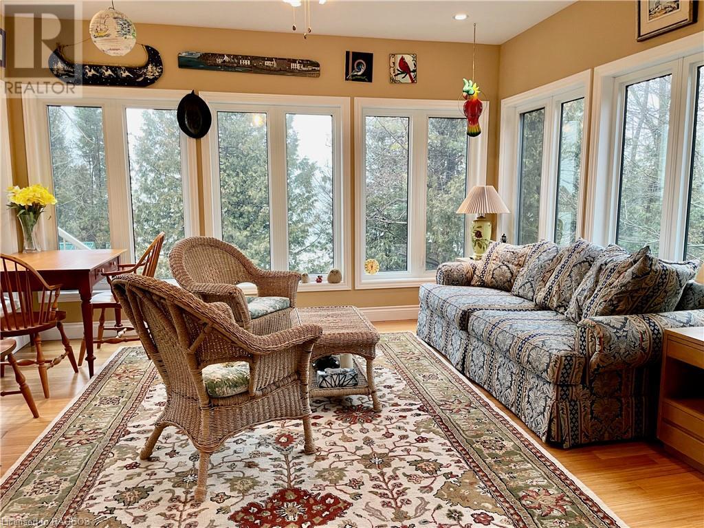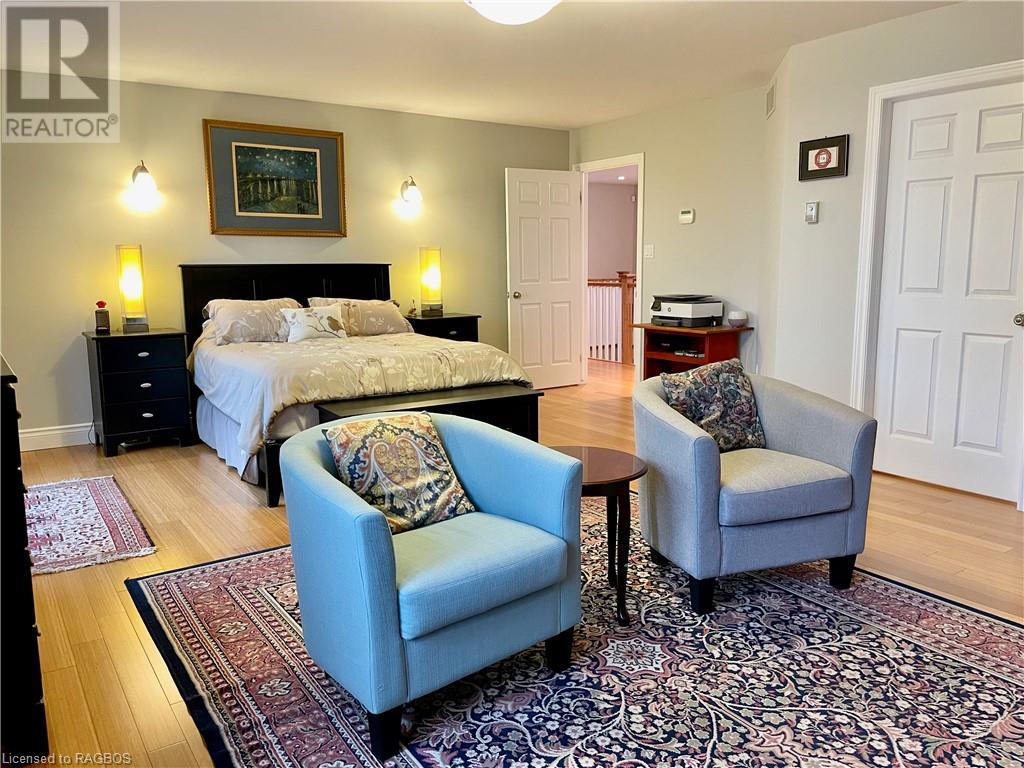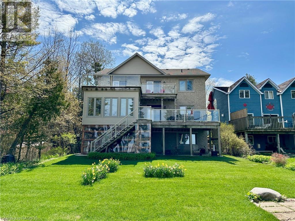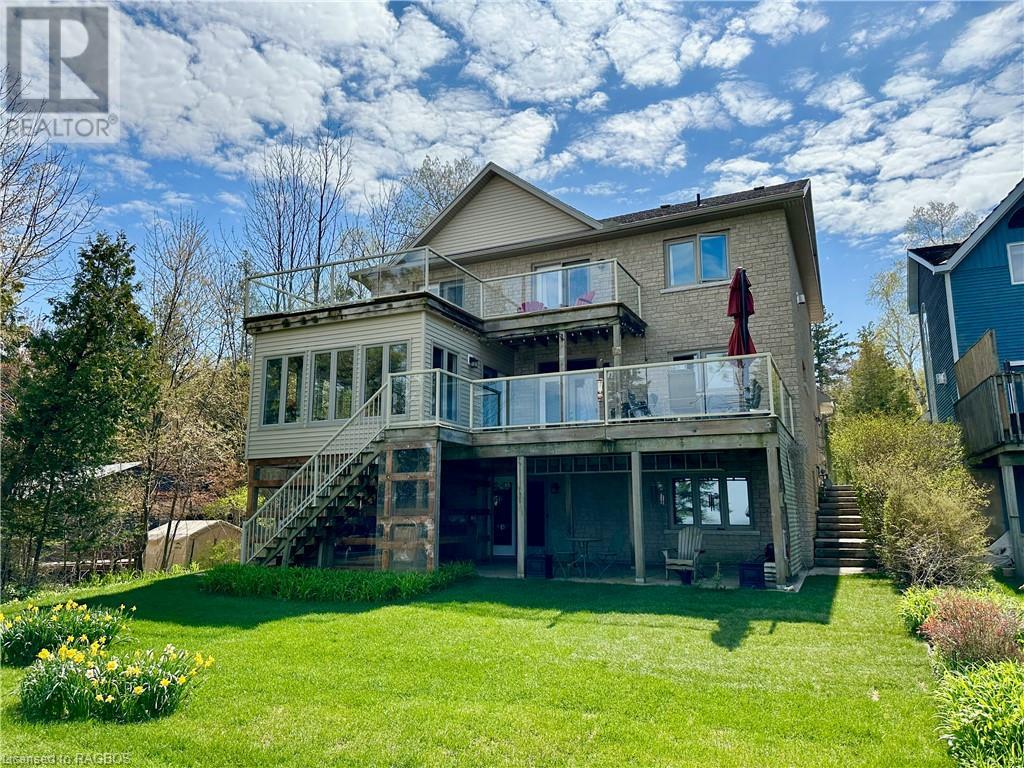 If living along the shores of Lake Huron has been your dream, wait no longer! This gorgeous 'Freeburn' built home sits on a an extra deep lot which has a full backyard and green space, a cozy bunkie and plenty of outdoor sitting areas right along the water's edge. You will have a front row seat to some of the most spectacular sunsets in the world. This two story home with a full walk out basement has a large deck off the primary bedroom on the top floor, as well as a second deck off the main living area, all with beautiful water views. For those cooler nights you can sit inside the three season sunroom and still enjoy the sounds of the waves. The main floor boasts a large kitchen with plenty of extra storage, a dining area large enough to easily seat 10 or more, and a Great Room with a gas fireplace, as well as a 2 piece bath. Upstairs you will find an oversized primary bedroom which also has a gas fireplace and enough space for a sitting area and access to the large 6 piece ensuite with a freestanding tub and separate shower. The second room upstairs is a bonus bedroom or it could make the perfect office or den, making the entire upstairs your own personal retreat. For family or guests you have another 2 nice size bedrooms on the lower level which also has a family room with a third gas fireplace, a full bathroom and walkouts directly to the waterfront. This home has hardwood throughout the main living areas and bedrooms. Downstairs, you can enjoy carpet for that extra cozy feeling. There is loads of parking in the large double wide interlocking brick driveway along with an attached garage. This home has everything you would want for easy living and only an 8 minute bike ride to downtown or less than a 30 min. walk. Don't miss this exciting opportunity to live in Southampton along the water's edge. Southampton is known for its marine heritage and is a summer paradise with its boutique shopping and restaurants and expansive beaches. Be sure to check out the 3D tour. (id:22211)