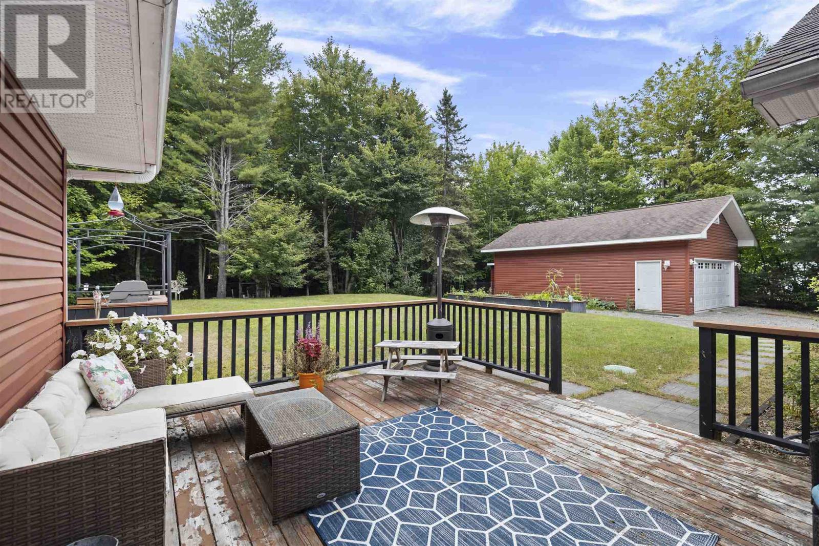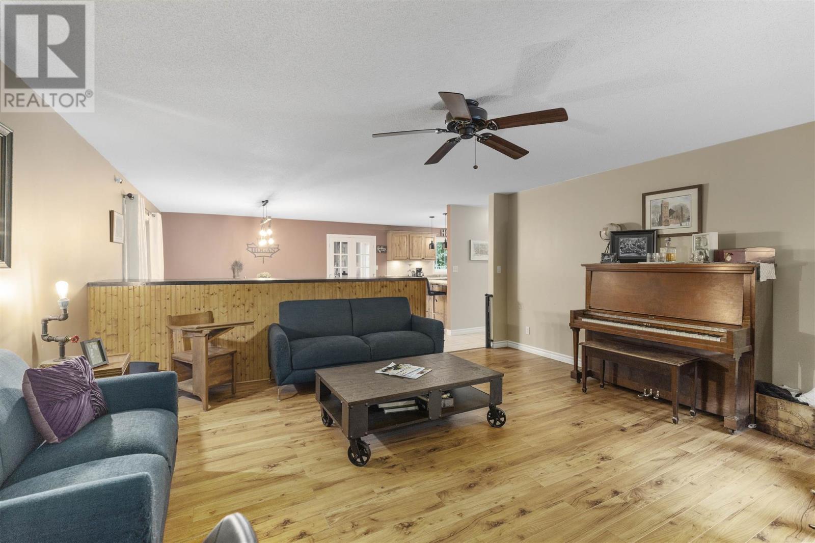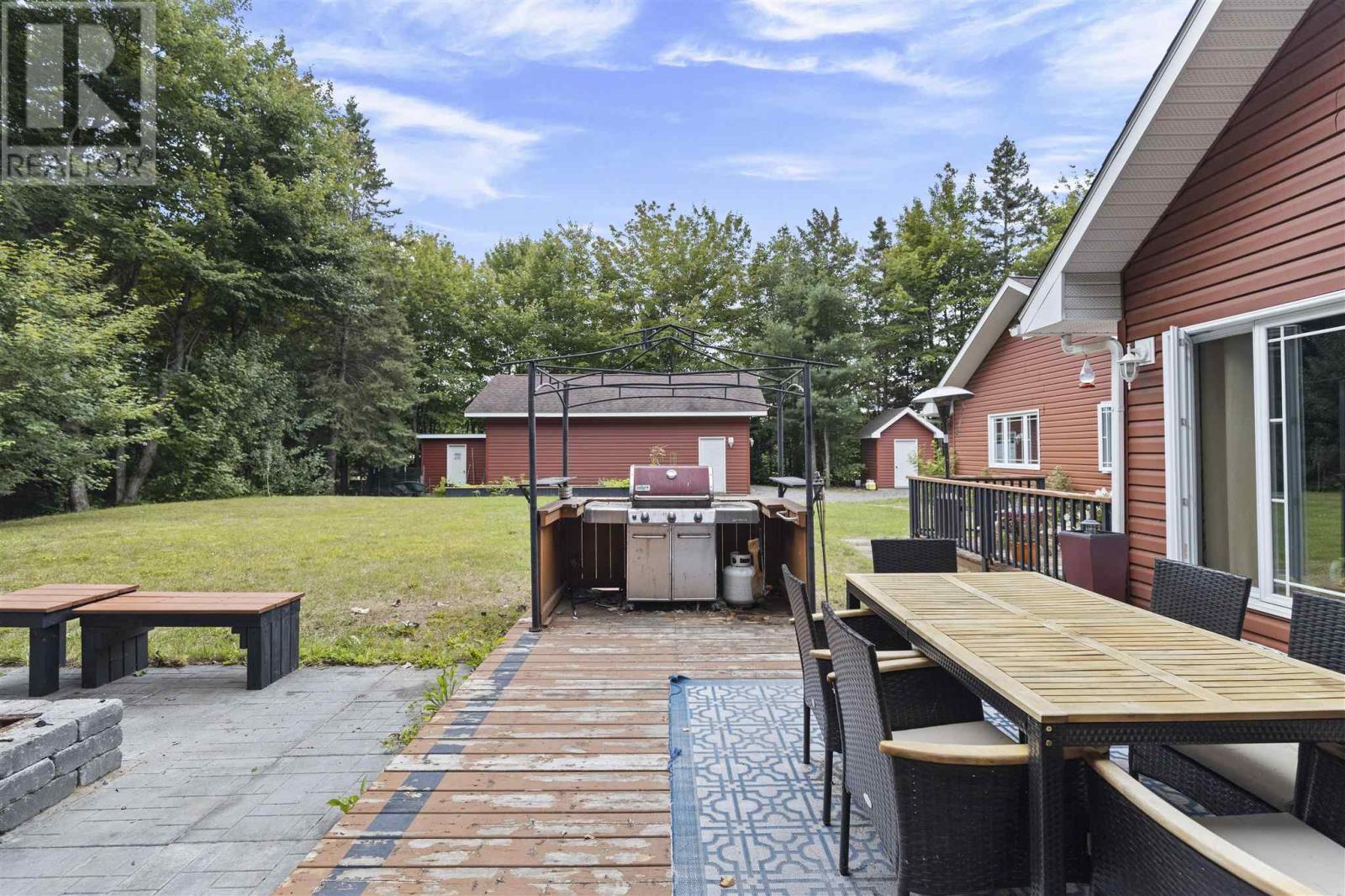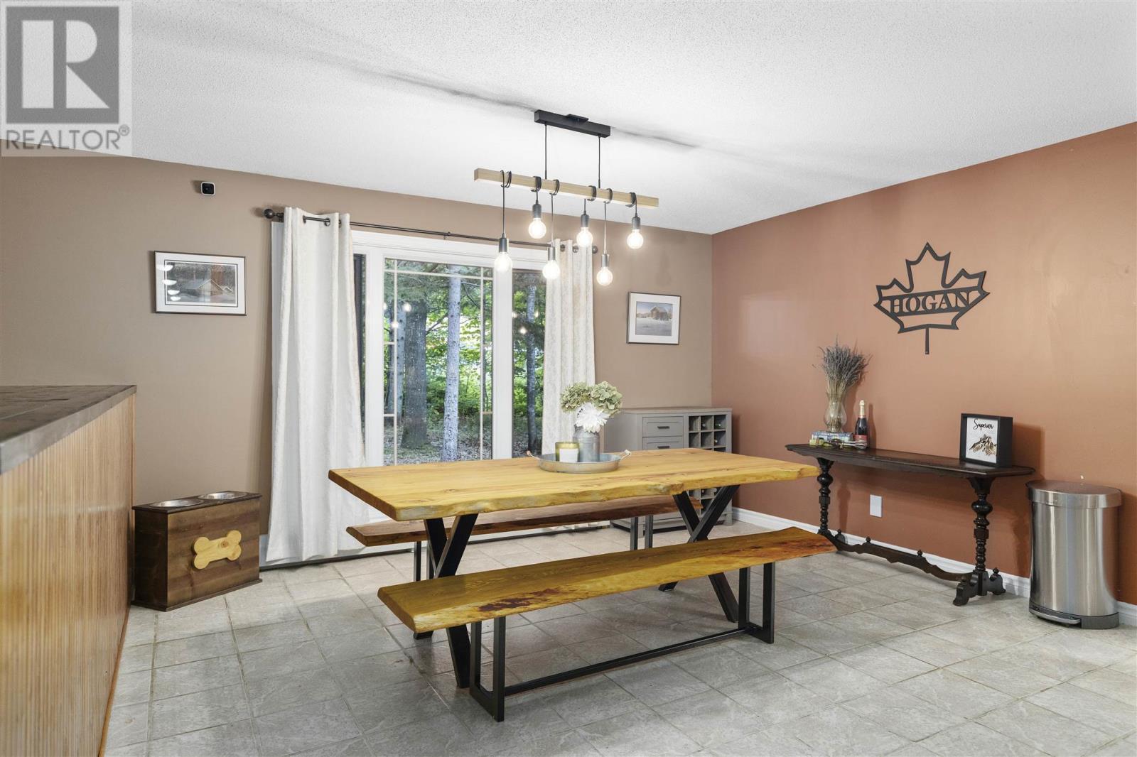 Tucked back perfectly on 5 acres of beautiful, mature hardwoods, this 2300 sqft ranch bungalow offers the peace and privacy you’ve been looking for! As you drive down the curved lit driveway you are welcomed by the cozy front porch which leads you in to the bright foyer with double closets. Down the hall you will find an expansive open concept living/dining and kitchen area. The living room is anchored by a large decorative fireplace with electric insert, oversized dining room with plenty of room for the family, eat-in kitchen with island and breakfast bar, walk-in pantry and half bathroom for guests. Through the french doors of the main living area is a large family/rec room space with beautiful windows and patio doors to rear deck/yard. The other end of the home offers 3 generous size bedrooms, 2 full bathrooms and laundry/utility room. Primary bedroom is large enough to easily fit king-size furniture and features a 3-piece ensuite and walk-in closet. The additional two bedrooms both have double closets for additional storage space. The laundry/utility room can be found at the end of the hall with exterior access to driveway; convenient for personal use/groceries. Efficient, natural-gas fuelled, hot water radiant heat keeps the home warm in the winter months. Home is complete with multiple outbuildings - detached double car garage, storage shed and chicken coop/dog run. This property is absolutely stunning, offers all the amenities of city living but with the peace and privacy of country living. Don’t miss out - call today to view! (id:22211)