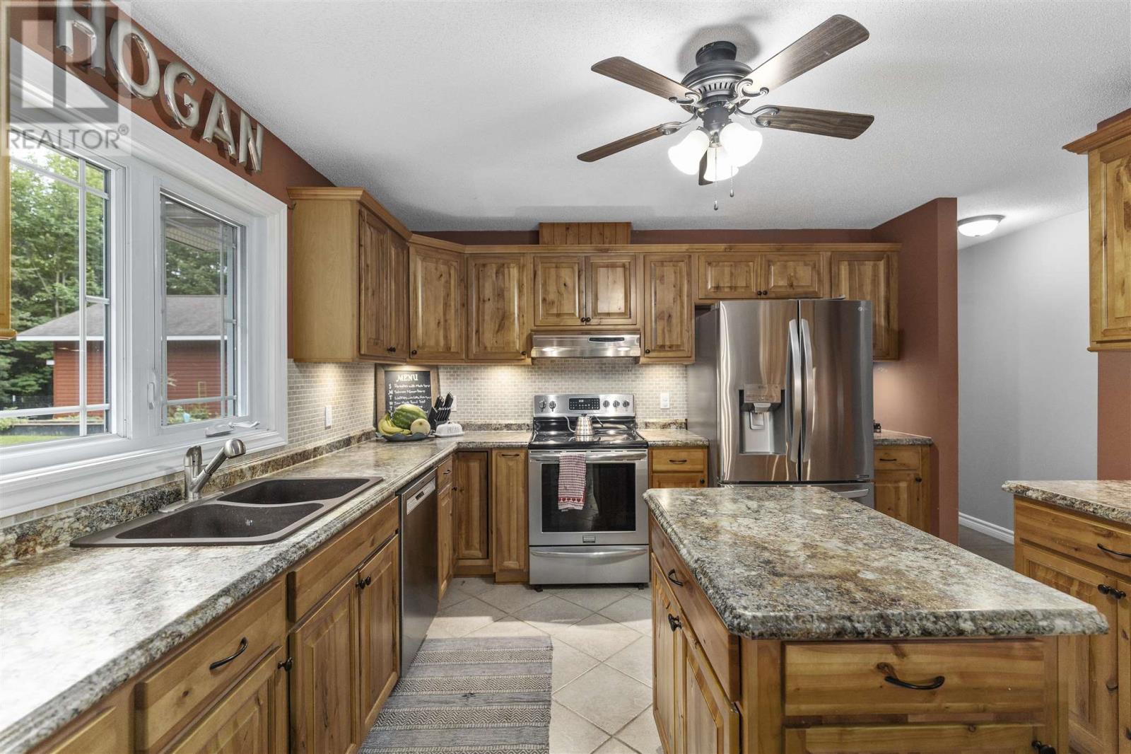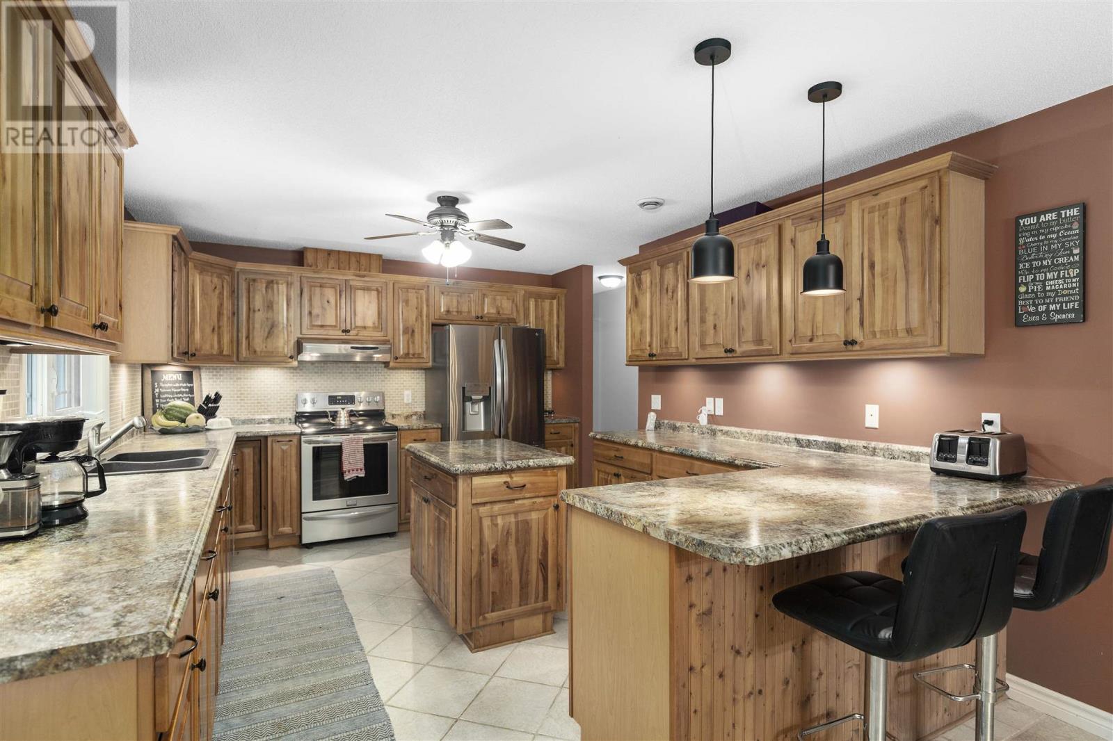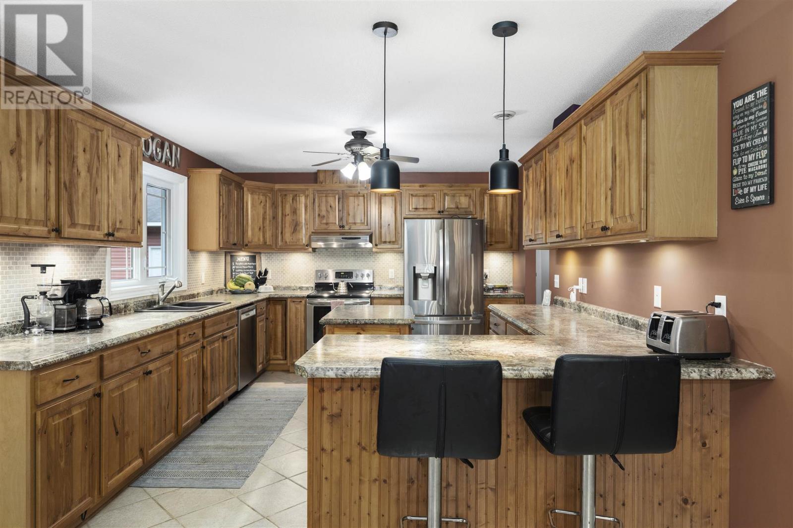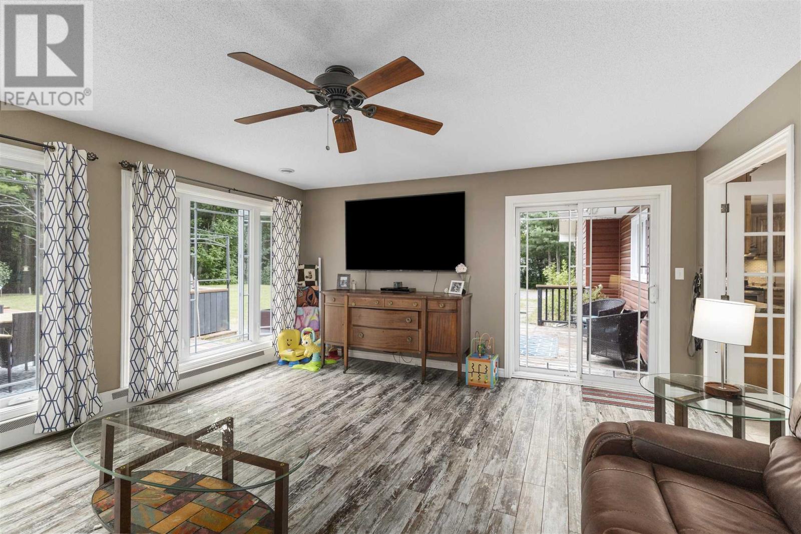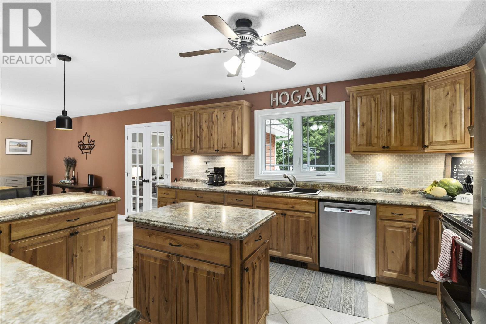 Tucked back perfectly on 5 acres of beautiful, mature hardwoods, this 2300 sqft ranch bungalow offers the peace and privacy you’ve been looking for! As you drive down the curved lit driveway you are welcomed by the cozy front porch which leads you in to the bright foyer with double closets. Down the hall you will find an expansive open concept living/dining and kitchen area. The living room is anchored by a large decorative fireplace with electric insert, oversized dining room with plenty of room for the family, eat-in kitchen with island and breakfast bar, walk-in pantry and half bathroom for guests. Through the french doors of the main living area is a large family/rec room space with beautiful windows and patio doors to rear deck/yard. The other end of the home offers 3 generous size bedrooms, 2 full bathrooms and laundry/utility room. Primary bedroom is large enough to easily fit king-size furniture and features a 3-piece ensuite and walk-in closet. The additional two bedrooms both have double closets for additional storage space. The laundry/utility room can be found at the end of the hall with exterior access to driveway; convenient for personal use/groceries. Efficient, natural-gas fuelled, hot water radiant heat keeps the home warm in the winter months. Home is complete with multiple outbuildings - detached double car garage, storage shed and chicken coop/dog run. This property is absolutely stunning, offers all the amenities of city living but with the peace and privacy of country living. Don’t miss out - call today to view! (id:22211)