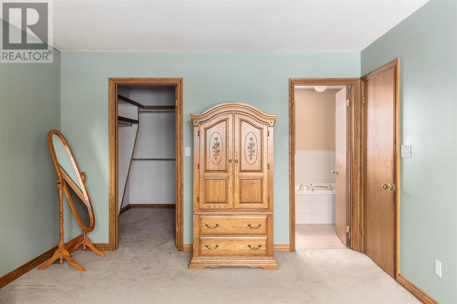 Discover the potential in this 3 bedroom sidesplit located in a desirable west-end neighbourhood! The main level offers a spacious eat-in kitchen, a bright living room, two bedrooms and a sizable 4-piece bathroom. Upstairs, an addition presents a roomy primary bedroom with walk-in closet and a 4-piece ensuite featuring a soaker tub and walk-in shower. The basement features a summer kitchen, laundry room, workshop, recroom with wood fireplace, 2-piece bathroom and plenty of storage space. Efficient gas forced air heat and central air, newer shingles, and attached single garage with secondary garage door for access to the lovely backyard. Welcome home! (id:22211)