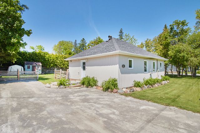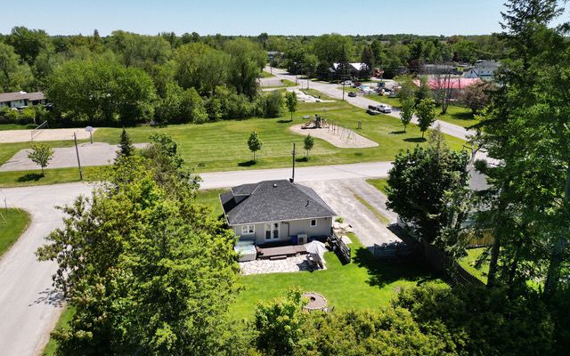 This charming property located only a 2 minute walk from Lake Scugog boasts a rare double lot and cozy living space. This 3 bedroom 1 bathroom home is bright and airy with newer updates. Perfectly situated across from the park for the kids to enjoy. Live and play in this fun, family oriented community of Caesarea! Enjoy the nearby historic waterfront town of Port Perry which provide shopping, trails, parks and hospital. Great commutable distance to HWY 407. Newer sliding patio doors to deck and flagstone patio. Huge back yard, with firepit, and lots of privacy. New armor stone landscaping and split rail fencing. Custom made kitchen island with matching stools & butcher block counter. Easy care ceramic tile flooring in kitchen and entrance. Main floor front loading washer and dryer. Easy maintenance laminate flooring in living, dining and main floor bedrooms. Just move in and enjoy this sweet home.Heat is primarily from gas fireplace, electric baseboards are for supplementary heat. $110/month approx for gas heat. Hydro $130/ month approx. A/C is split wall unit. Hookup for hot tub 240v. New SIM water filtration system.