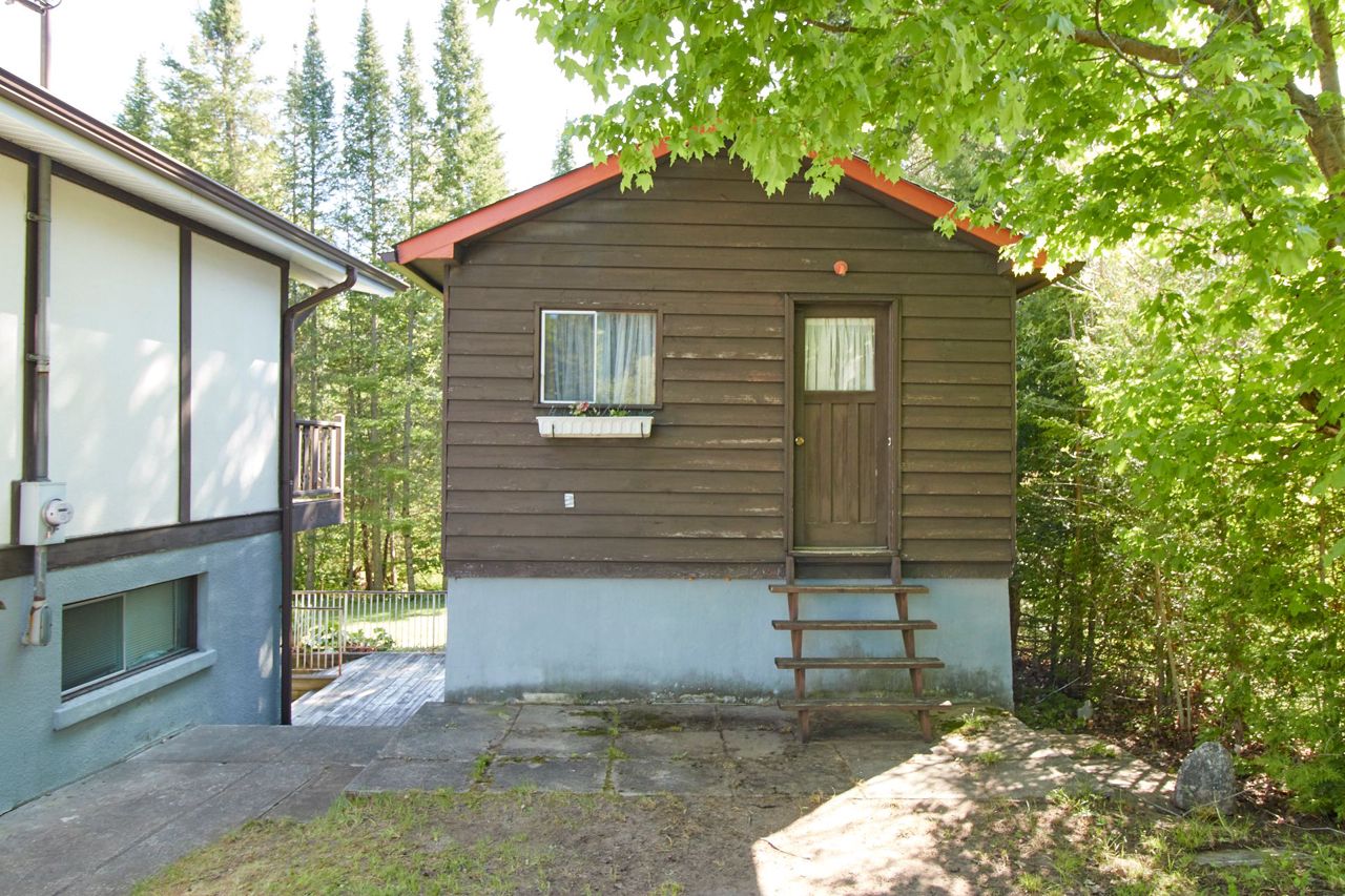Chalet style 3 bedroom home on a pretty lot backing onto forest. Extra Bunkie for your guests. New roof 2021 with aluminum soffits. Newer drilled well.Bunkie on Property 4.38 X 2.95, lower level has storage area. Status Certificate available upon request.
