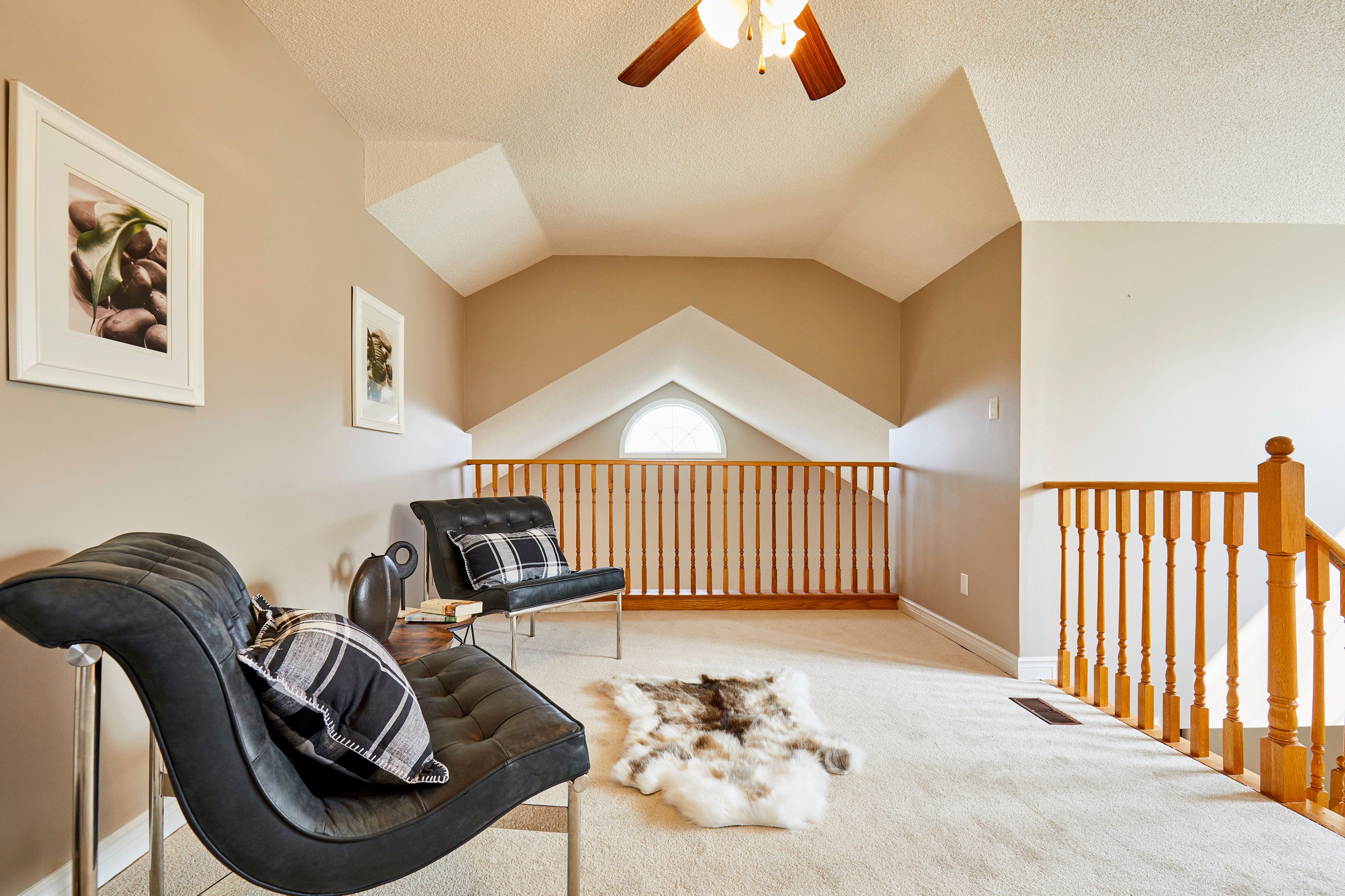 PRICE REDUCTION Located in the Highly Sought-after Adult Lifestyle Community of Canterbury Common in picturesque Port Perry, this meticulously maintained 2-bedroom Bungaloft has Lake Scugog vista views from the Deck, Dining and Living Rooms. A light-filled home with approx. $95k upgrades (see list), including 2024 updated primary ensuite, patio doors, and loft carpet. Over 2000 sq. ft of gracious living space, including a large loft/family room & powder room overlooking the cathedral ceilinged living/dining space. Extra-large kitchen/breakfast area with Cambria quartz countertops & walk-out to deck. Main floor laundry hook-up. Spacious recreation room separate from a very large laundry/craft and workshop/storage area. W/O to gardens & just a short stroll out back on a community walkway to the recently renovated Community Clubhouse (tours available by L/A) and heated pool. Easy access to a nature trail around Lake Scugog. Within walking distance to Port Perry's quaint Queen Street, where you'll enjoy boutique shopping, quality restaurants and the scenic beauty of Lake Scugog.** EXTRAS** In-Ground Sprinkler System, Newer shingles, furnace/AC.