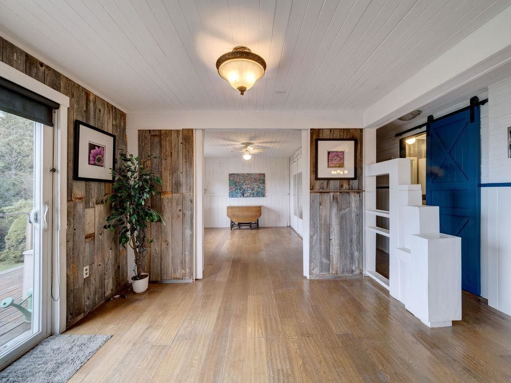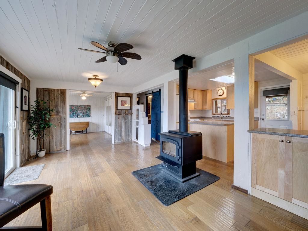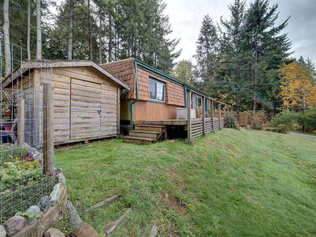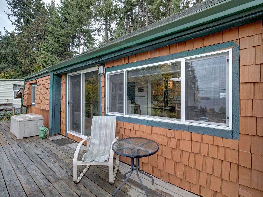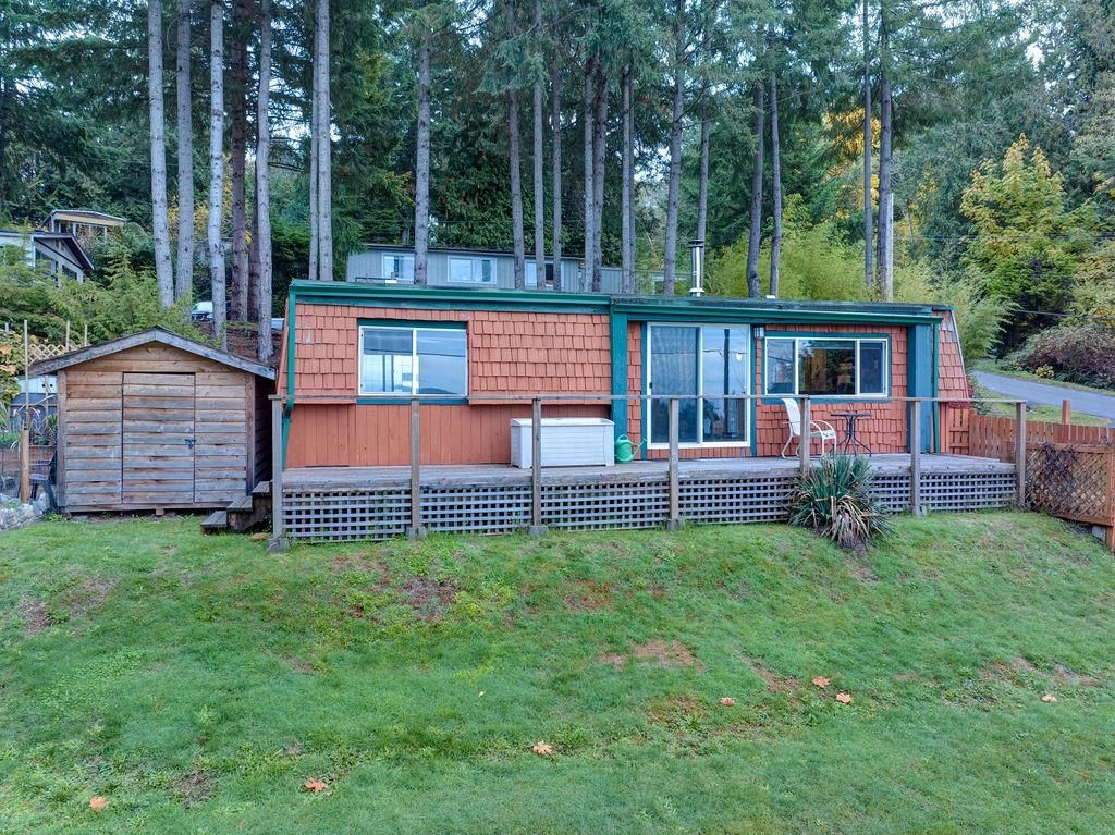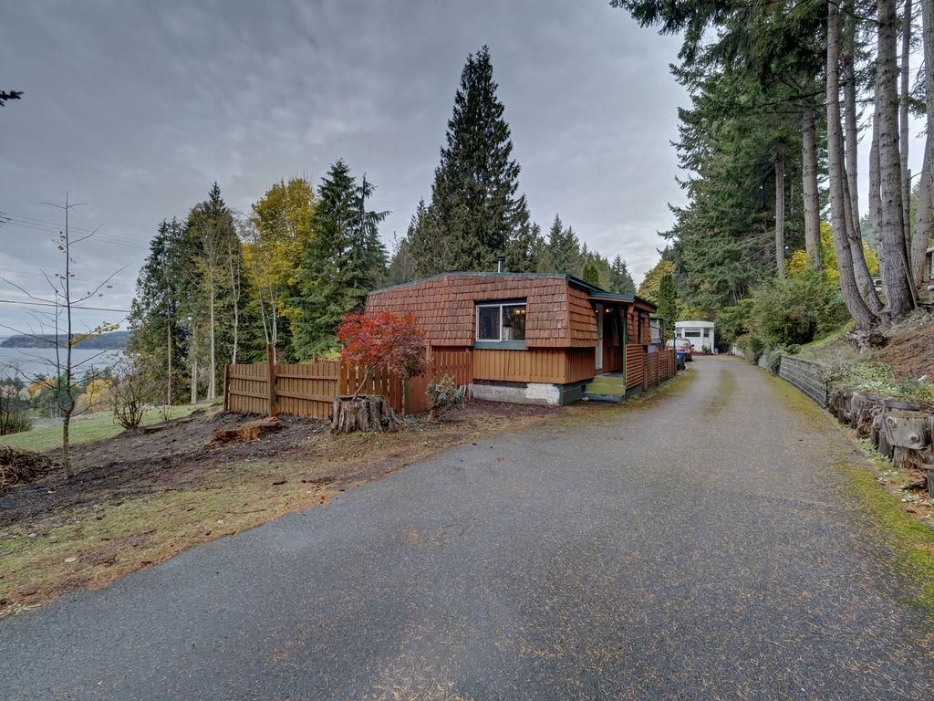 Imagine owning this Sunshine Coast cabin 55+ home with big ocean view and central to everything Sechelt offers. Beautifully renovated and move-in ready with all new windows, cozy wood stove and a big front deck to enjoy the outdoors and the view. The 2 bedroom structure has been reinforced and updated from the original double wide mobile with solid wood post and beams inside, concrete block foundation around the exterior and a new roof in 2013. This has the feel of a standalone cottage with open floorplan, skylight, and quality finishings throughout. With a generous-sized storage shed outside as a bonus, lots of windows and pad rental of $650/month, this is great value for a beautiful Sechelt home to make yours for many years to come. Call today to view this rare opportunity in person.