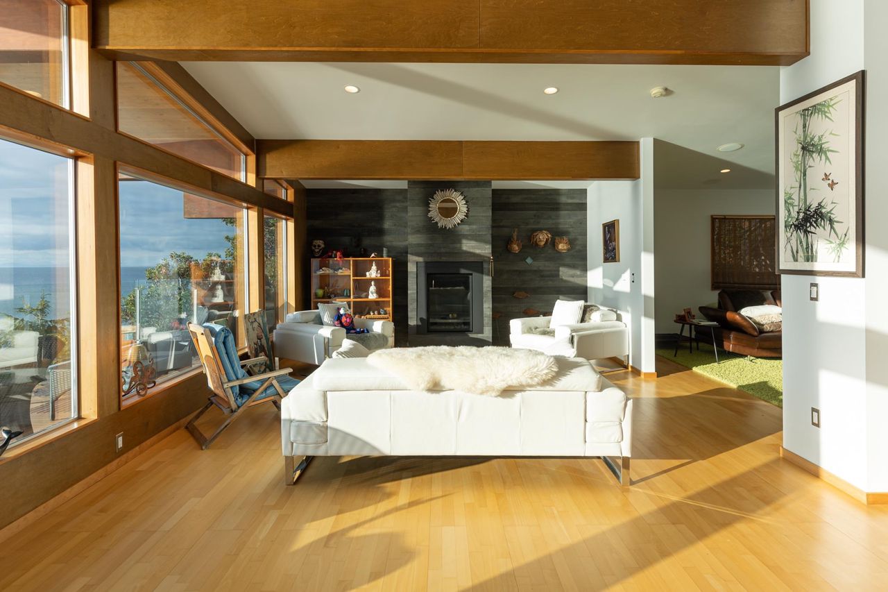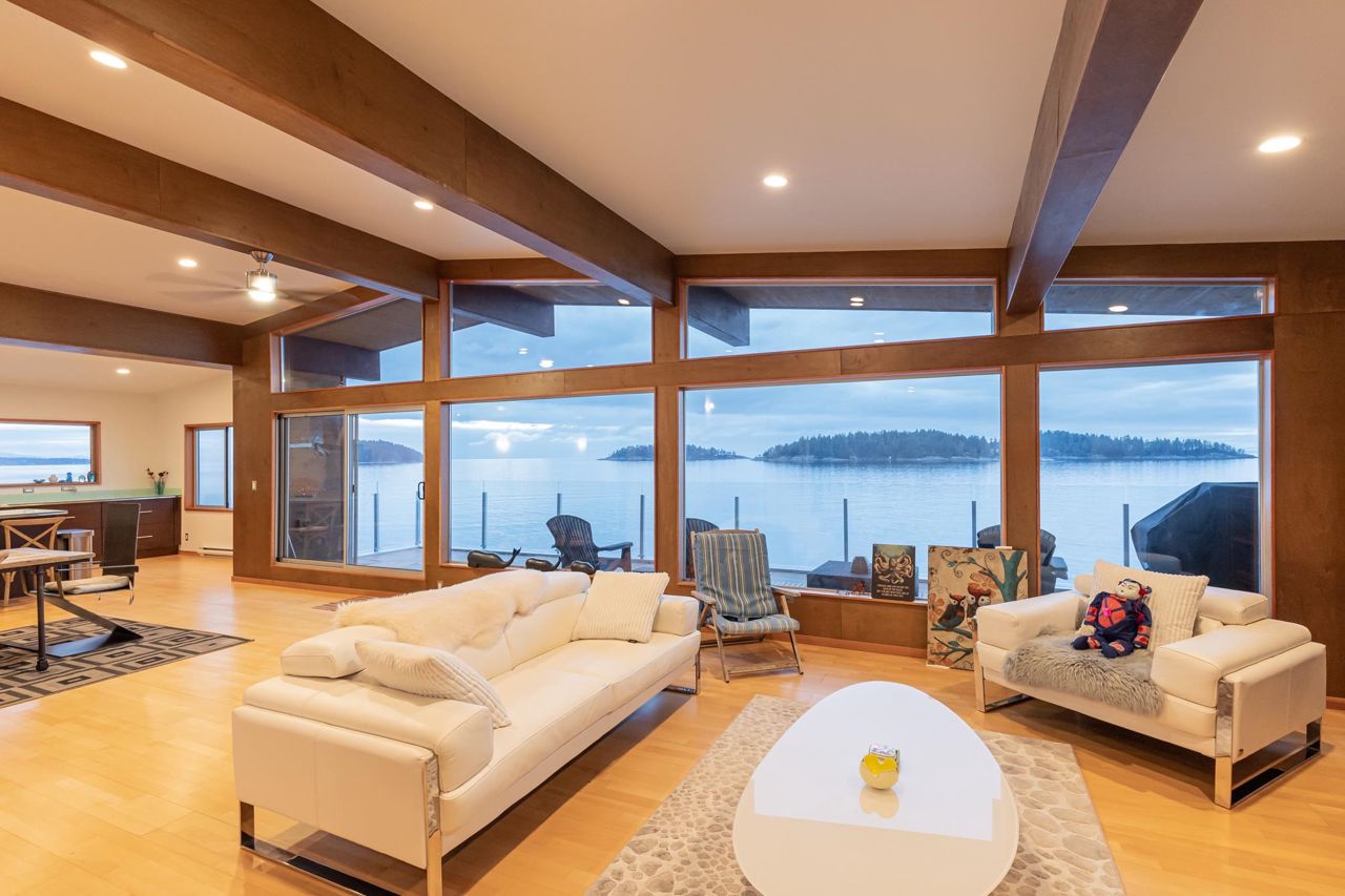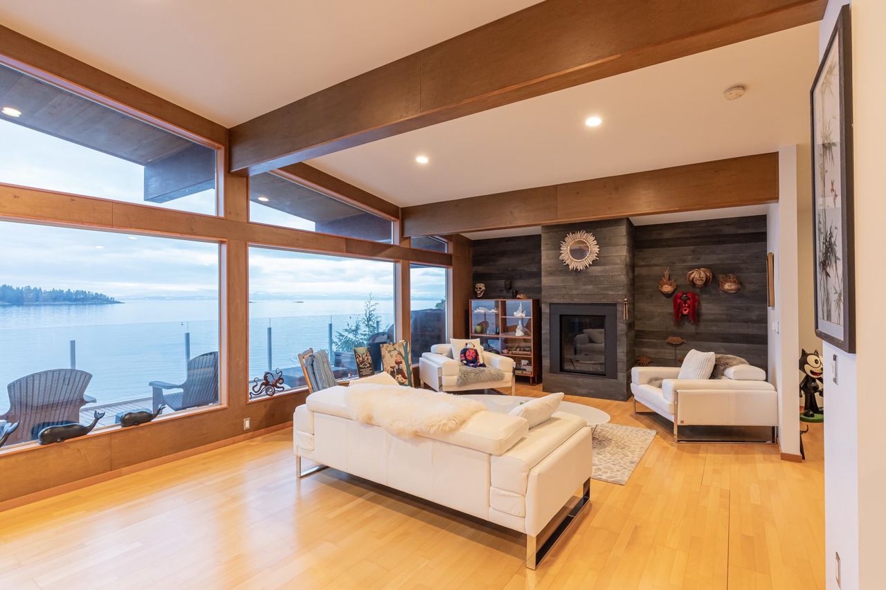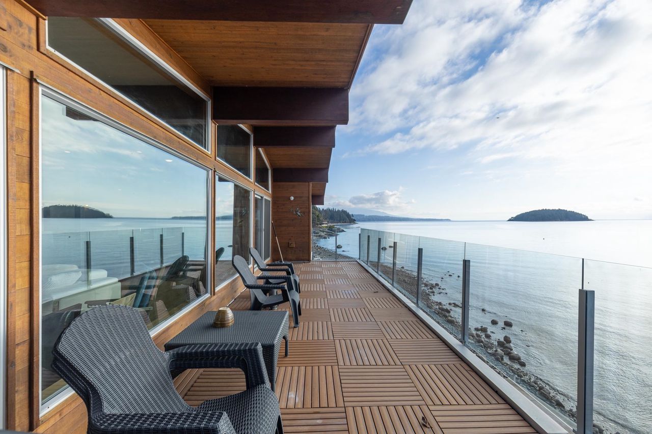 Stunning modern ocean front home with spectacular views of the Trail Islands. Situated on the West Sechelt shoreline approximately 3 kms from the town of Sechelt is this modern open concept home with amazing access and views of the Trail Islands and the Salish Sea. This home was completely renovated in 2008. The main floor is completely open with large picture windows and lovely vaults. Engineered hard wood floors throughout with a beautiful gas fireplace in the livingroom. The second floor is completely open except for 4 piece bathroom with large walk-in shower and circular soaker tub. The lowest level, which is level with the beach side patio, is designed for guests with bedroom, bathroom or living area.