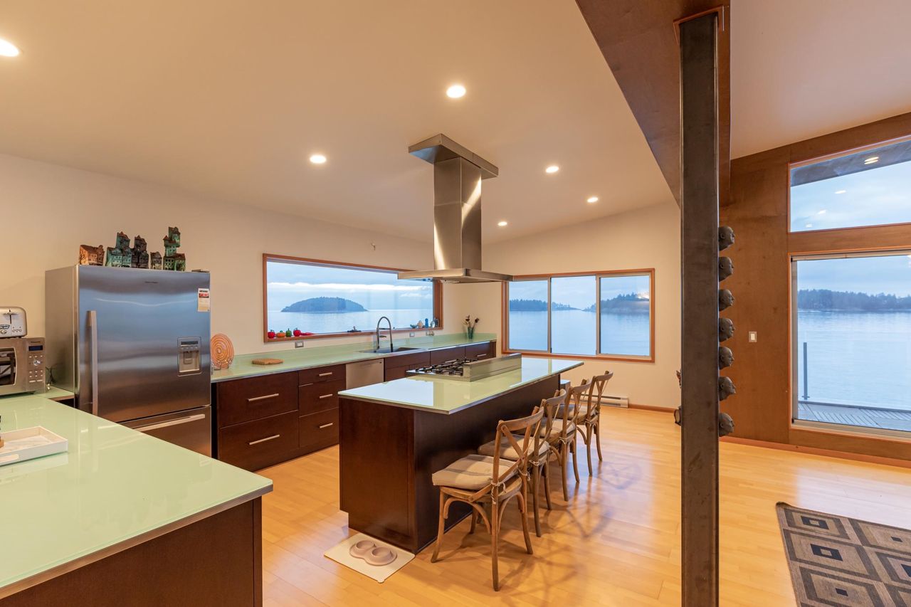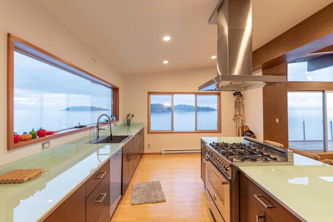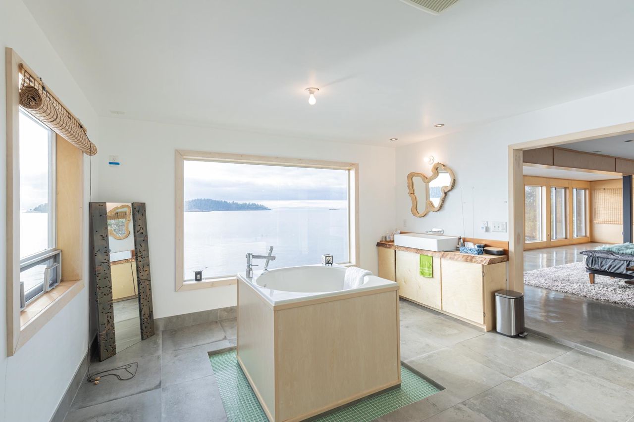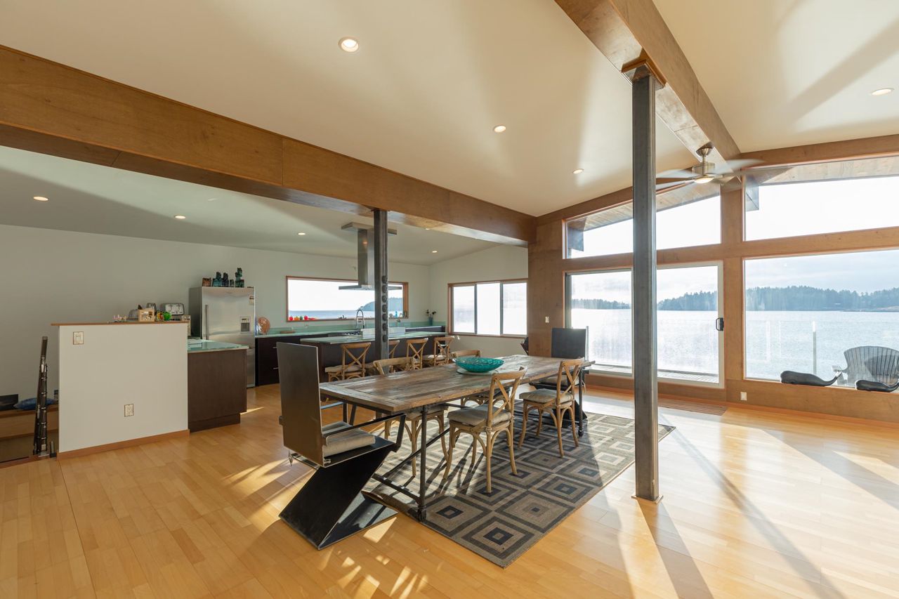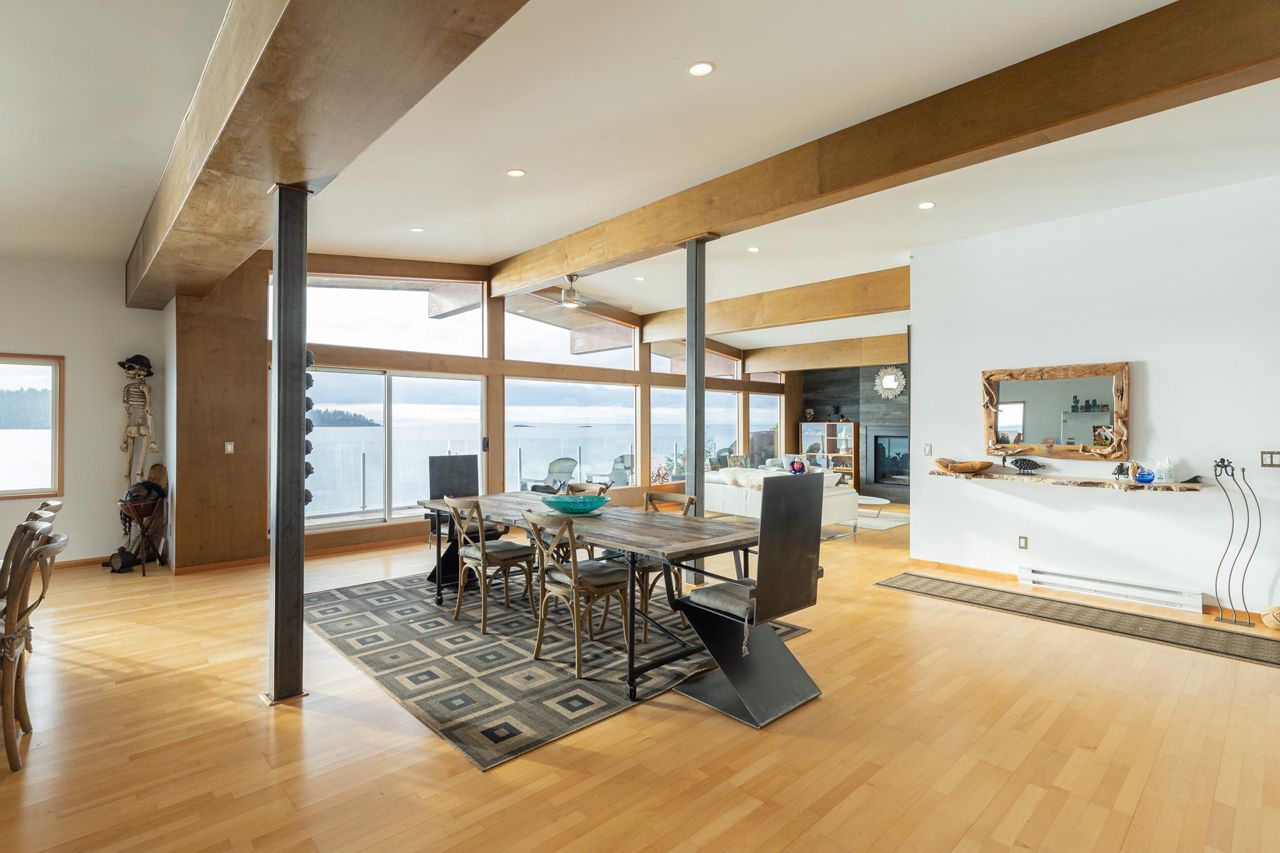 Stunning modern ocean front home with spectacular views of the Trail Islands. Situated on the West Sechelt shoreline approximately 3 kms from the town of Sechelt is this modern open concept home with amazing access and views of the Trail Islands and the Salish Sea. This home was completely renovated in 2008. The main floor is completely open with large picture windows and lovely vaults. Engineered hard wood floors throughout with a beautiful gas fireplace in the livingroom. The second floor is completely open except for 4 piece bathroom with large walk-in shower and circular soaker tub. The lowest level, which is level with the beach side patio, is designed for guests with bedroom, bathroom or living area.
