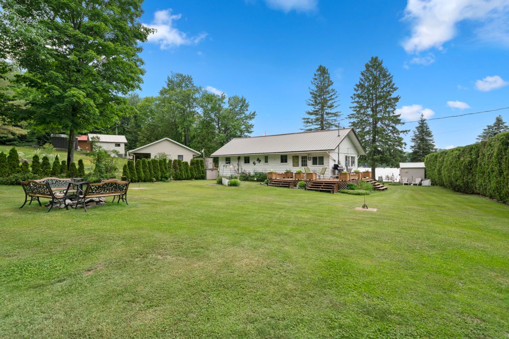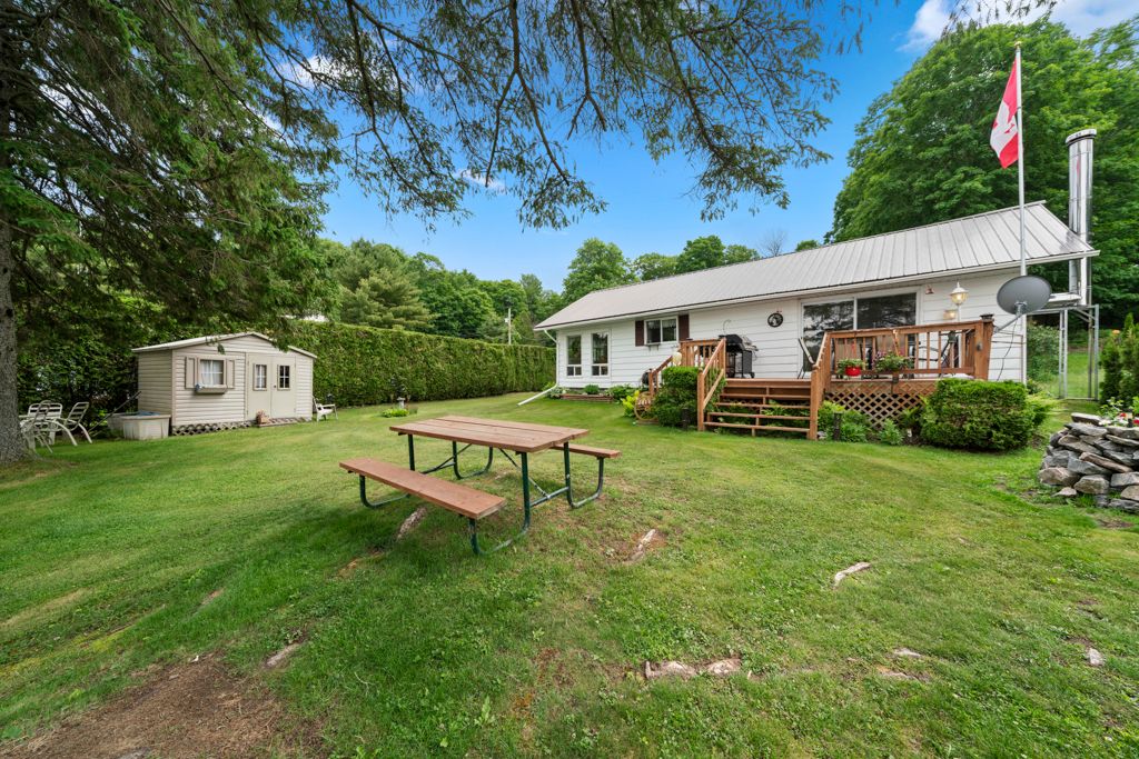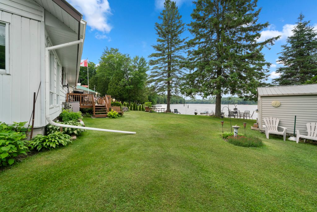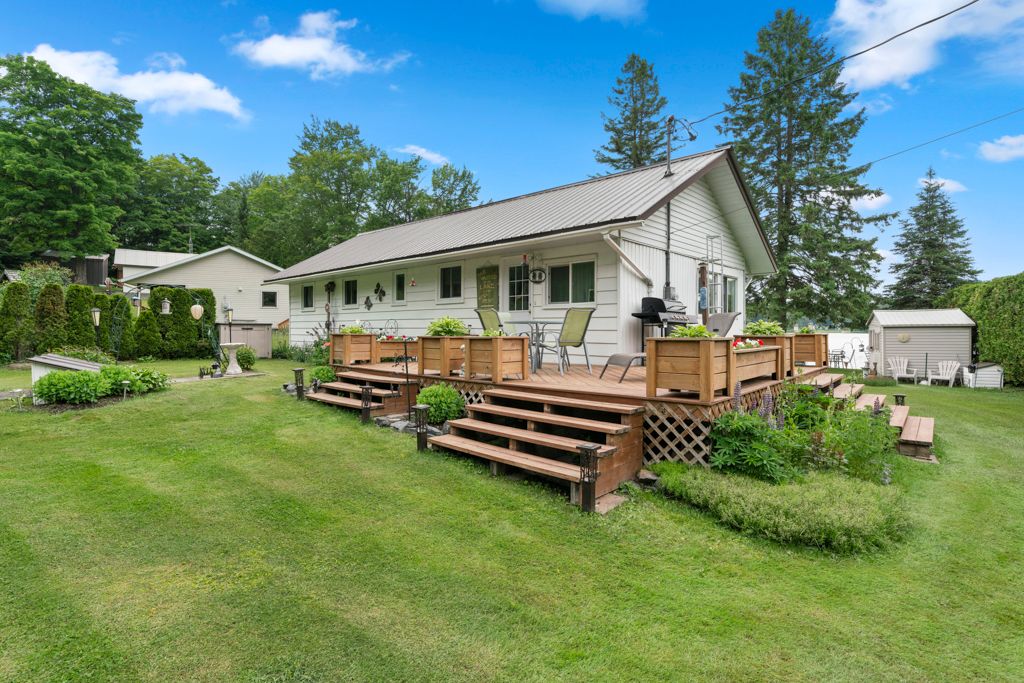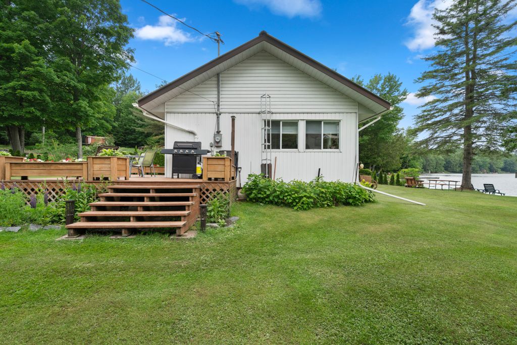Turn-key, fully furnished bungalow boasting 72 feet of frontage on the McKechnie Lake. Situated on a generous 0.57-acre lot, this home provides year-round access for your convenience. As you arrive, you'll notice the new 24' x 20' detached garage (2011), providing ample space for parking and storage. The main living areas include a spacious dining room, eat-in kitchen, and a generous living room with a walkout to a deck that overlooks the serene lake. The bungalow features 3 comfortable beds and a convenient 3-piece bath that serves the needs of the home. Outdoor entertainment options abound with a fire and horseshoe pit, allowing for memorable gatherings and fun-filled evenings with loved ones. Other notable features of this property include a durable metal roof installed in 2012, ensuring long-lasting protection from the elements. Additionally, a dock and 2 aluminum boats with electric motors are included, allowing you to explore the lake and enjoy water activities to the fullest.