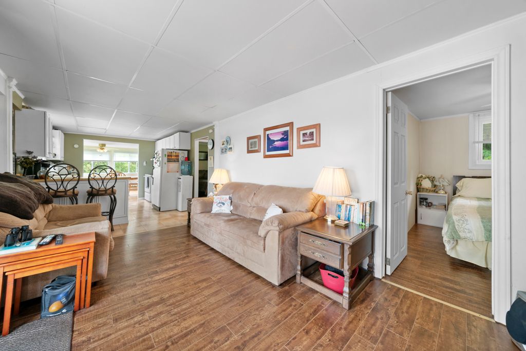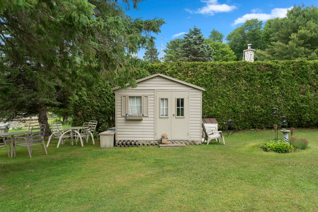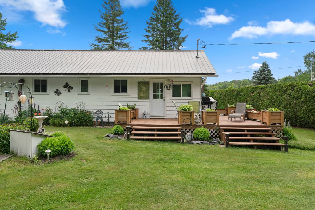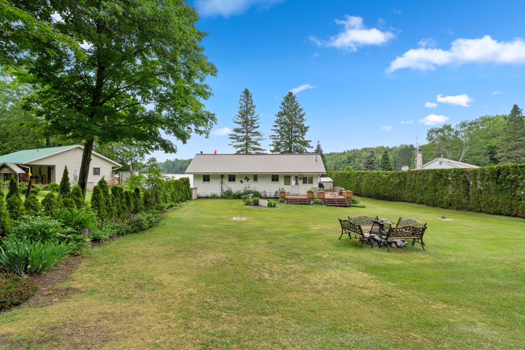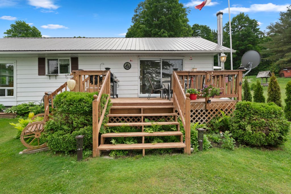 Turn-key, fully furnished bungalow boasting 72 feet of frontage on the McKechnie Lake. Situated on a generous 0.57-acre lot, this home provides year-round access for your convenience. As you arrive, you'll notice the new 24' x 20' detached garage (2011), providing ample space for parking and storage. The main living areas include a spacious dining room, eat-in kitchen, and a generous living room with a walkout to a deck that overlooks the serene lake. The bungalow features 3 comfortable beds and a convenient 3-piece bath that serves the needs of the home. Outdoor entertainment options abound with a fire and horseshoe pit, allowing for memorable gatherings and fun-filled evenings with loved ones. Other notable features of this property include a durable metal roof installed in 2012, ensuring long-lasting protection from the elements. Additionally, a dock and 2 aluminum boats with electric motors are included, allowing you to explore the lake and enjoy water activities to the fullest.