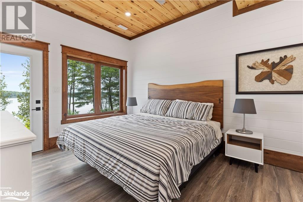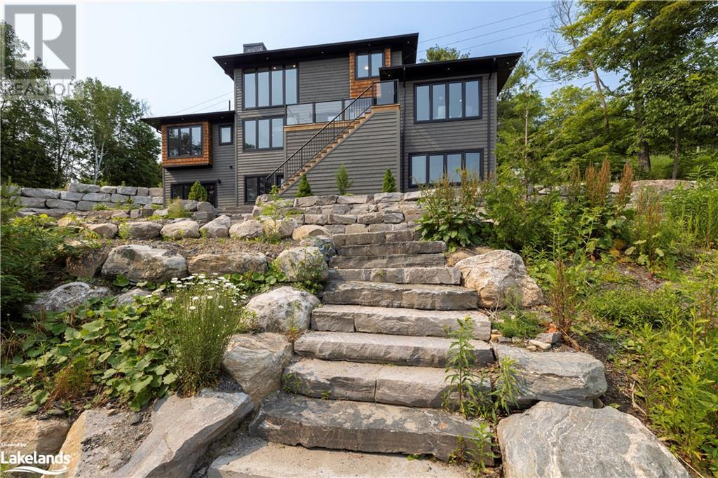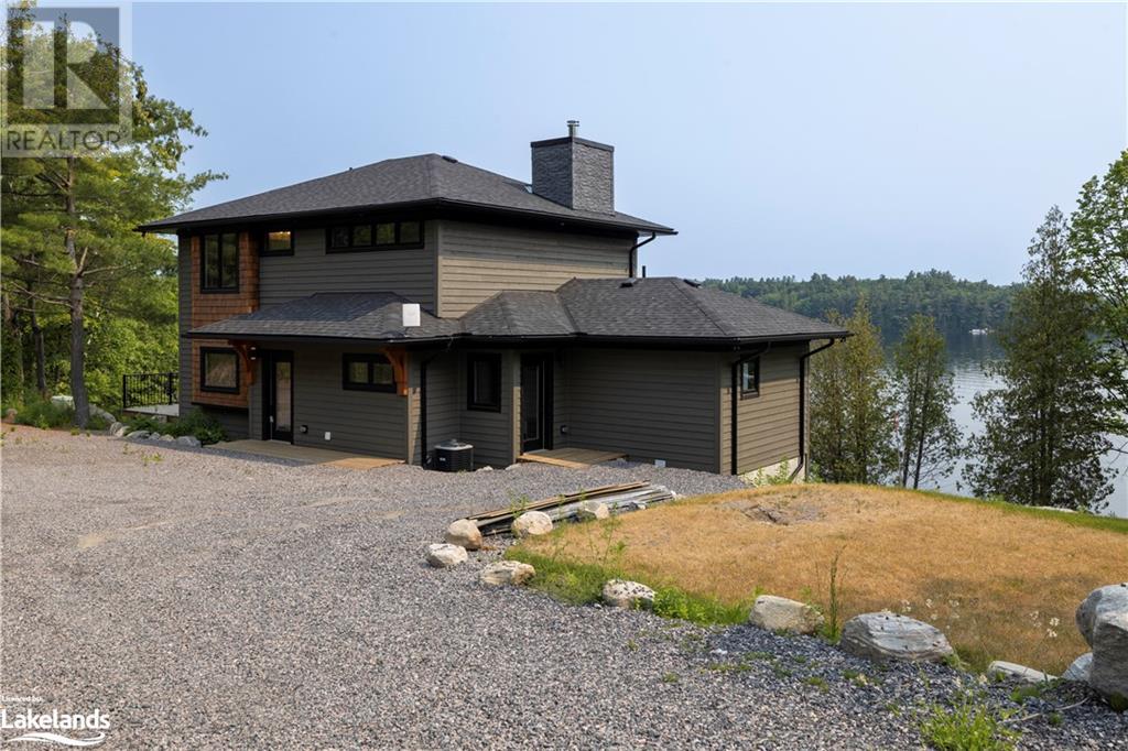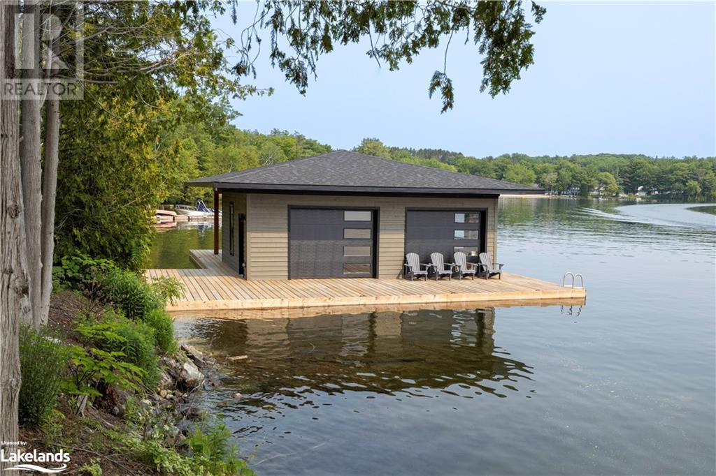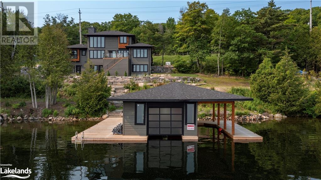 Lake Joseph Unicorn - For those obsessed with the Big 3 Muskoka Real Estate Market, the holy grail or unicorn of all searches is to find a newly built, modern lake house + boathouse on Lake Joseph with easy road access for under $4mm. Well dreams do come true. This 3,100 +SF 4 season lake house features 4+ bedrooms 3+ 1 bathrooms on a generous .8 acre lot with 264 feet of natural shoreline boasting long lake views of beloved Lake Joseph. Other Unicorn features include a child-friendly shallow water entry sand beach+ Cannonball ready deep water off a large dock area with coveted 2 slip boathouse, 1 interior slip and 1 exterior slip. Turn-key and ready to start your summer season, this contemporary build comes fully furnished with a great WIFi and home audio system. Open concept kitchen with views of the lake is appointed with elegant white quartz and stainless steel finishes. Main floor primary bedroom includes a 4 piece ensuite plus a den with TV. Great rooms don’t get any greater than when you’re basking in front of the crackling flames of a stunning 2-Storey stone hearth with Napoleon Fireplace insert. Upper level offers 2 bedrooms/an office or a mini bunkbed dorm room with a family friendly 5 piece bathroom. Lower level features a high ceiling with a roomy entertainment area including counter/bar/cabinetry & a 2nd fireplace (propane). Guests will love the large lower level bedroom & 4-piece bathroom and another separate area for home gym/2nd lower level bedroom option or workshop. Interior design and modern tones provide a blank canvas for your personalized tastes over the beautiful MDF finishes, solid wood flooring & multiple lakeside walkouts for quick access to the lake. . Want to exile the kids to a future bunkie? Many locations available. Rental income potential when not in use..Year round access via municipally maintained Lake Joseph Road is just a 2-hour drive from the GTA. Don’t miss out. This unique Lake Joseph property proves that Unicorns do exist. (id:22211)