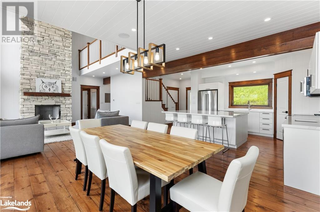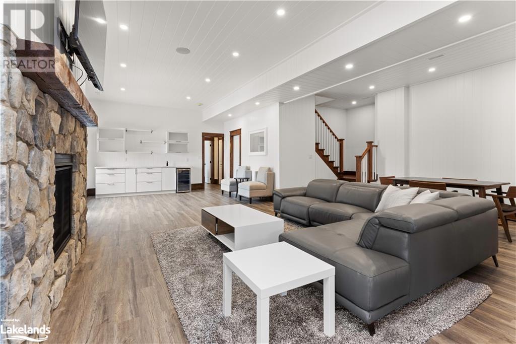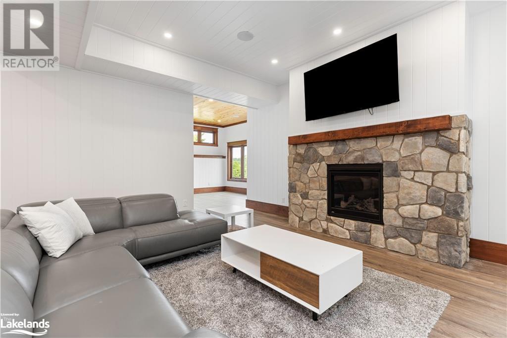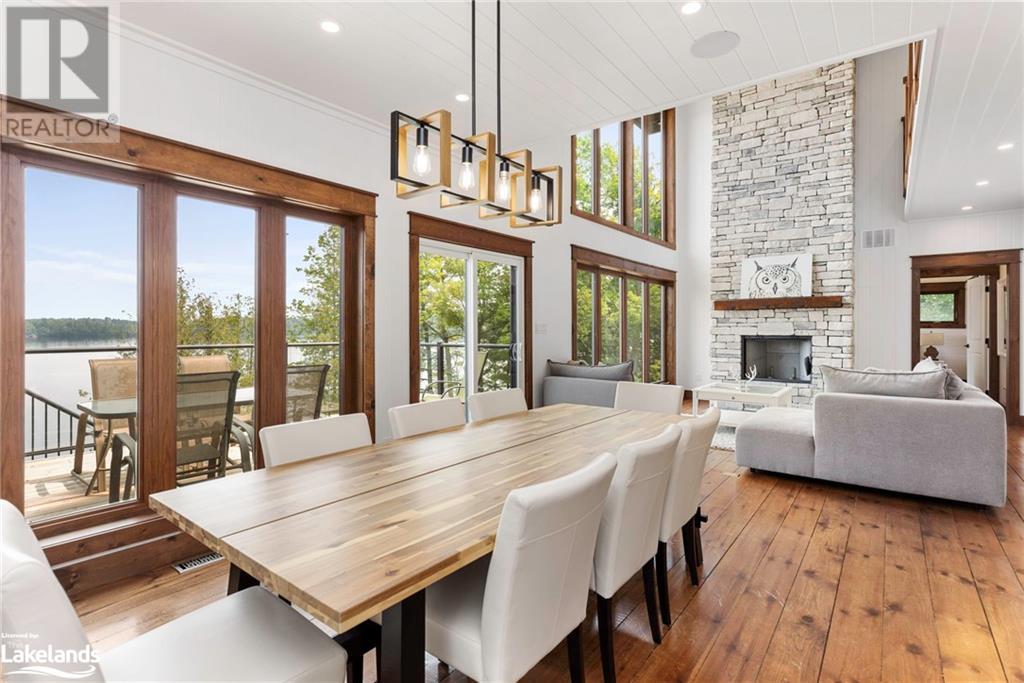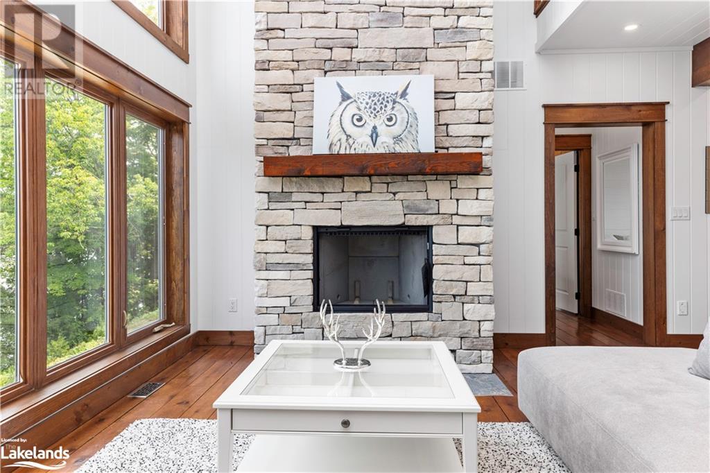 Lake Joseph Unicorn - For those obsessed with the Big 3 Muskoka Real Estate Market, the holy grail or unicorn of all searches is to find a newly built, modern lake house + boathouse on Lake Joseph with easy road access for under $4mm. Well dreams do come true. This 3,100 +SF 4 season lake house features 4+ bedrooms 3+ 1 bathrooms on a generous .8 acre lot with 264 feet of natural shoreline boasting long lake views of beloved Lake Joseph. Other Unicorn features include a child-friendly shallow water entry sand beach+ Cannonball ready deep water off a large dock area with coveted 2 slip boathouse, 1 interior slip and 1 exterior slip. Turn-key and ready to start your summer season, this contemporary build comes fully furnished with a great WIFi and home audio system. Open concept kitchen with views of the lake is appointed with elegant white quartz and stainless steel finishes. Main floor primary bedroom includes a 4 piece ensuite plus a den with TV. Great rooms don’t get any greater than when you’re basking in front of the crackling flames of a stunning 2-Storey stone hearth with Napoleon Fireplace insert. Upper level offers 2 bedrooms/an office or a mini bunkbed dorm room with a family friendly 5 piece bathroom. Lower level features a high ceiling with a roomy entertainment area including counter/bar/cabinetry & a 2nd fireplace (propane). Guests will love the large lower level bedroom & 4-piece bathroom and another separate area for home gym/2nd lower level bedroom option or workshop. Interior design and modern tones provide a blank canvas for your personalized tastes over the beautiful MDF finishes, solid wood flooring & multiple lakeside walkouts for quick access to the lake. . Want to exile the kids to a future bunkie? Many locations available. Rental income potential when not in use..Year round access via municipally maintained Lake Joseph Road is just a 2-hour drive from the GTA. Don’t miss out. This unique Lake Joseph property proves that Unicorns do exist. (id:22211)