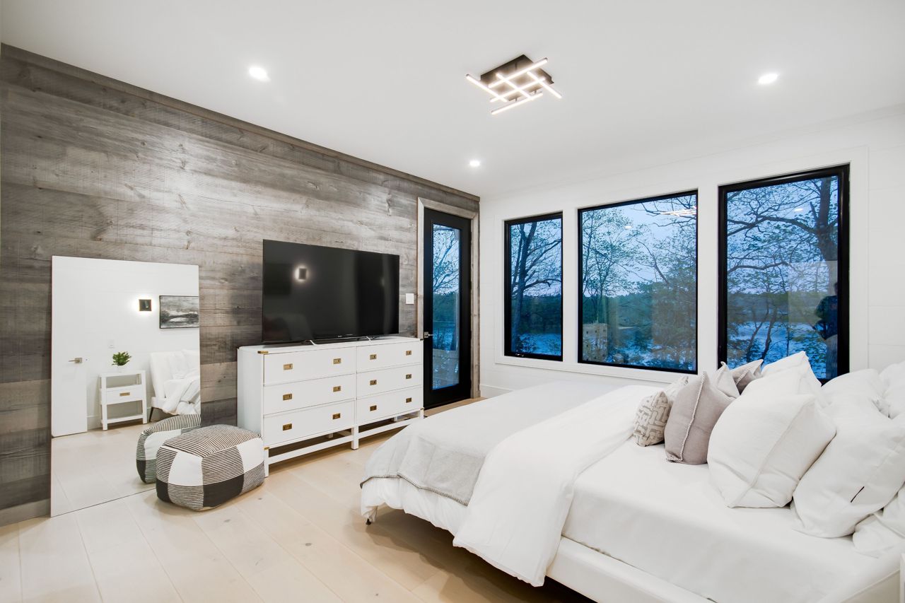 Nestled privately within mature forest and fronting on beautiful Silver Lake. This contemporary brand new custom lakehouse has big lake style and absolutely everything on your wish list situated in the heart of Muskoka. The well-appointed 4000 sq.ft main cottage features 5-bedrooms and 4-bathrooms with additional living accommodation above the 2-bay carriage house, boasting a stunning 1 bedroom private suite. The open concept main floor displays ultimate luxury by showcasing the oversized fireplace and feature wall with gorgeous lakeside views through large airy windows, This opens up to the superb chef's kitchen that any entertainer would be delighted to cook in including a quartz waterfall island and Stainless-Steel Appliances. There are 2 additional guest bedrooms on the main level and 2 on the walkout level. On the lower level enjoy an exercise room, cedar sauna, lounge with pool table, and theatre room. Walkout to a beautifully hardscaped patio. This place truly has it all!