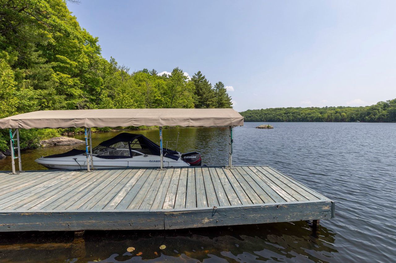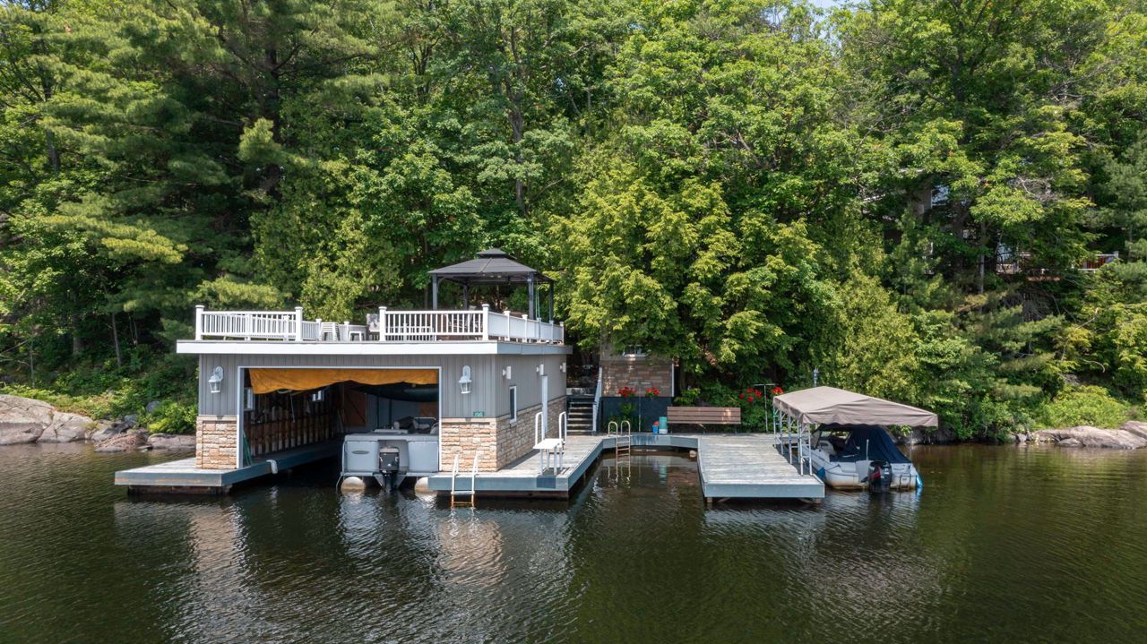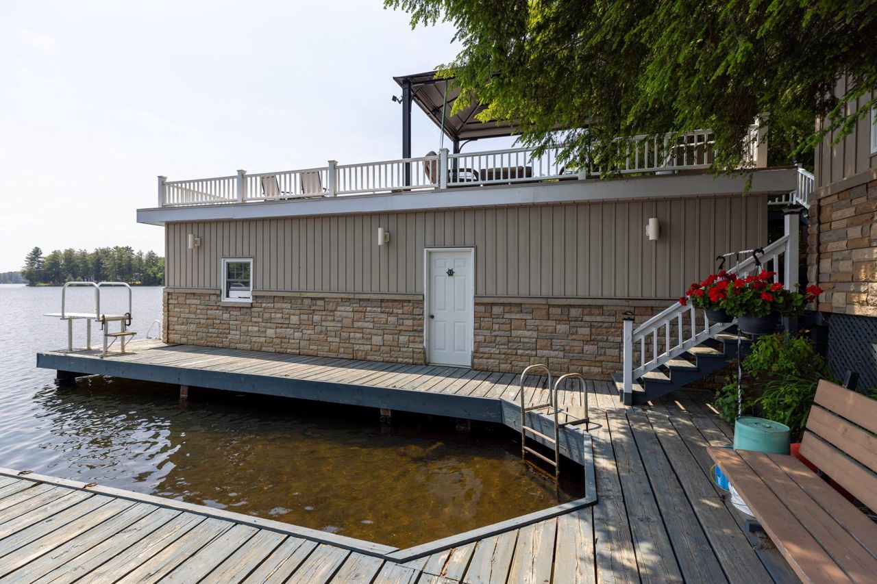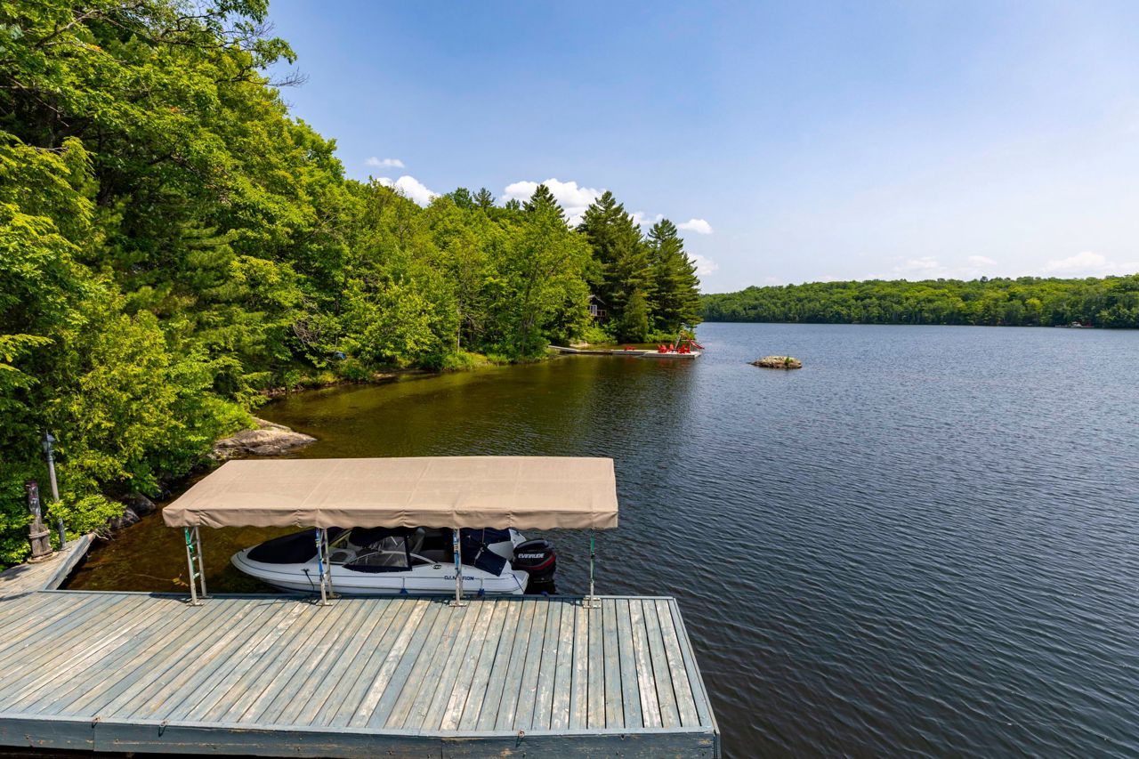 Welcome to your dream waterfront property. Nestled within a well-treed mixed forest lot, this 4 bed, 2 bath bungaloft boasts an original viceroy cottage with a solid two story addition providing a spacious interior, full basement ensuring plenty of storage and in-law suite potential. Enjoy the serenity of the waterfront from the double boat house deck, perfect for soaking up the suns rays and enjoy the south facing panoramic views. Family friendly walk-in sand beach and deep water off dock. For boating enthusiasts, there is an additional covered dock slip as well as the double boathouse to protect your boats from the elements. Storage is never an issue with an extra storage shed located at the waterfront, providing convenient space for your water toys. The property is equipped with a newer septic system, fully winterized features and a newer furnace that guarantee year-round comfort and efficiency. The water line is heat traced and auto controlled, ensuring a reliable water supply .**THE LAKELANDS R. E. ASSOC**