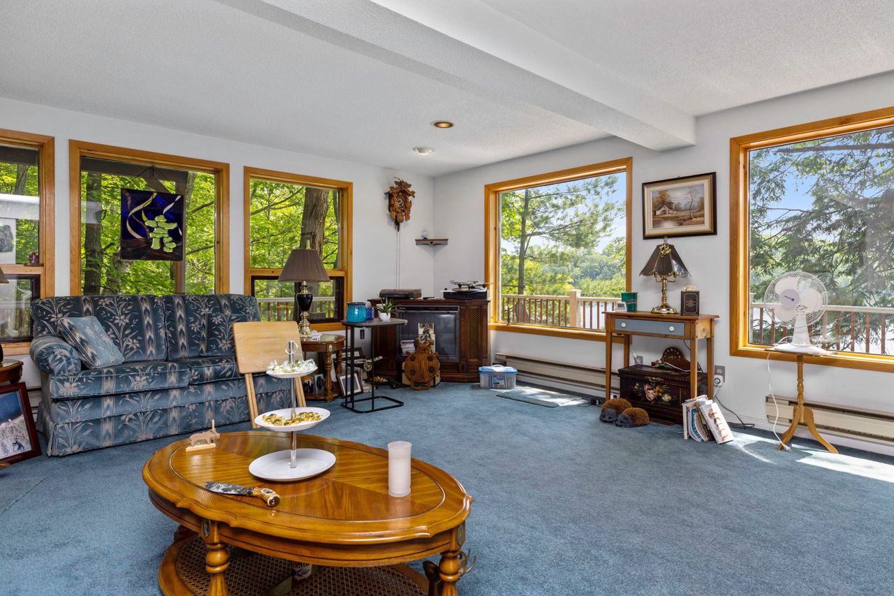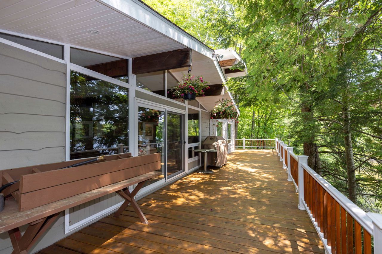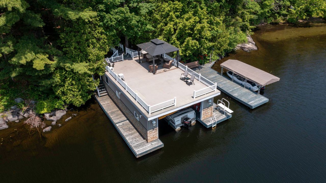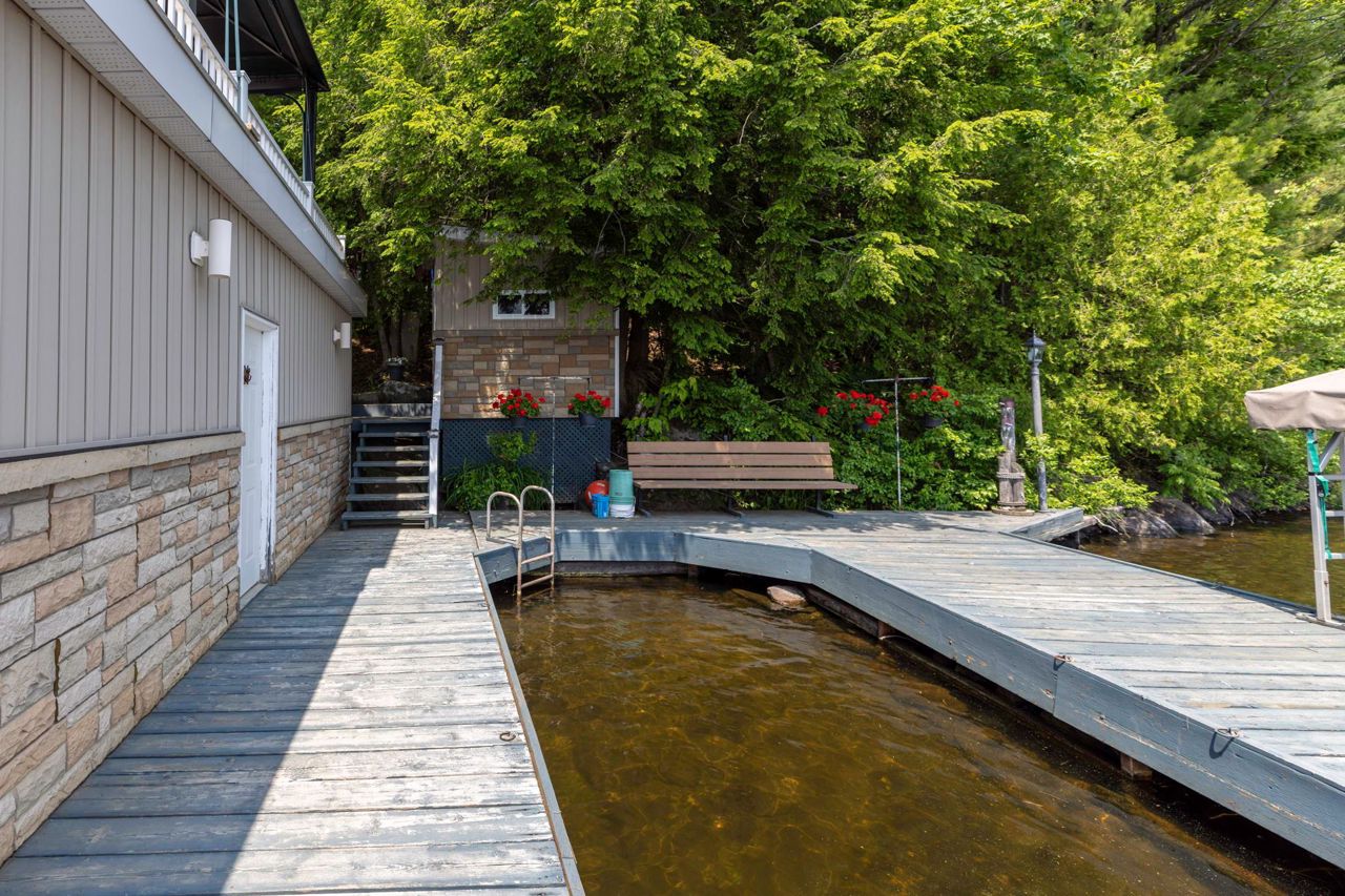 Welcome to your dream waterfront property. Nestled within a well-treed mixed forest lot, this 4 bed, 2 bath bungaloft boasts an original viceroy cottage with a solid two story addition providing a spacious interior, full basement ensuring plenty of storage and in-law suite potential. Enjoy the serenity of the waterfront from the double boat house deck, perfect for soaking up the suns rays and enjoy the south facing panoramic views. Family friendly walk-in sand beach and deep water off dock. For boating enthusiasts, there is an additional covered dock slip as well as the double boathouse to protect your boats from the elements. Storage is never an issue with an extra storage shed located at the waterfront, providing convenient space for your water toys. The property is equipped with a newer septic system, fully winterized features and a newer furnace that guarantee year-round comfort and efficiency. The water line is heat traced and auto controlled, ensuring a reliable water supply .**THE LAKELANDS R. E. ASSOC**