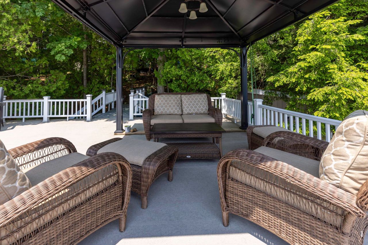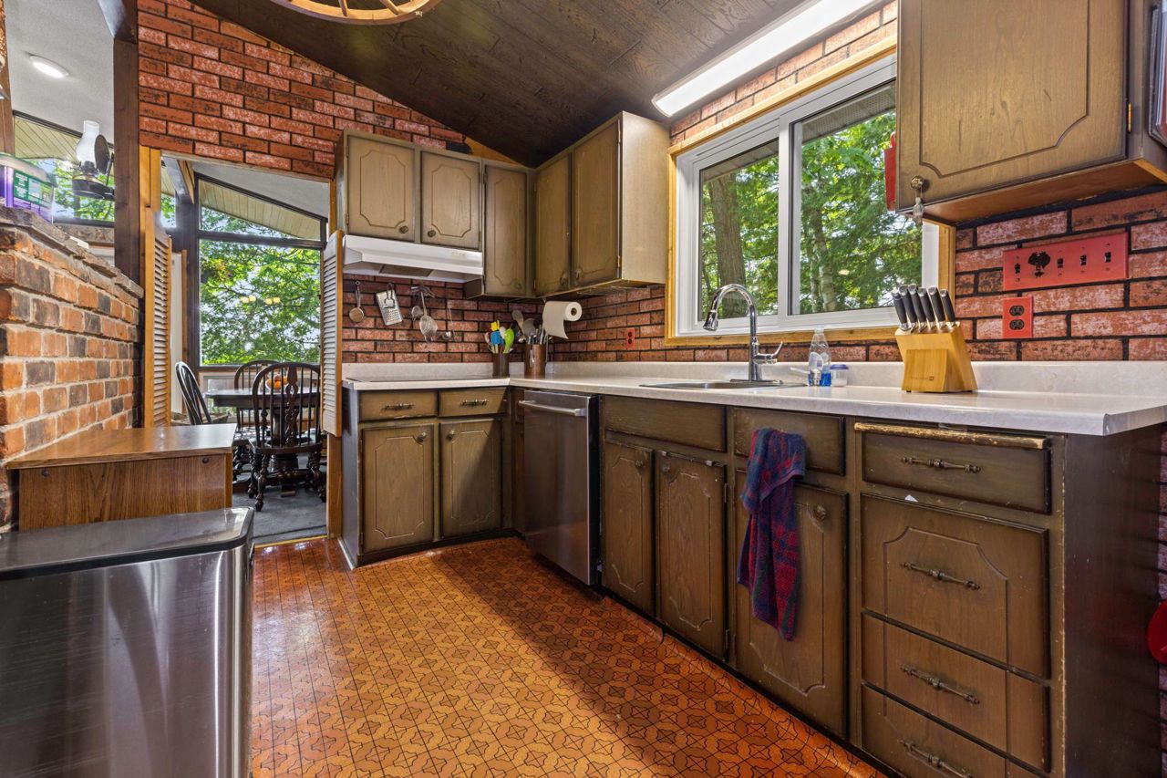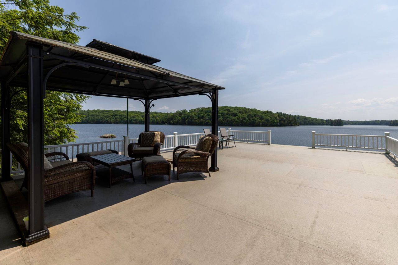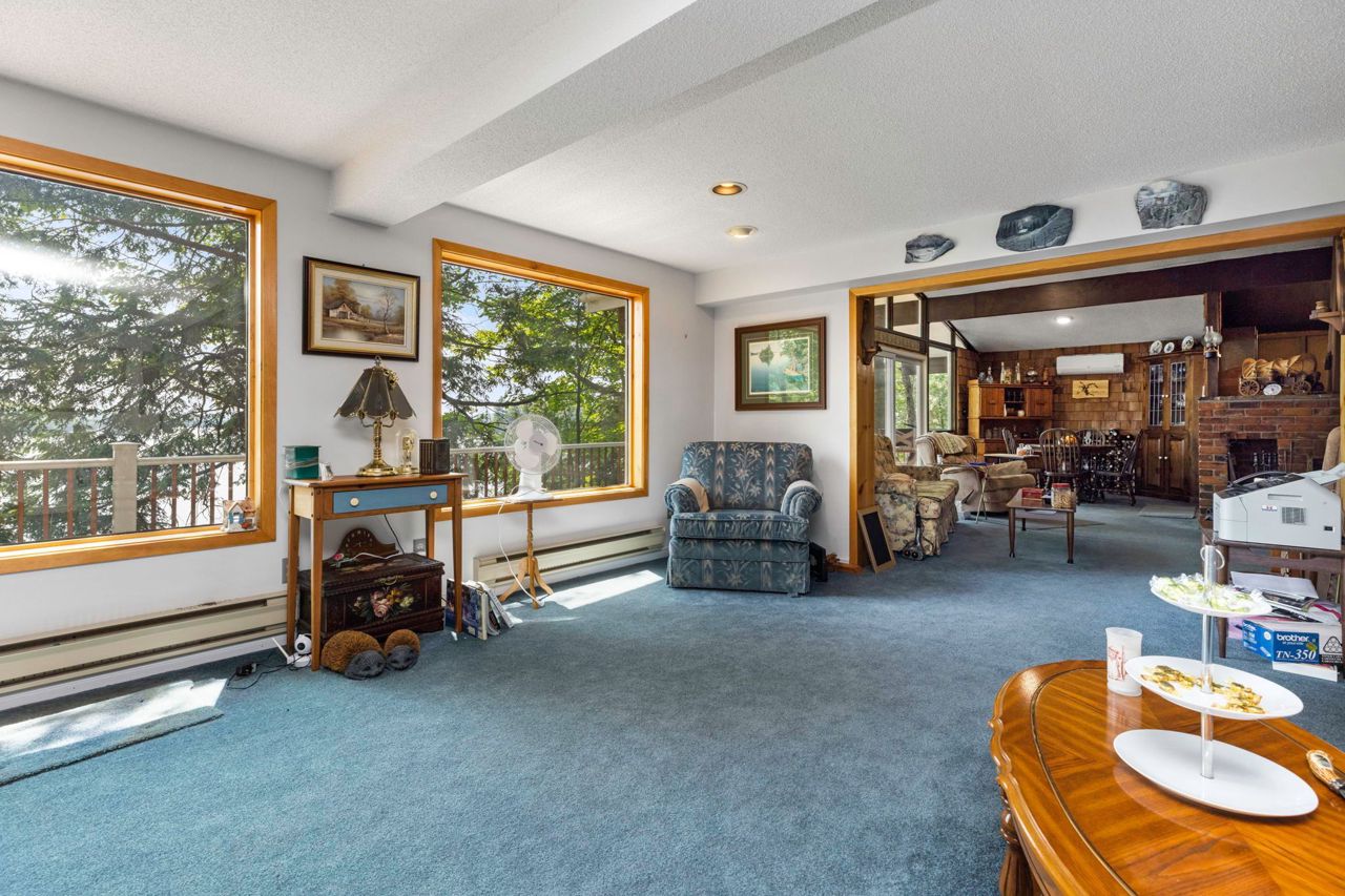 Welcome to your dream waterfront property. Nestled within a well-treed mixed forest lot, this 4 bed, 2 bath bungaloft boasts an original viceroy cottage with a solid two story addition providing a spacious interior, full basement ensuring plenty of storage and in-law suite potential. Enjoy the serenity of the waterfront from the double boat house deck, perfect for soaking up the suns rays and enjoy the south facing panoramic views. Family friendly walk-in sand beach and deep water off dock. For boating enthusiasts, there is an additional covered dock slip as well as the double boathouse to protect your boats from the elements. Storage is never an issue with an extra storage shed located at the waterfront, providing convenient space for your water toys. The property is equipped with a newer septic system, fully winterized features and a newer furnace that guarantee year-round comfort and efficiency. The water line is heat traced and auto controlled, ensuring a reliable water supply .**THE LAKELANDS R. E. ASSOC**