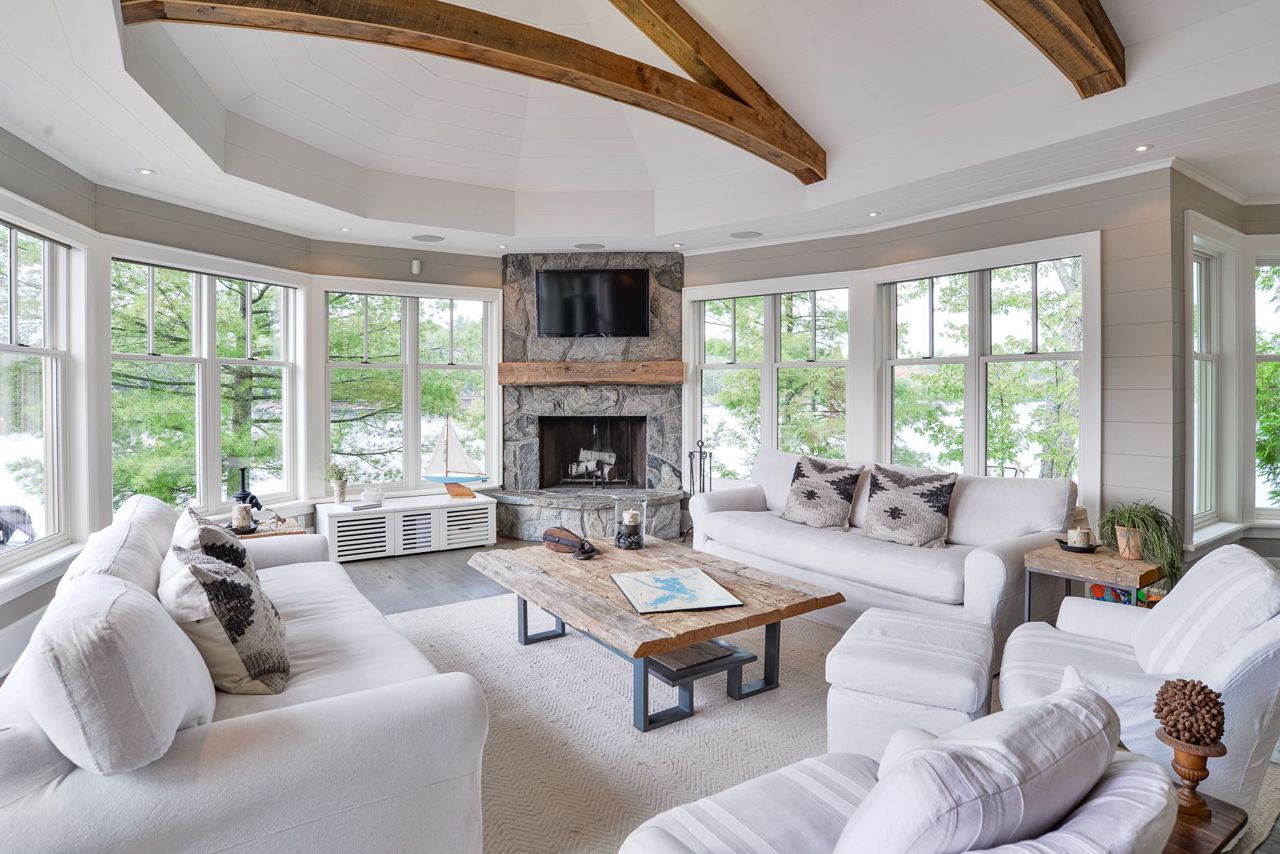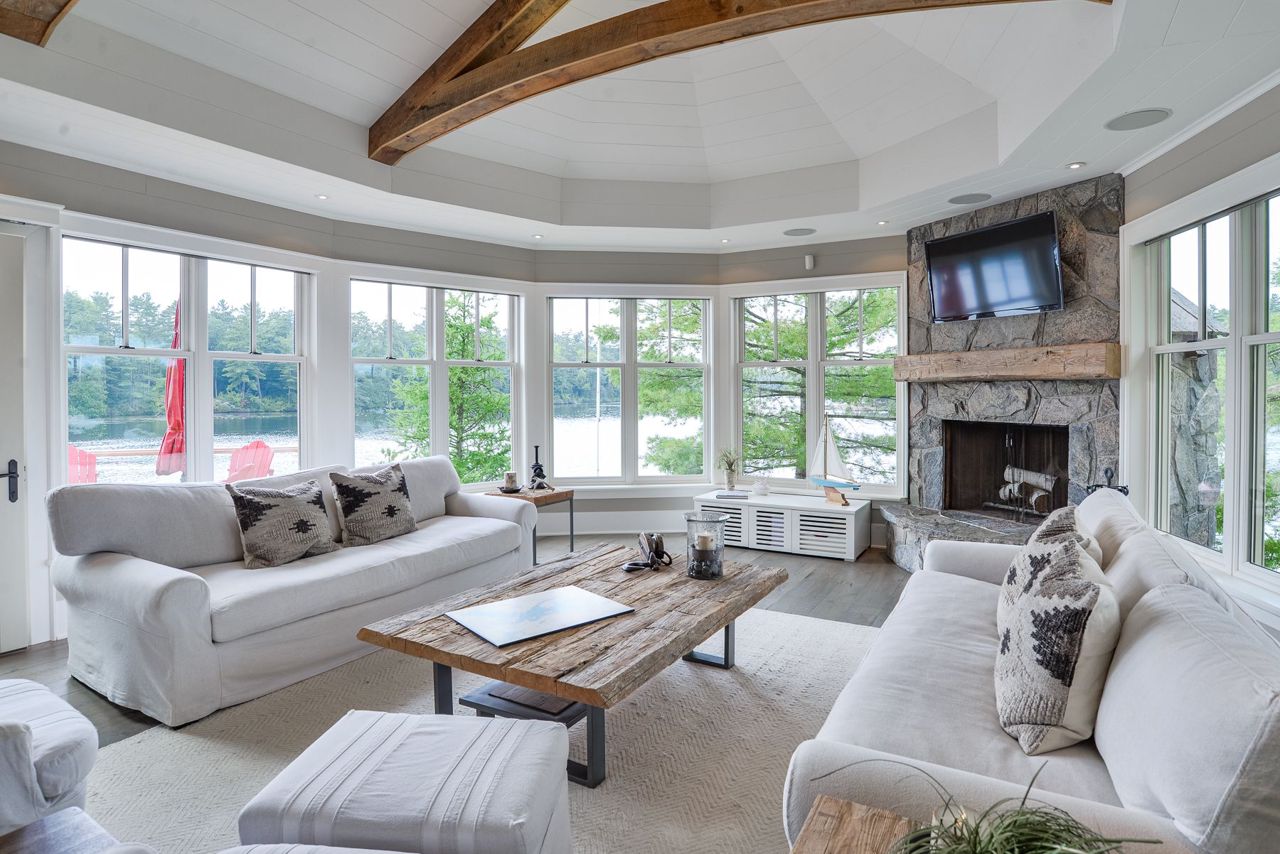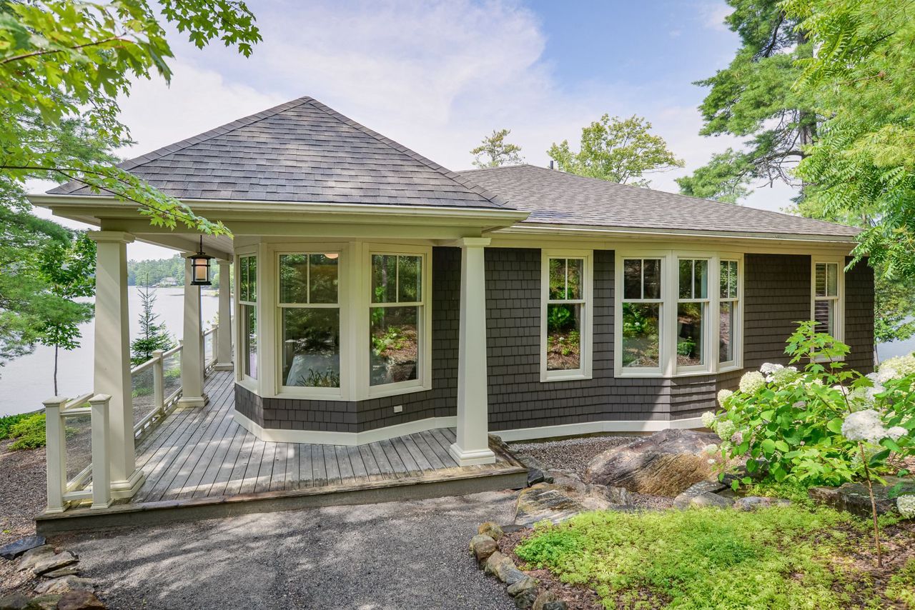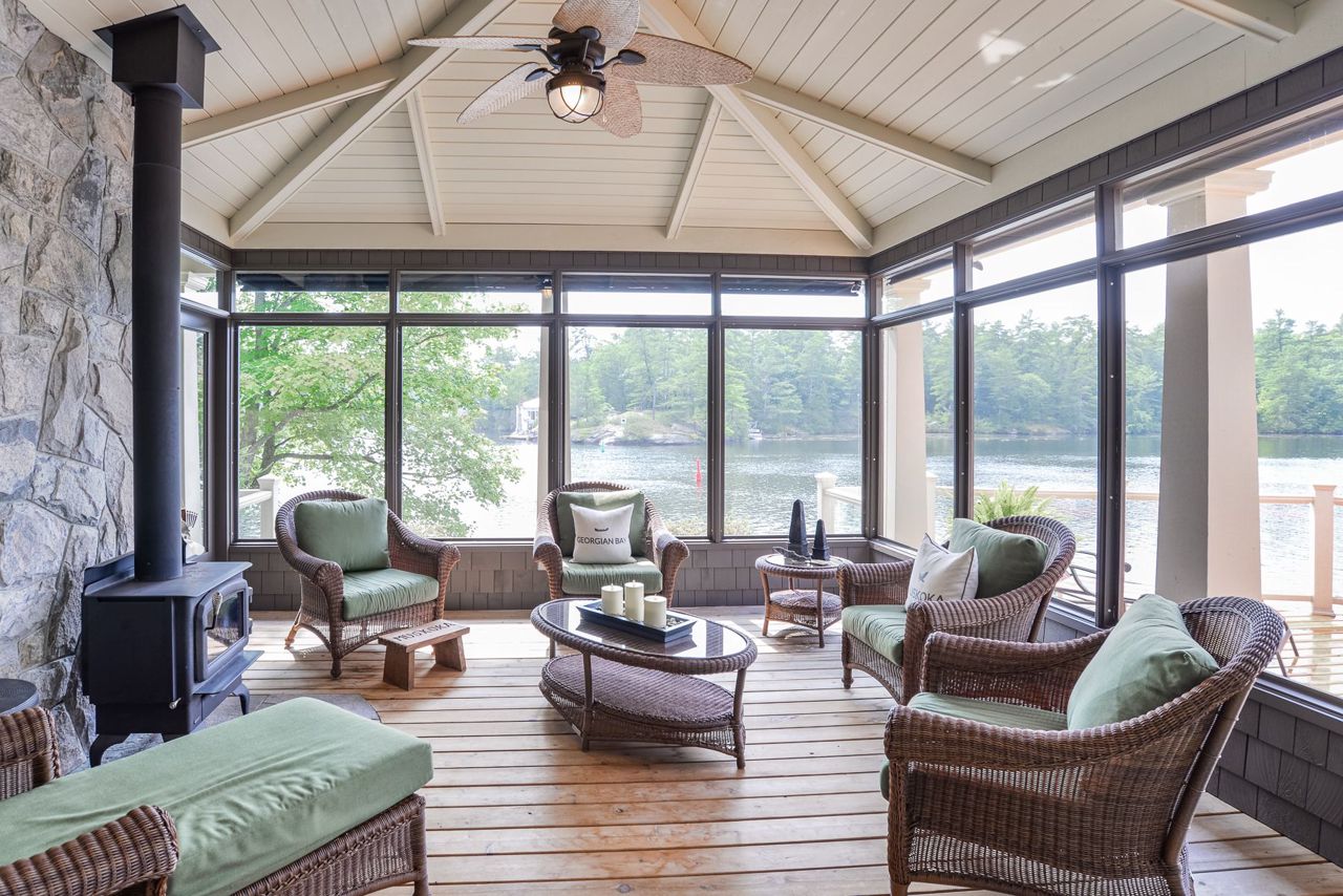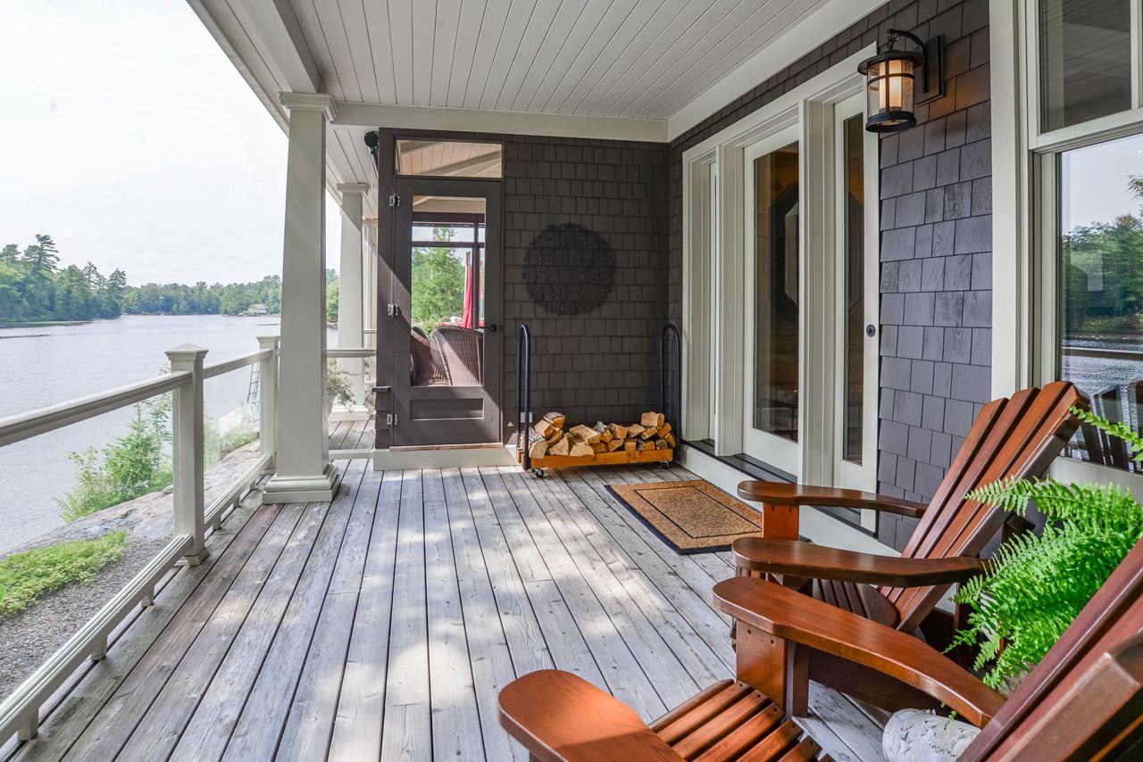 This exquisite waterfront retreat sits on a spectacular peninsula on the shores of beautiful Gloucester Pool. Featuring over 450' of frontage, year-round sunsets & all-day sun, plus 1.3 acres of gently sloping land & privacy. Enjoy both deep water off the dock & a hard-packed sandy beachfront. Between the luxurious 3-bedroom cottage & guest suite, you'll find nearly 3000 sq ft of bright living space to host your family & friends. Meticulous detailing & bespoke finishes include reclaimed rock elm floors & beams, vaulted ceilings, heated Italian Rhone limestone floors, high-end appliances, a walk-in pantry & custom cabinetry throughout the cottage. The exceptional layout brilliantly showcases water views from virtually every room. In the screened Muskoka Room, you can hear the waves lapping against the shore & watch the sun setting. 2+ car heated garage plus generator. For boating enthusiasts, it's 1 lock to the spectacular waters of Georgian Bay. Only 1 hr 30 min from Toronto.Geothermal Heating and Central Air, Humidity Control. Propane heating in garage and guest suite.